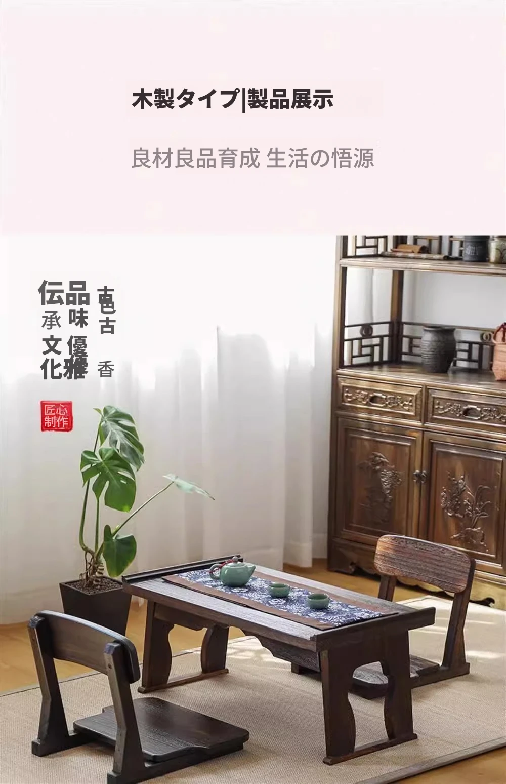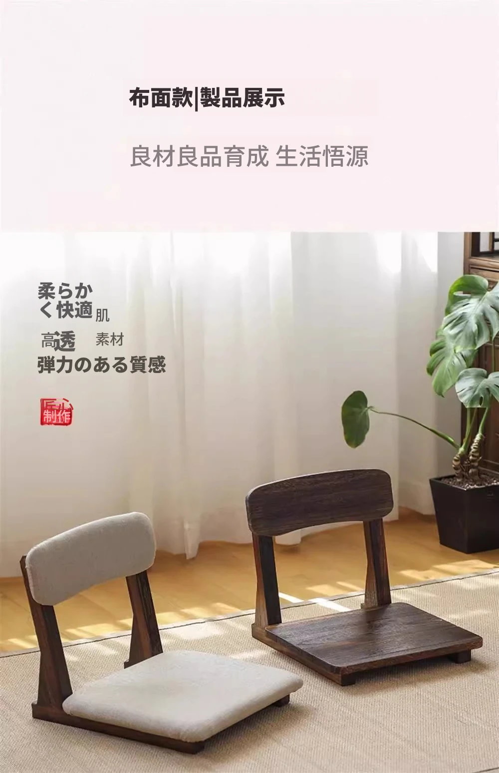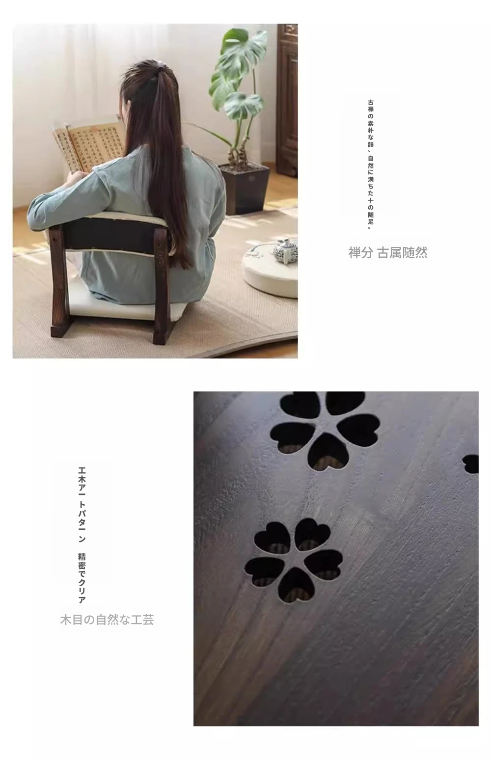 和風桐の無垢材使用!飄窗にぴったりのタタミスタイルのリラックスチェア。おしゃれな小型デザインで、家のバルコニーにも最適。脚のない柔らかいクッション付きで、快適さを追求した一品です。