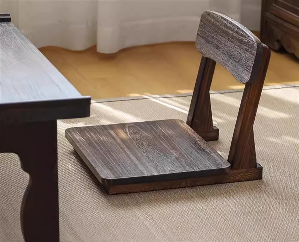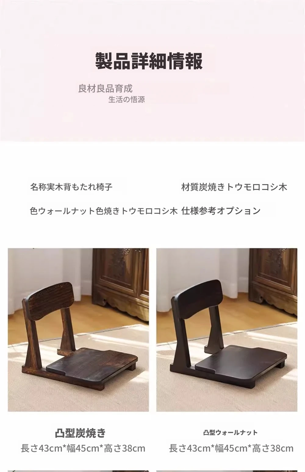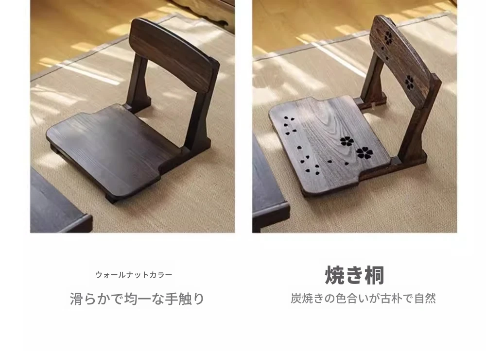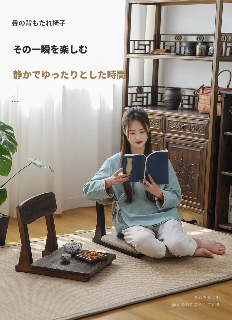 和風桐の無垢材使用!飄窗にぴったりのタタミスタイルのリラックスチェア。おしゃれな小型デザインで、家のバルコニーにも最適。脚のない柔らかいクッション付きで、快適さを追求した一品です。