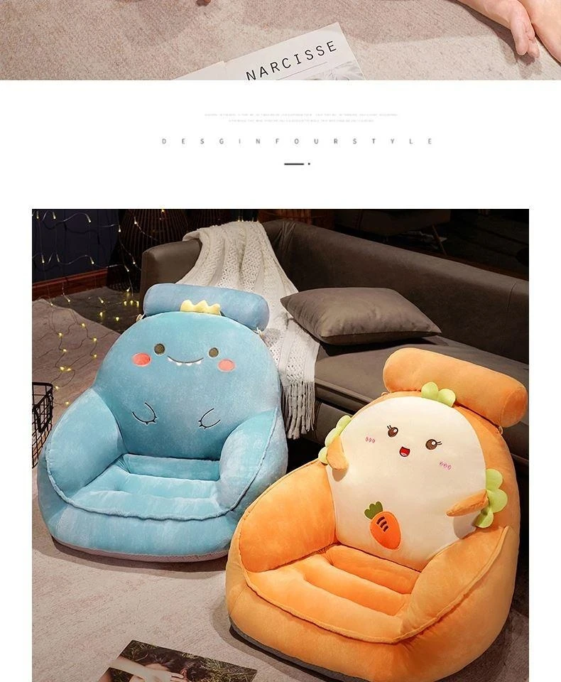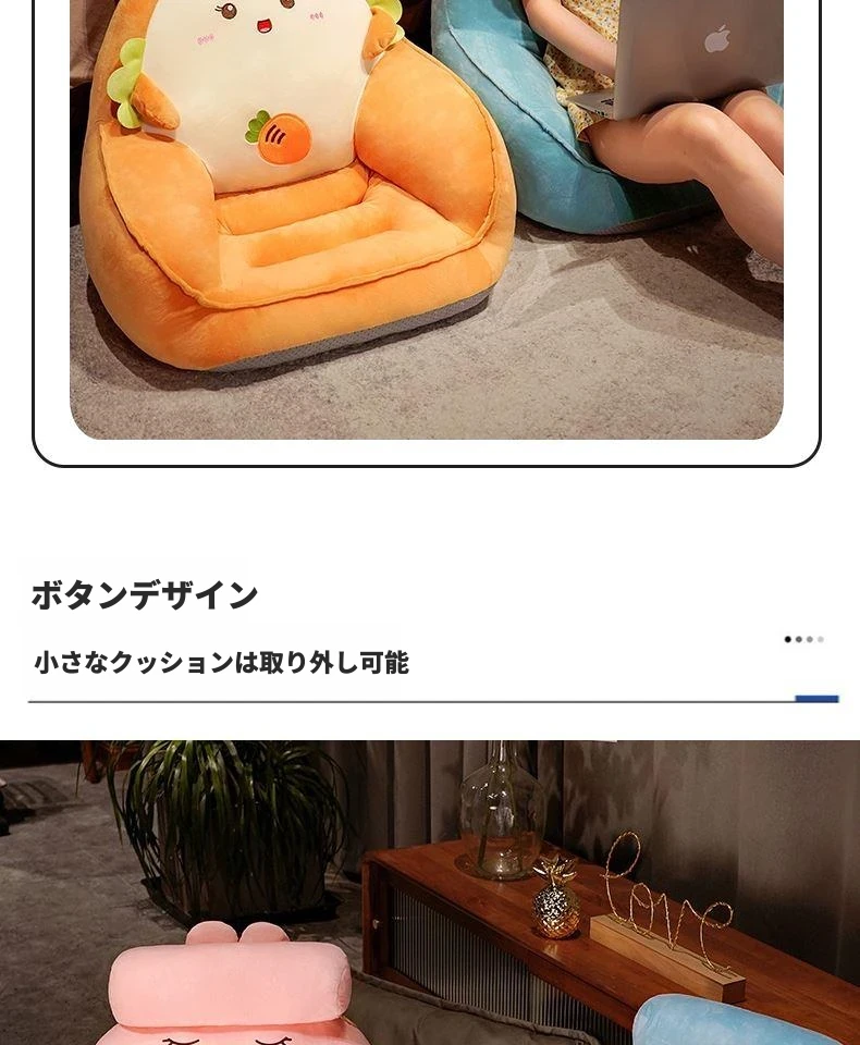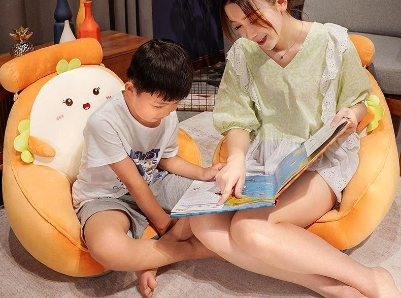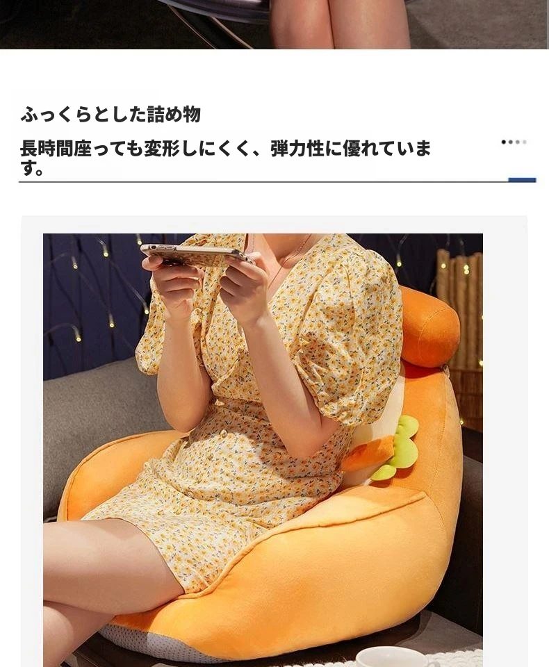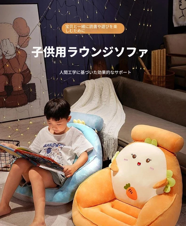 楽ちんリクライニングソファチェア|寝転んでも使える!寝室や畳、窓際で読書にぴったりの小さなクッション|子供向けカートゥーンデザインの背もたれクッション!快適なひとときをお届けします。