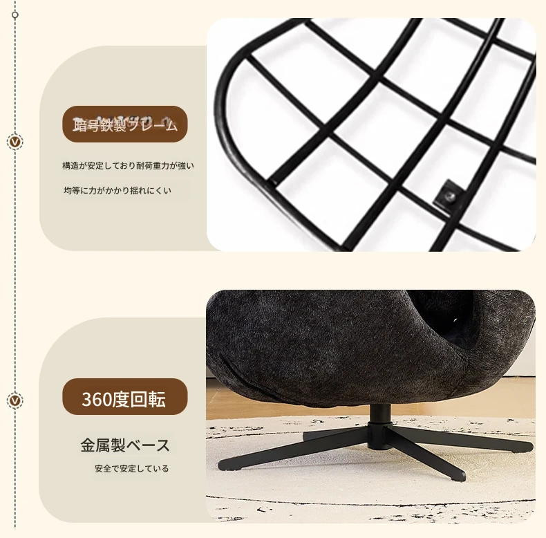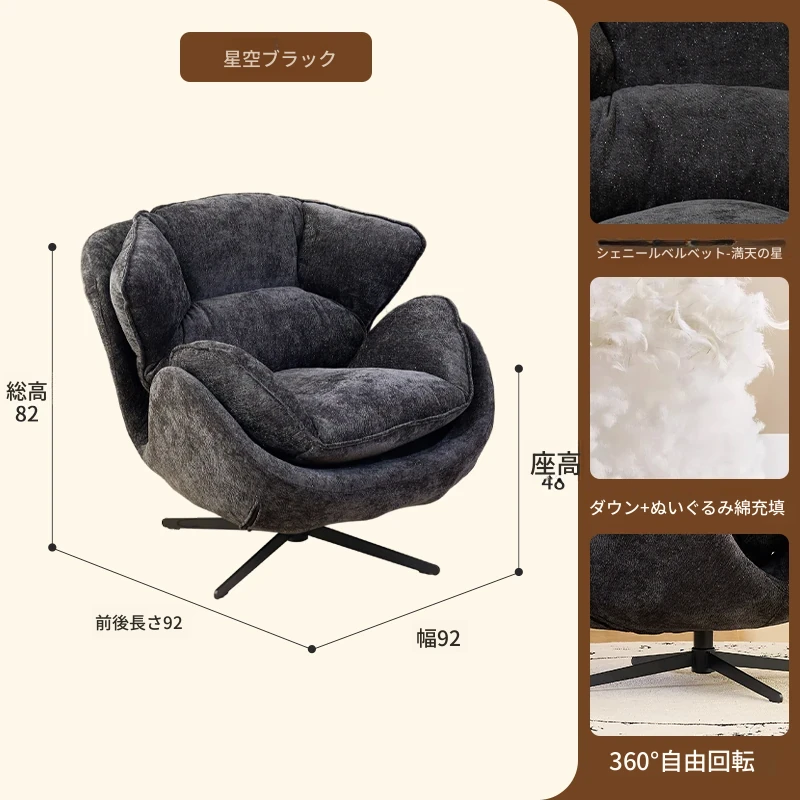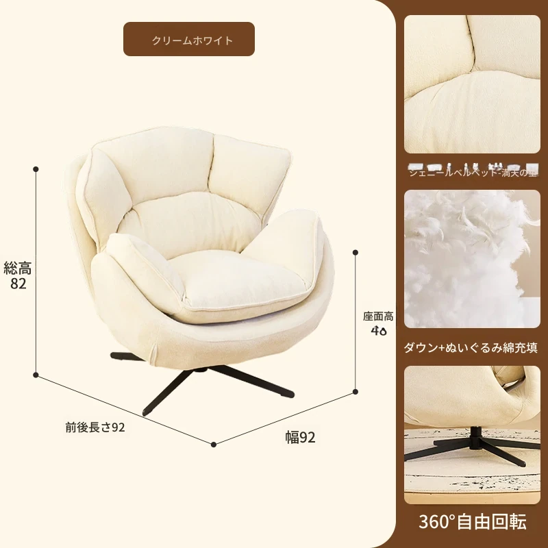 リラックスできるスワンチェア!回転式の一人用ラウンジソファ。家庭用リビングやバルコニーに最適な、くつろぎの時間を提供します。快適さとスタイルを兼ね備えた、懶人向けの特別な椅子をお楽しみください!