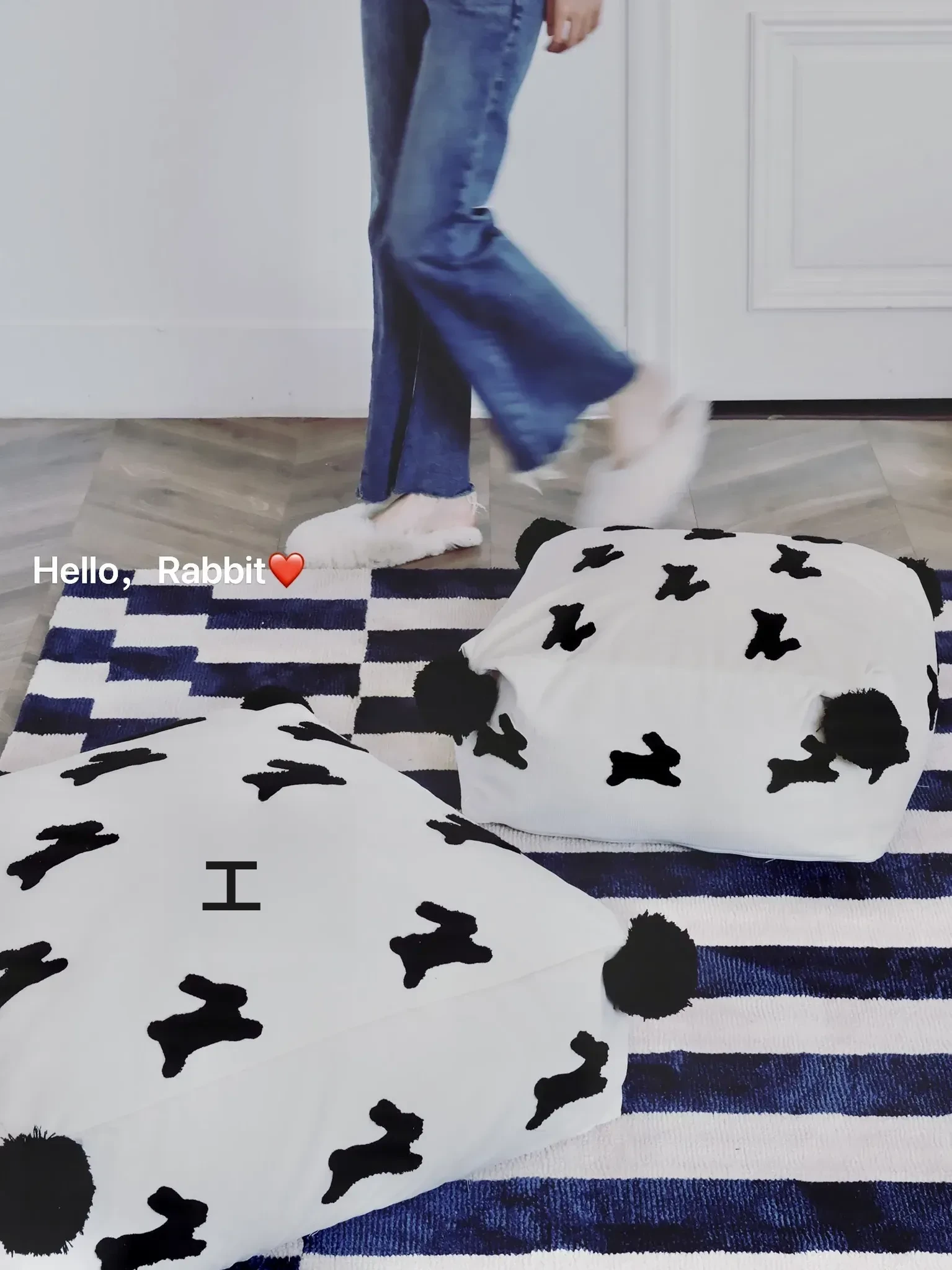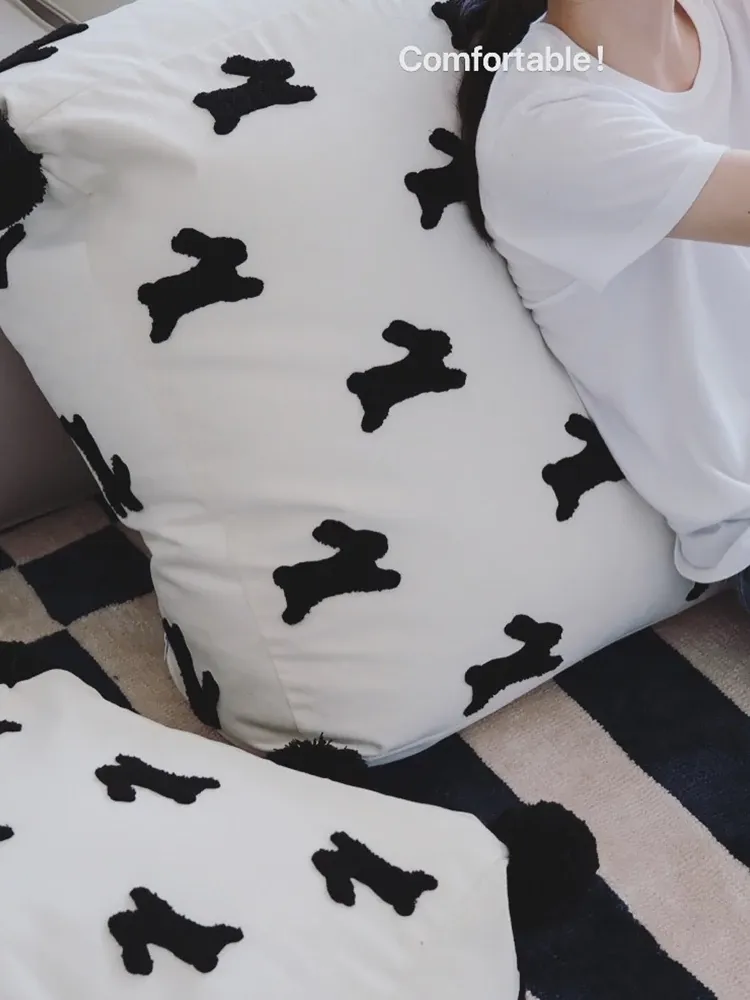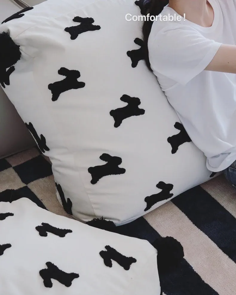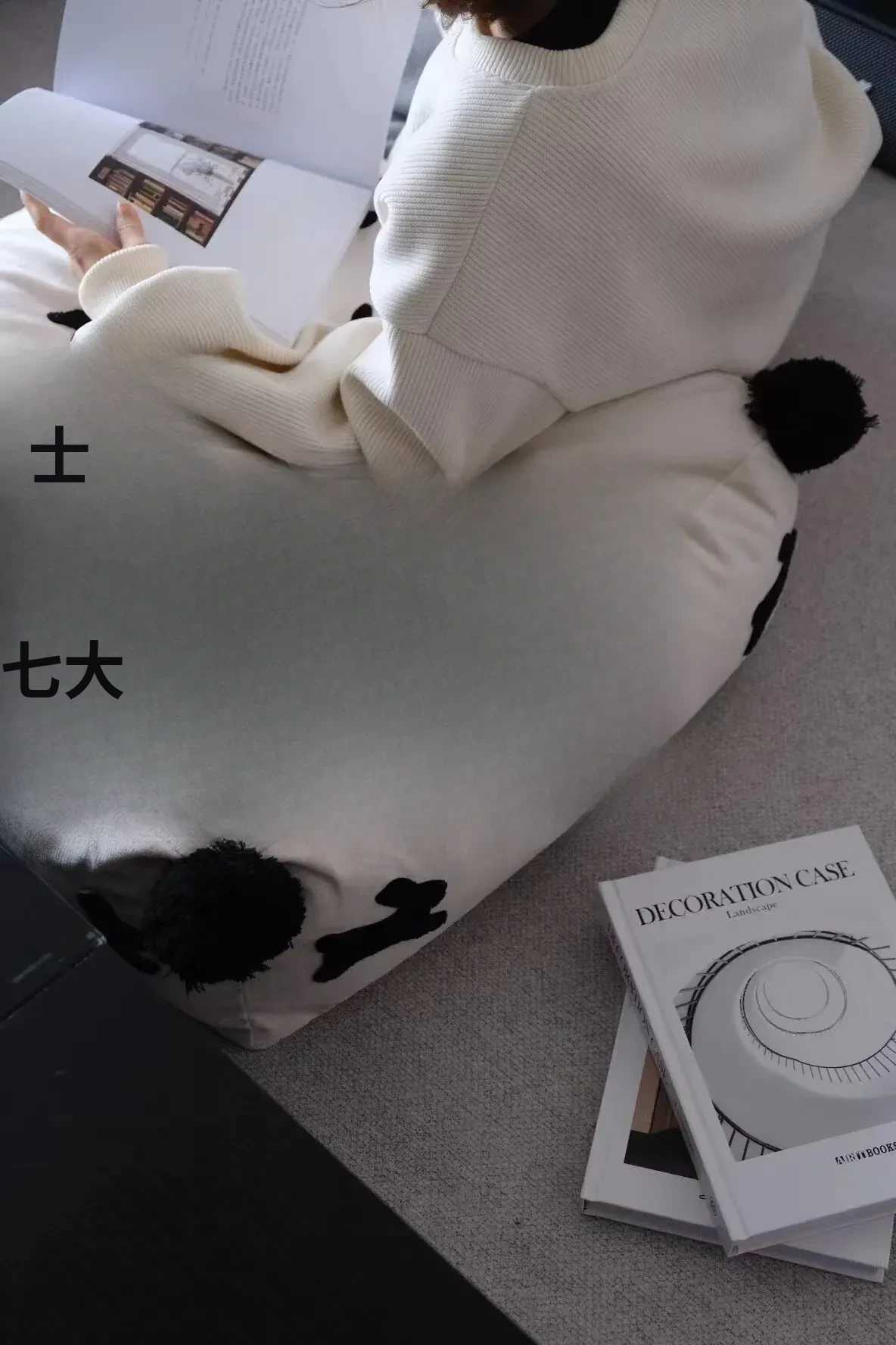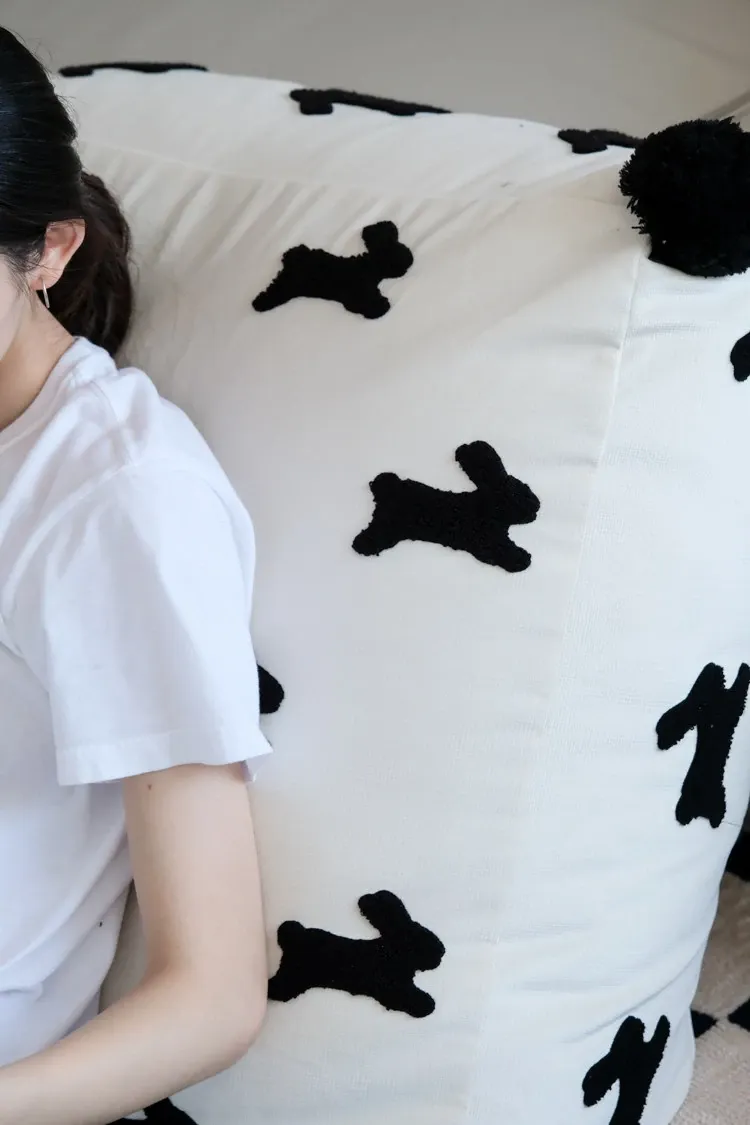 若奈限定!親子で楽しむ黒白ウサギ立体刺繍クッション、クリームホワイトの人気おしゃれソファ!リラックスしたいあなたにぴったりのLazy Sofa!