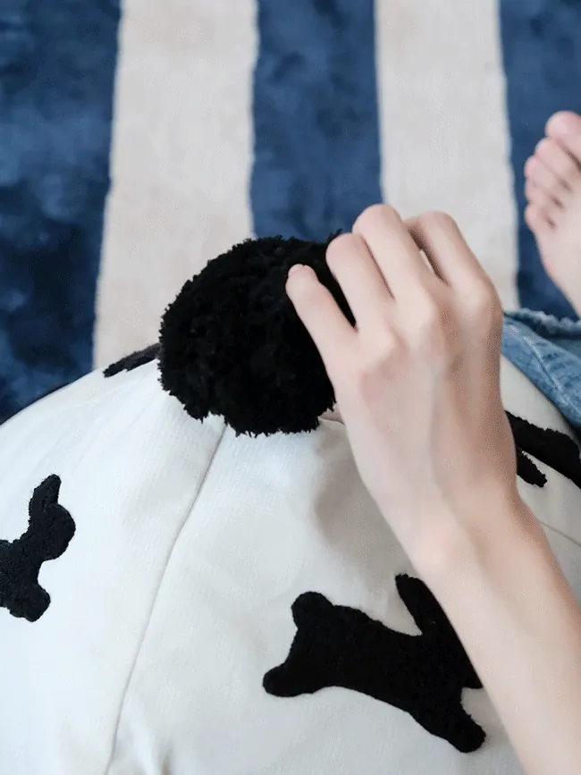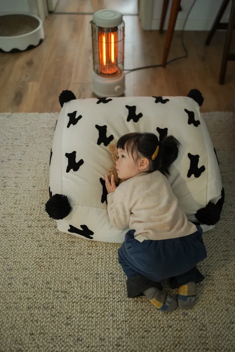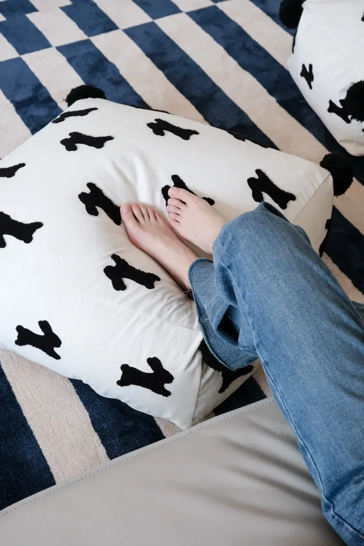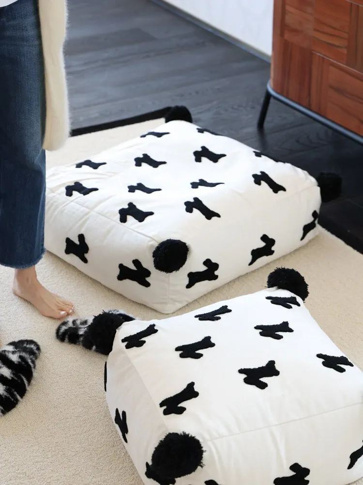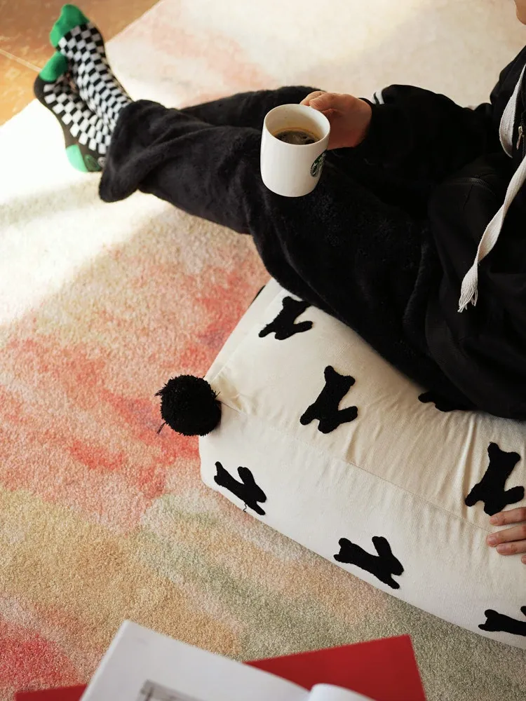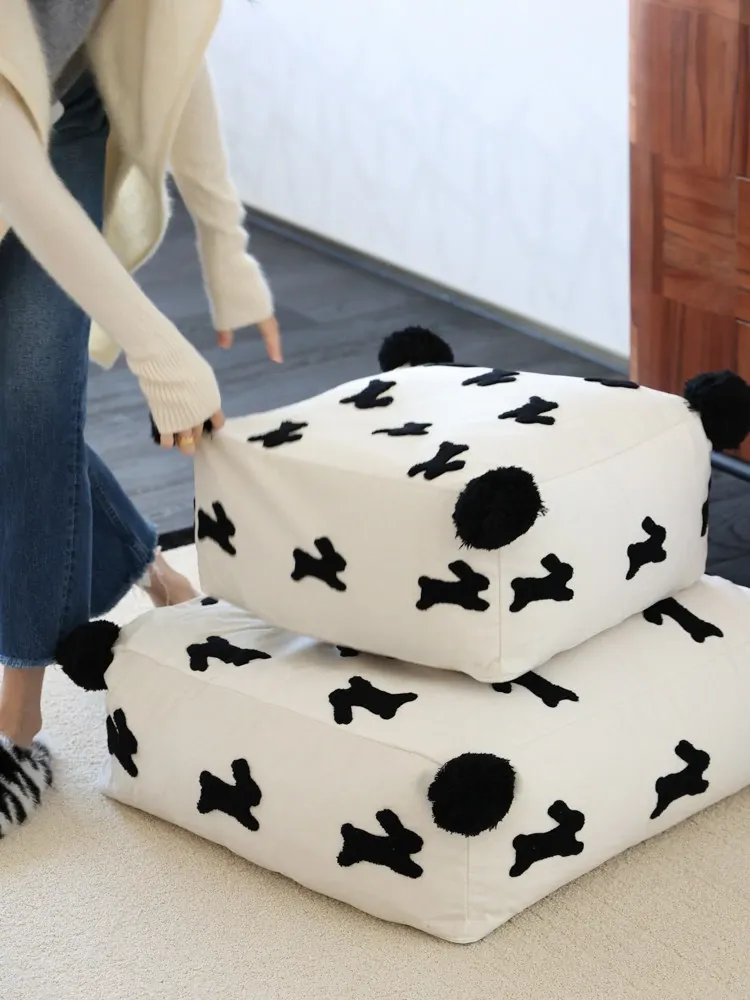 若奈限定!親子で楽しむ黒白ウサギ立体刺繍クッション、クリームホワイトの人気おしゃれソファ!リラックスしたいあなたにぴったりのLazy Sofa!