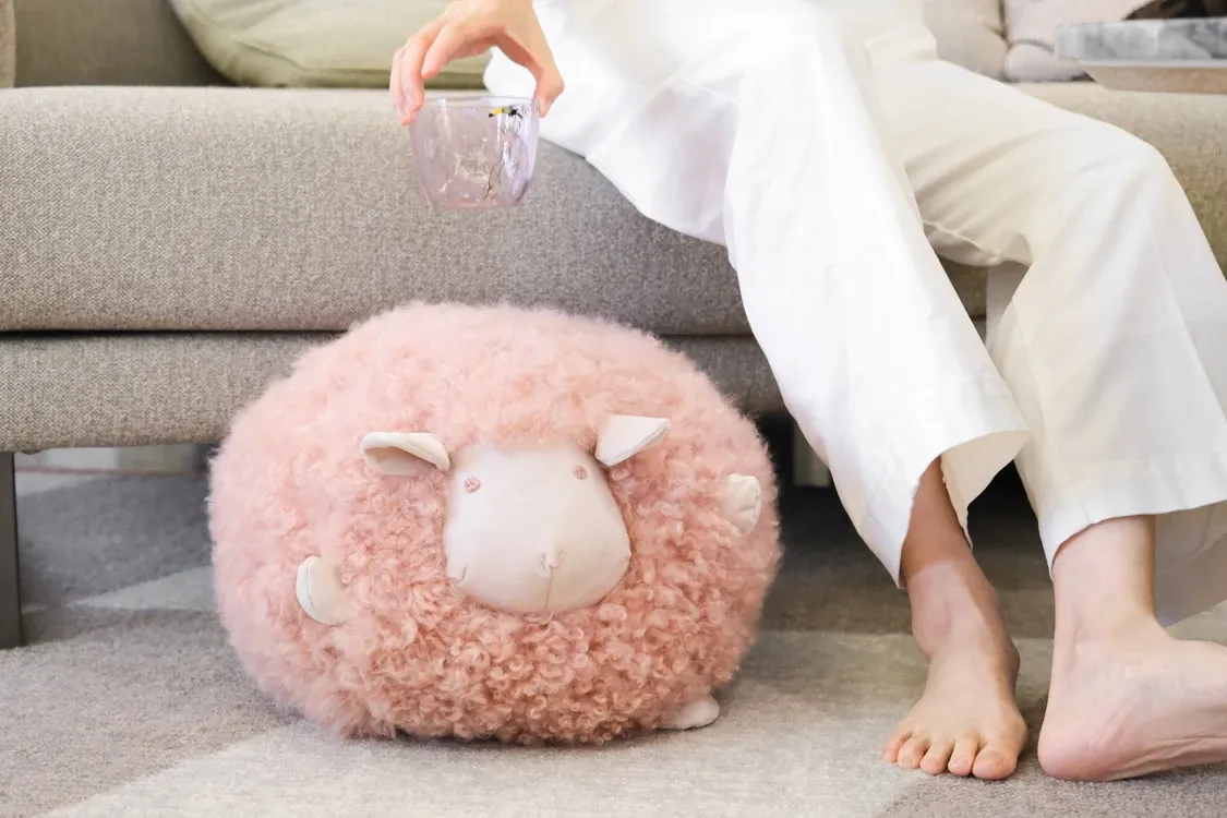 限定ピンク!ロエベ*シャーリーン抱き枕 / 柔らかな羊毛を使用した多機能クッション、足置きにも最適!あなたのリラックスタイムを彩る可愛いアイテムです。