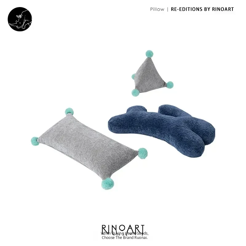 Limited Edition Rona LA Stock-Out! Tiffa*ny Blue Water Color Complete Pillow Set - Creative Rabbit Lumbar Support with Triangular Design for Ultimate Comfort