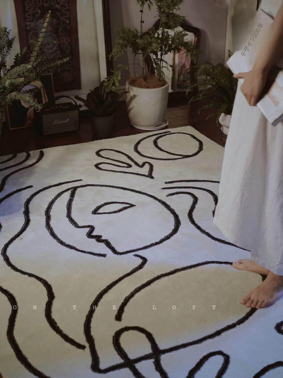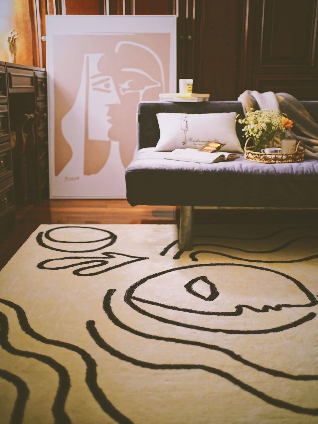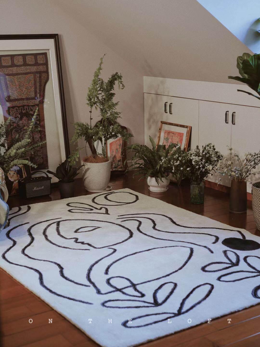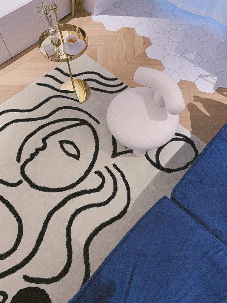 ピカソシリーズ黒白モダンミニマリストリビングカーペット
