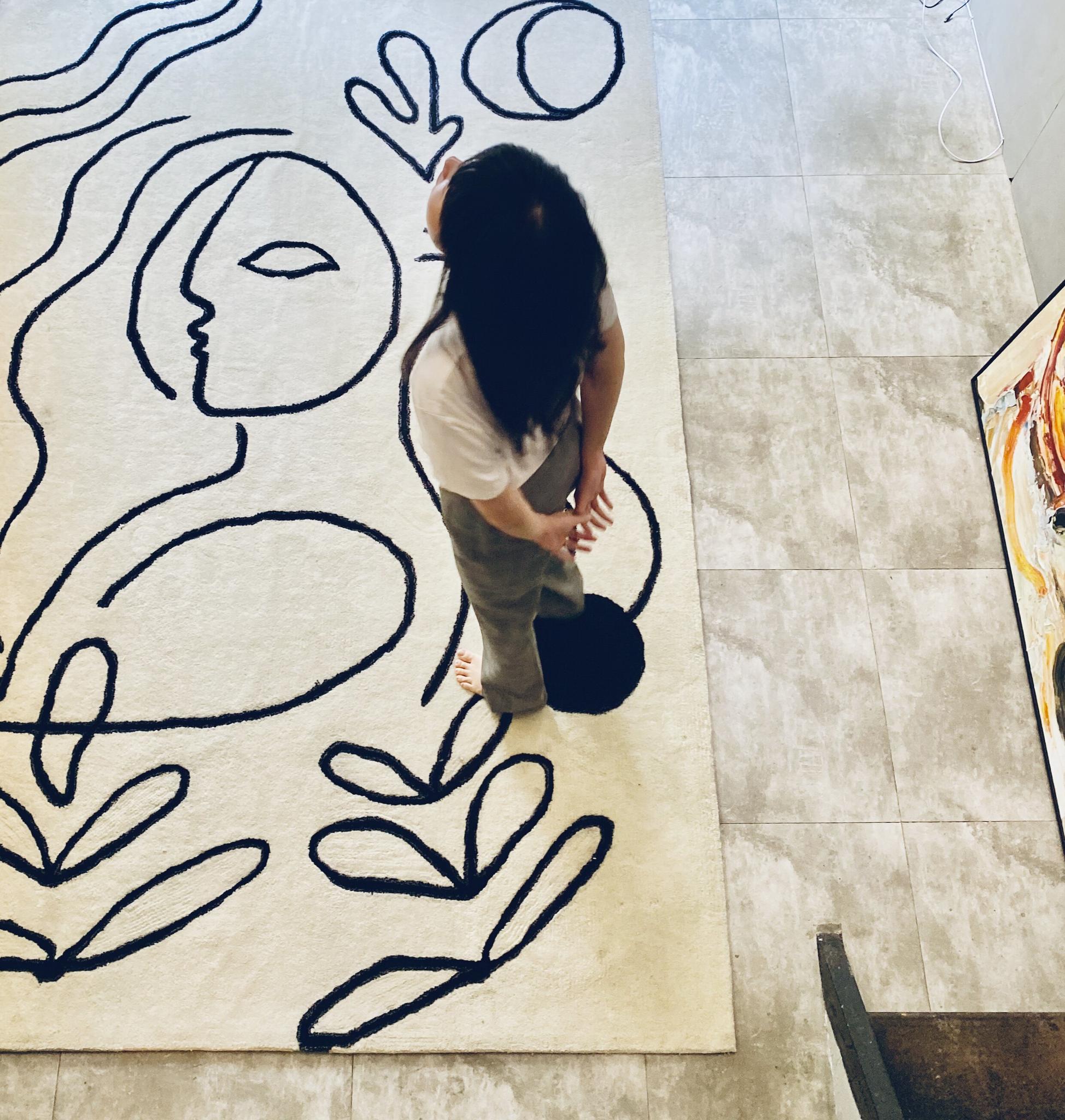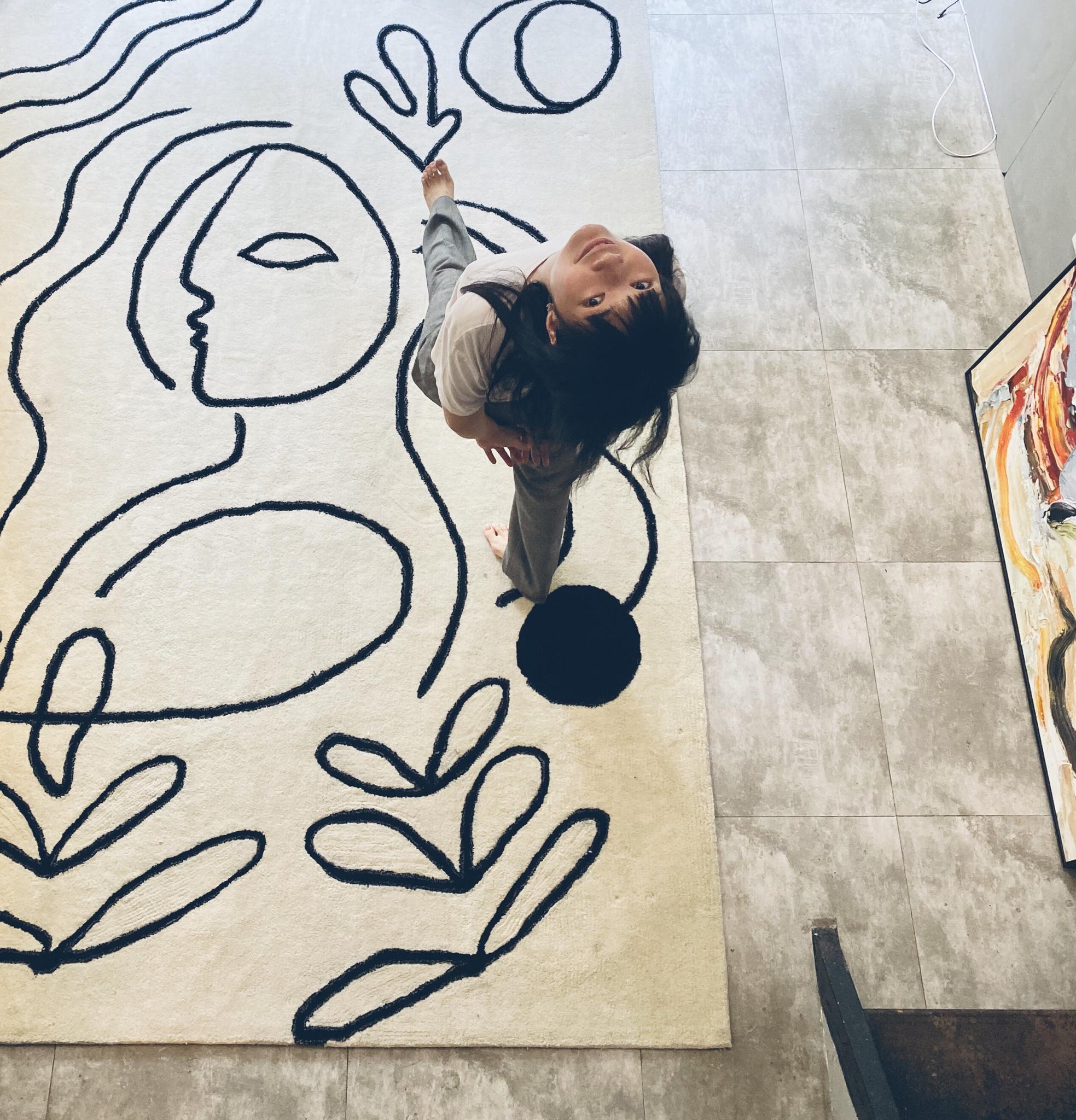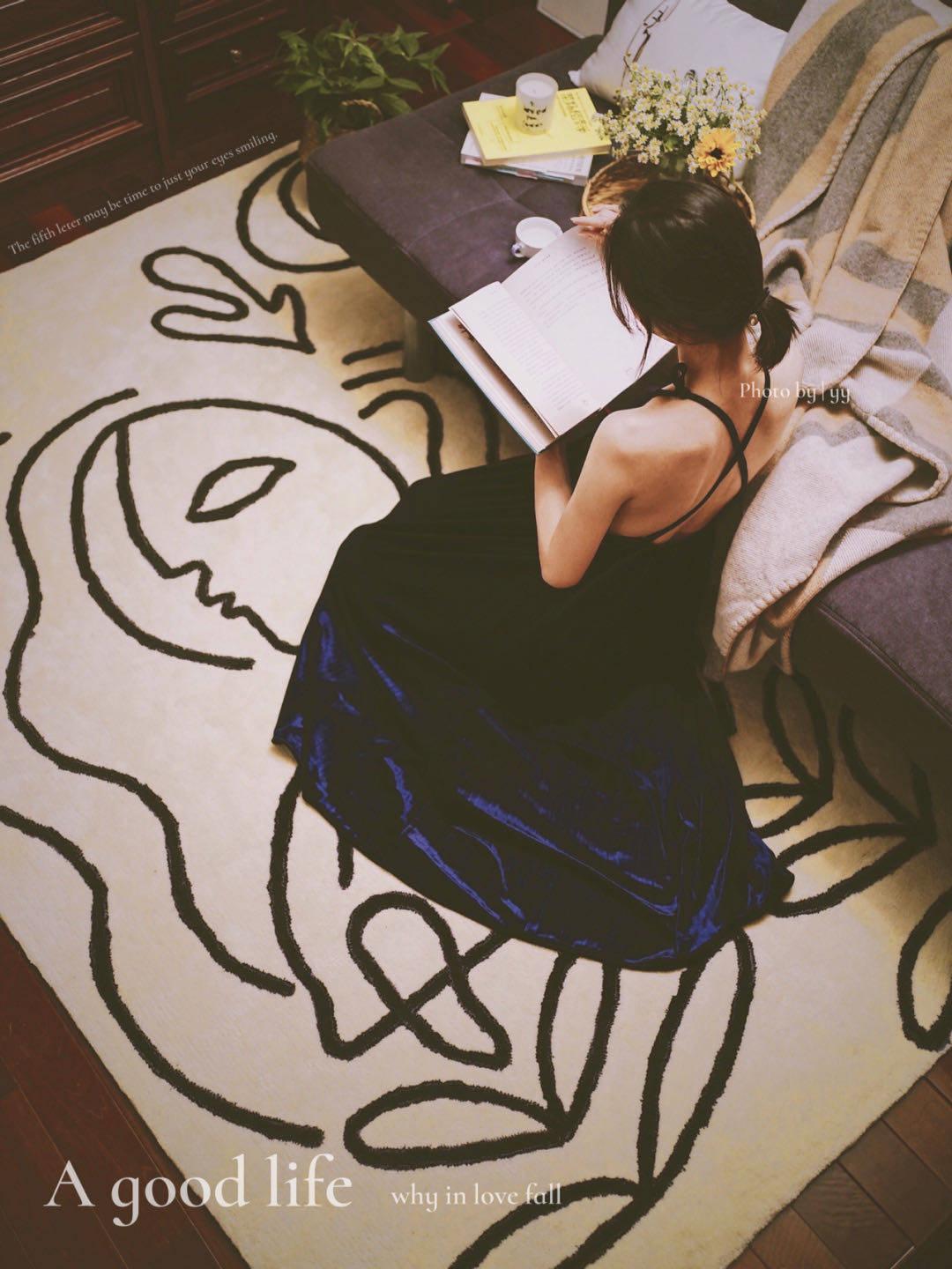 ピカソシリーズ黒白モダンミニマリストリビングカーペット