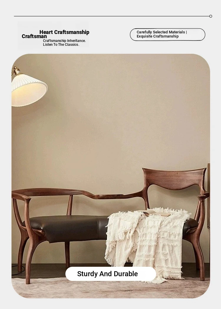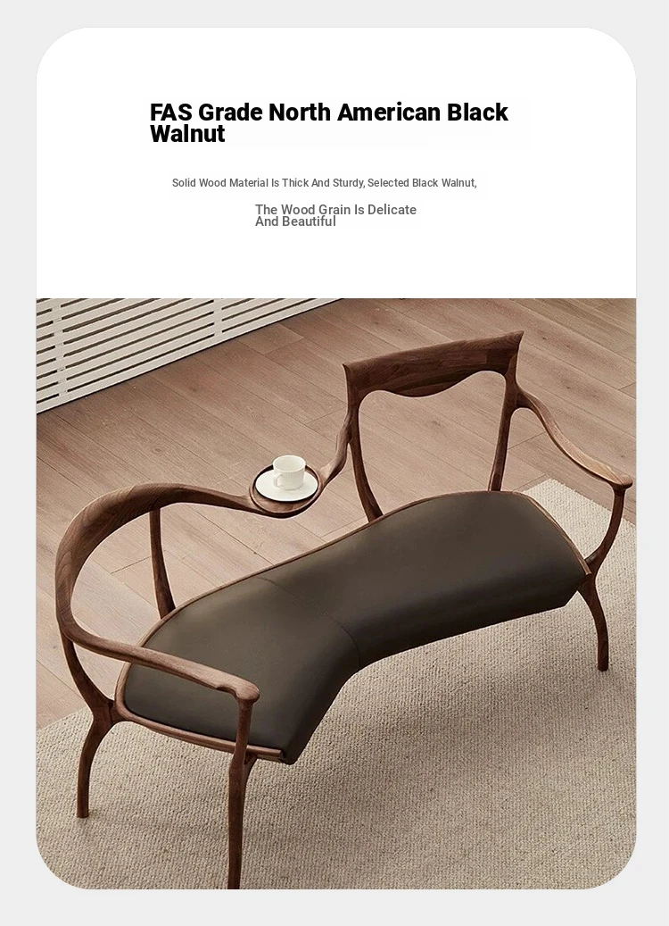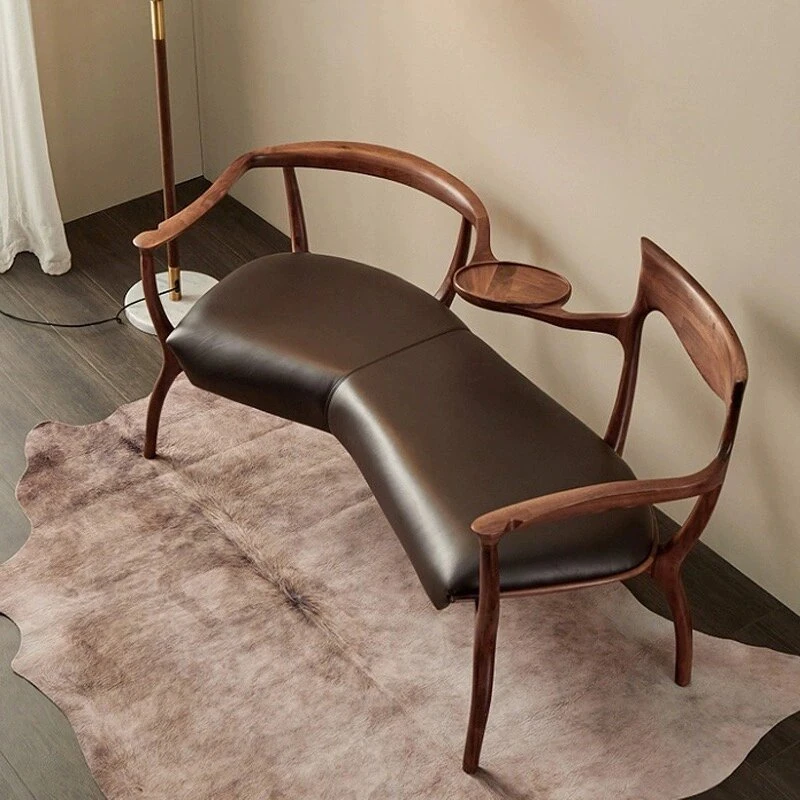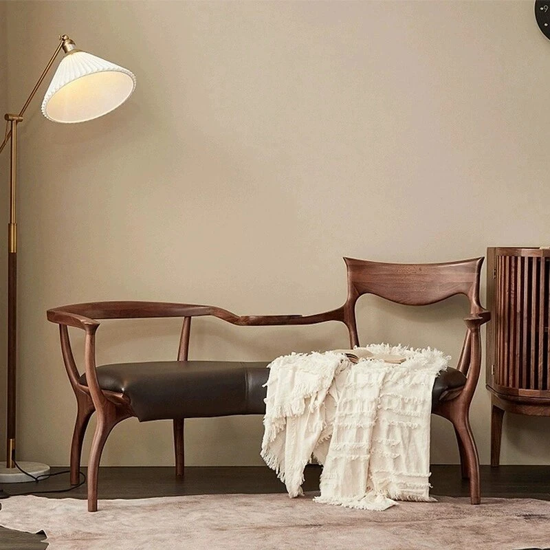 Luxurious Walnut Wood Leisure Chair - Stylish Two-Seater Sofa for Home Living Room, Upholstered with Walnut Veneer and Solid Wood for Ultimate Comfort and Elegance