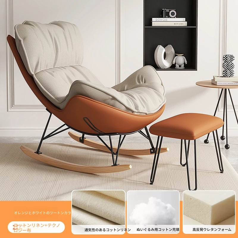 【快適通気コットンリネン】オレンジとホワイトのコンビ+フットレスト☆豪華ビッグサイズ