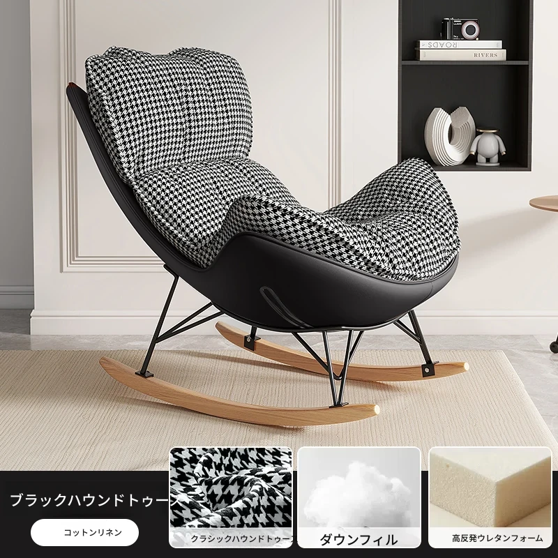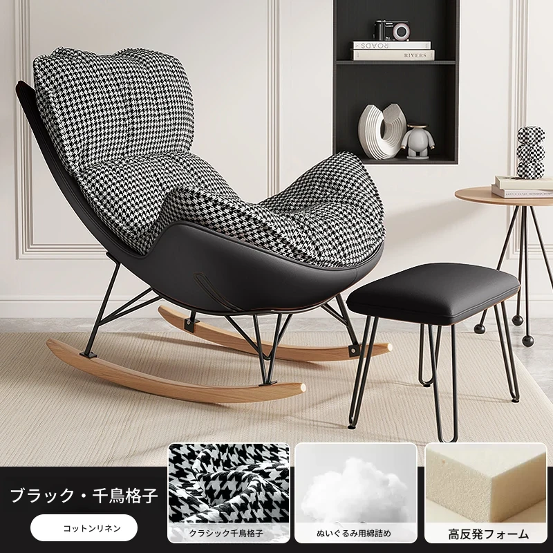 【快適通気コットンリネン】ブラックの千鳥格子+フットレスト☆豪華ビッグサイズ