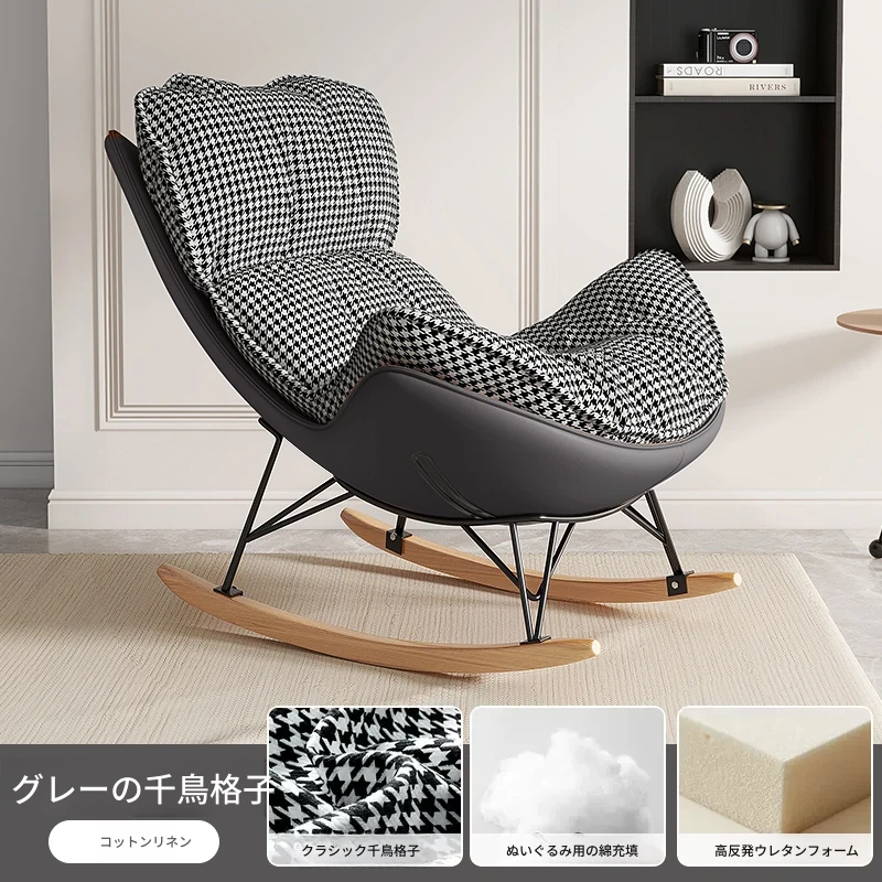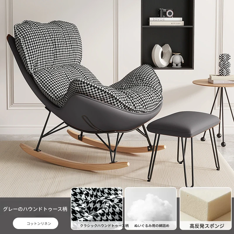 【快適通気コットンリネン】グレーの千鳥格子+フットレスト☆豪華ビッグサイズ