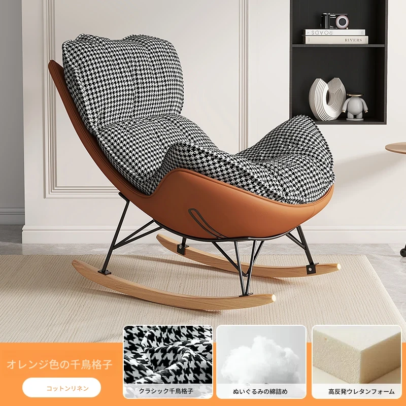 【快適通気コットンリネン】オレンジの千鳥格子+フットレスト☆豪華ビッグサイズ