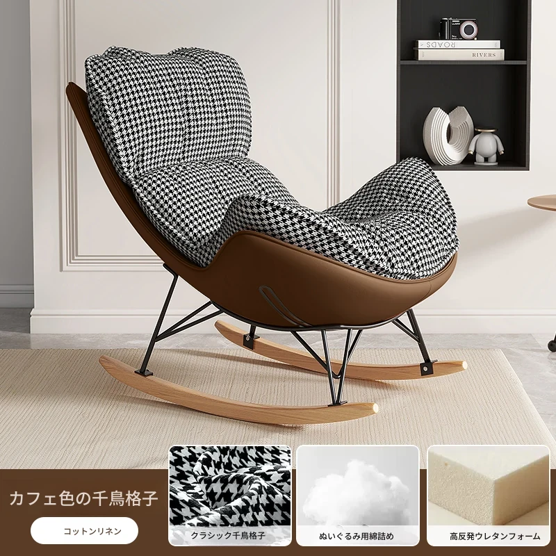 【快適通気コットンリネン】コーヒー色の千鳥格子+フットレスト☆豪華ビッグサイズ
