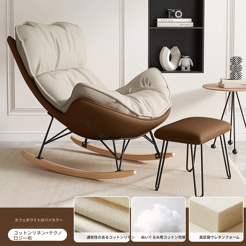 【快適通気コットンリネン】コーヒーとホワイトのコンビ+フットレスト☆豪華ビッグサイズ