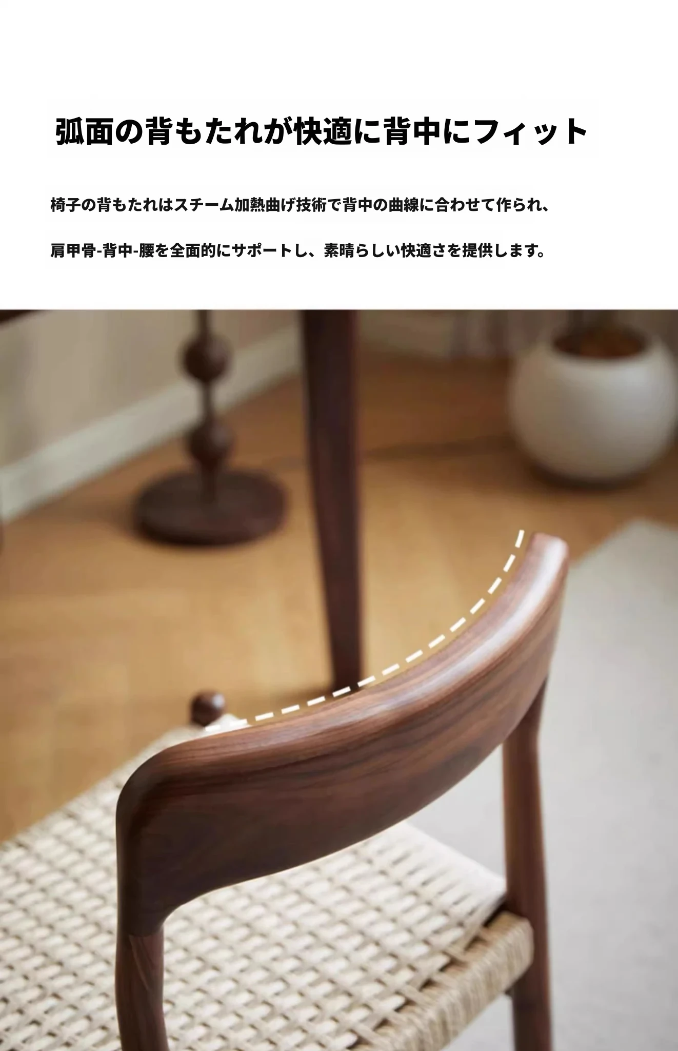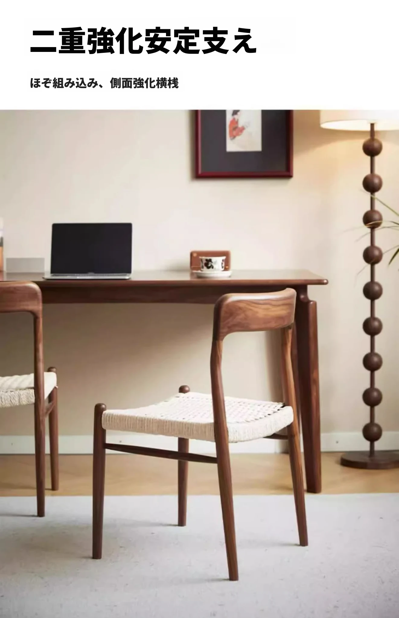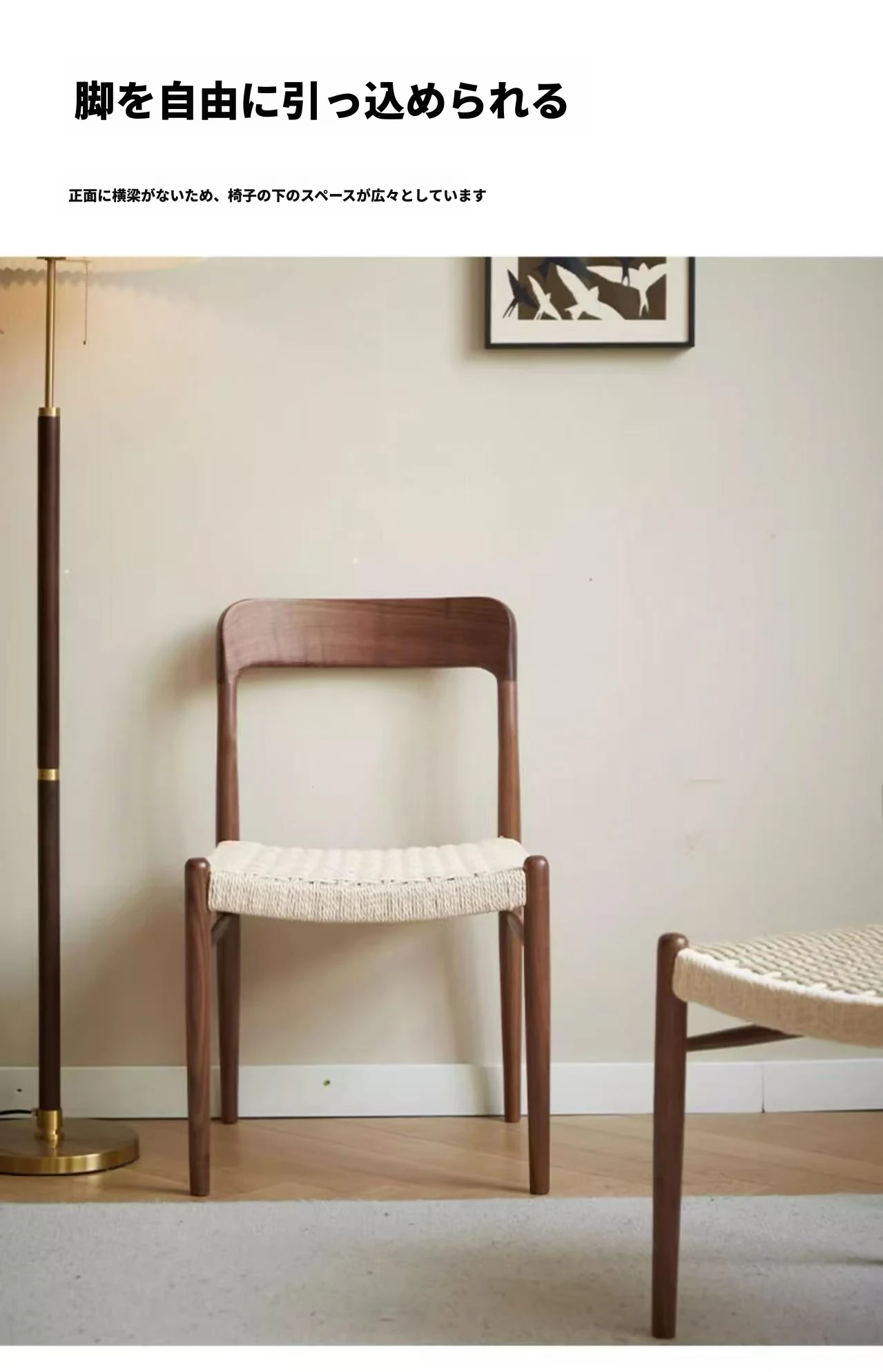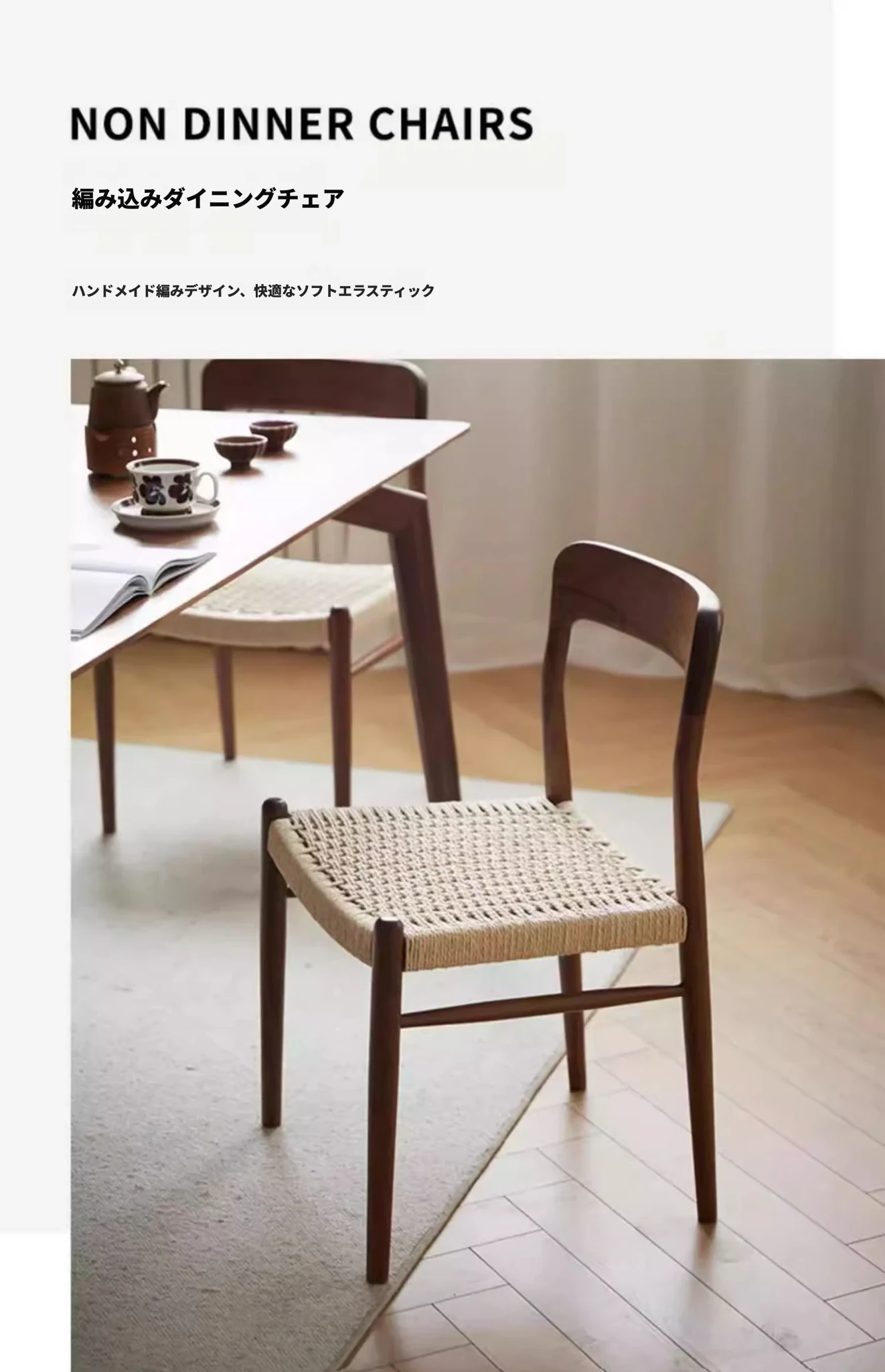 北米産ブラックウォールナット製のロープ編みチェア - シンプルでスタイリッシュなデザインの無垢材ダイニングチェア。家庭用や中古の背もたれチェア、書斎用の椅子としても最適!モダンなインテリアにぴったりの編み紐ダイニングチェアです。