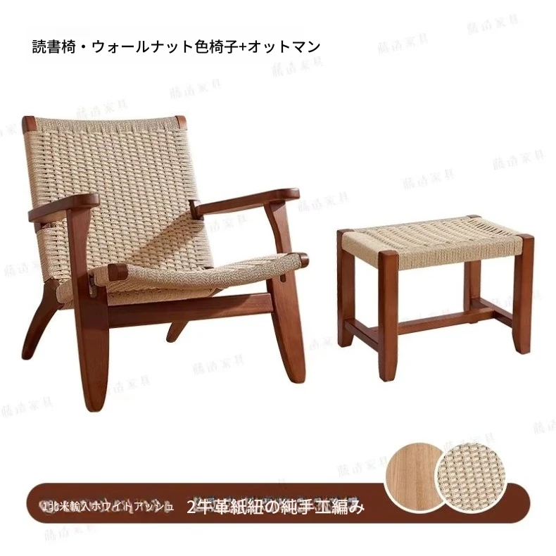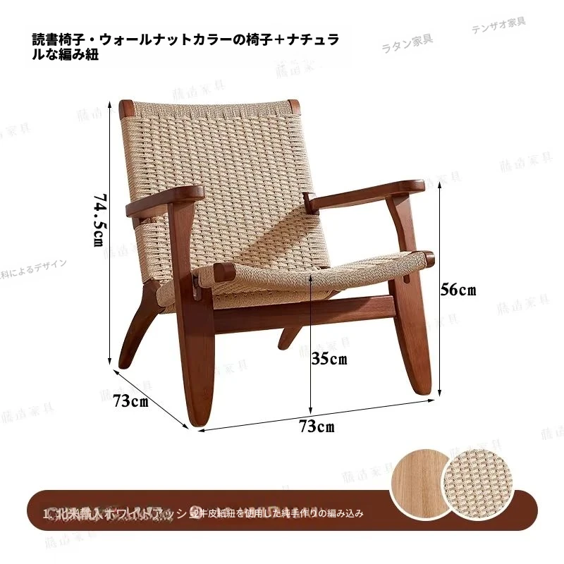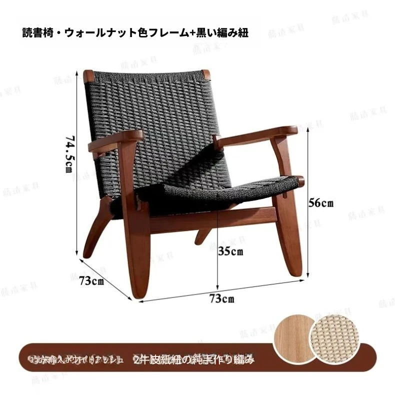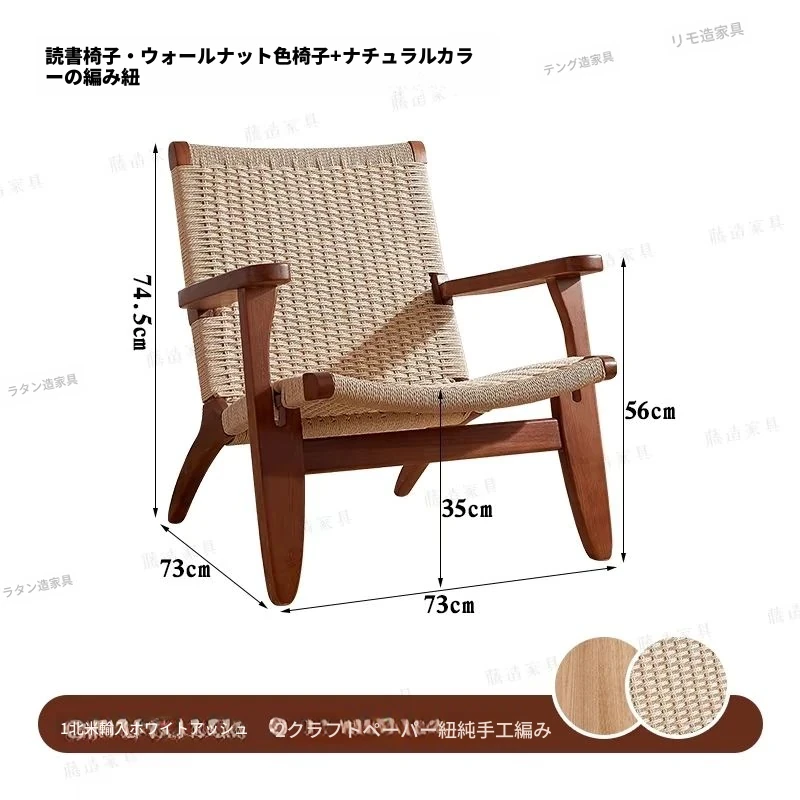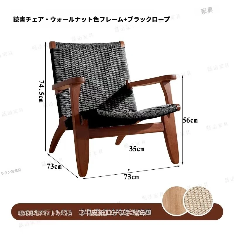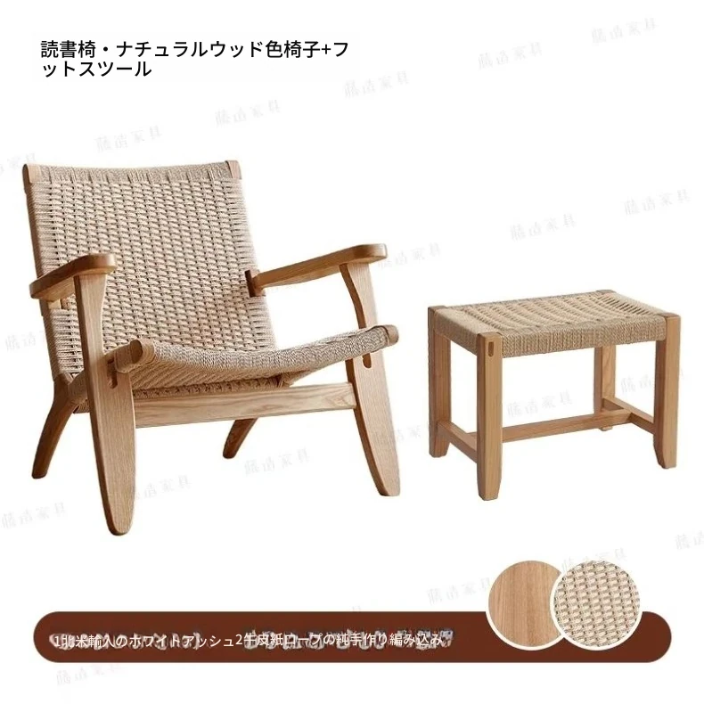 ホワイトアッシュ木製ソファチェア+(ダブル編み紐)+ウォールナット色