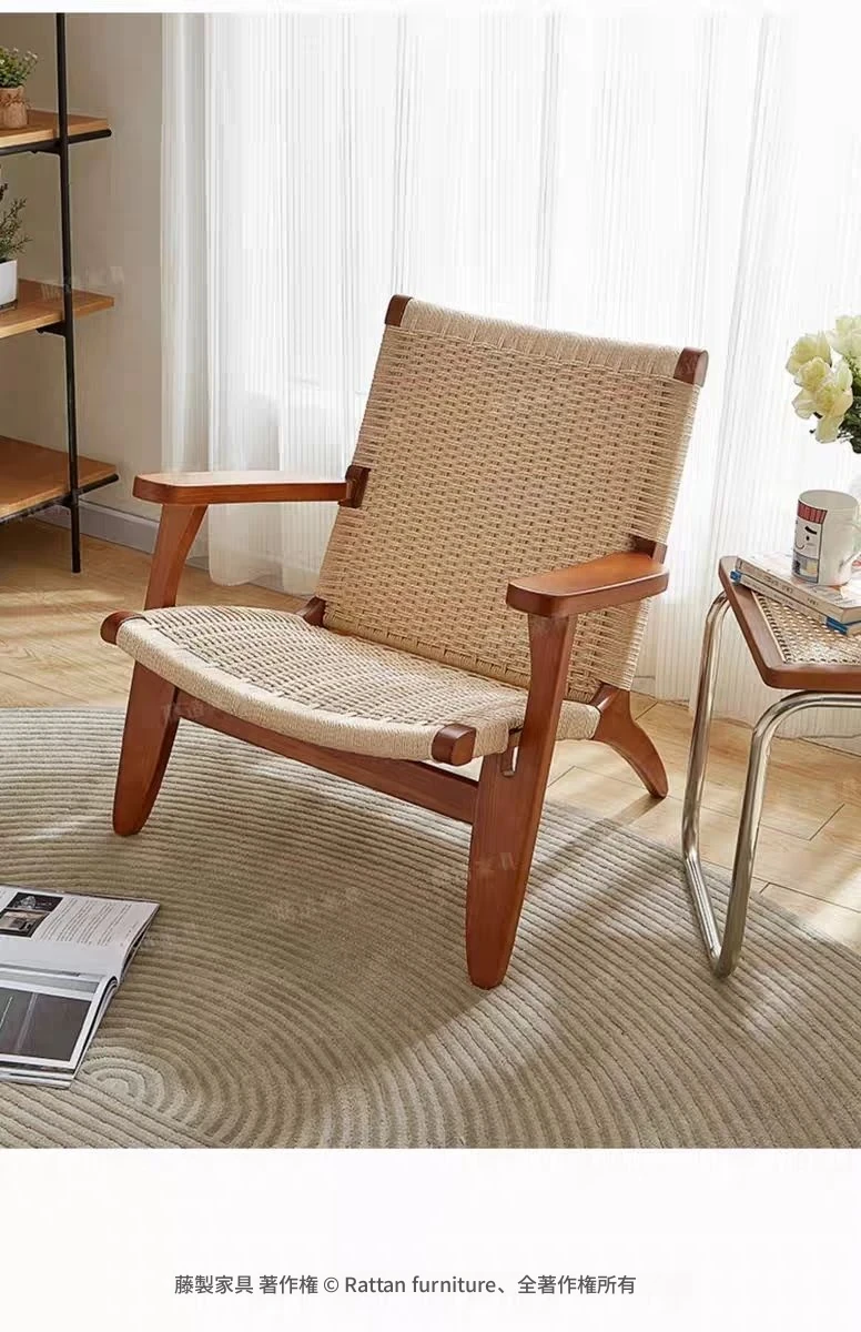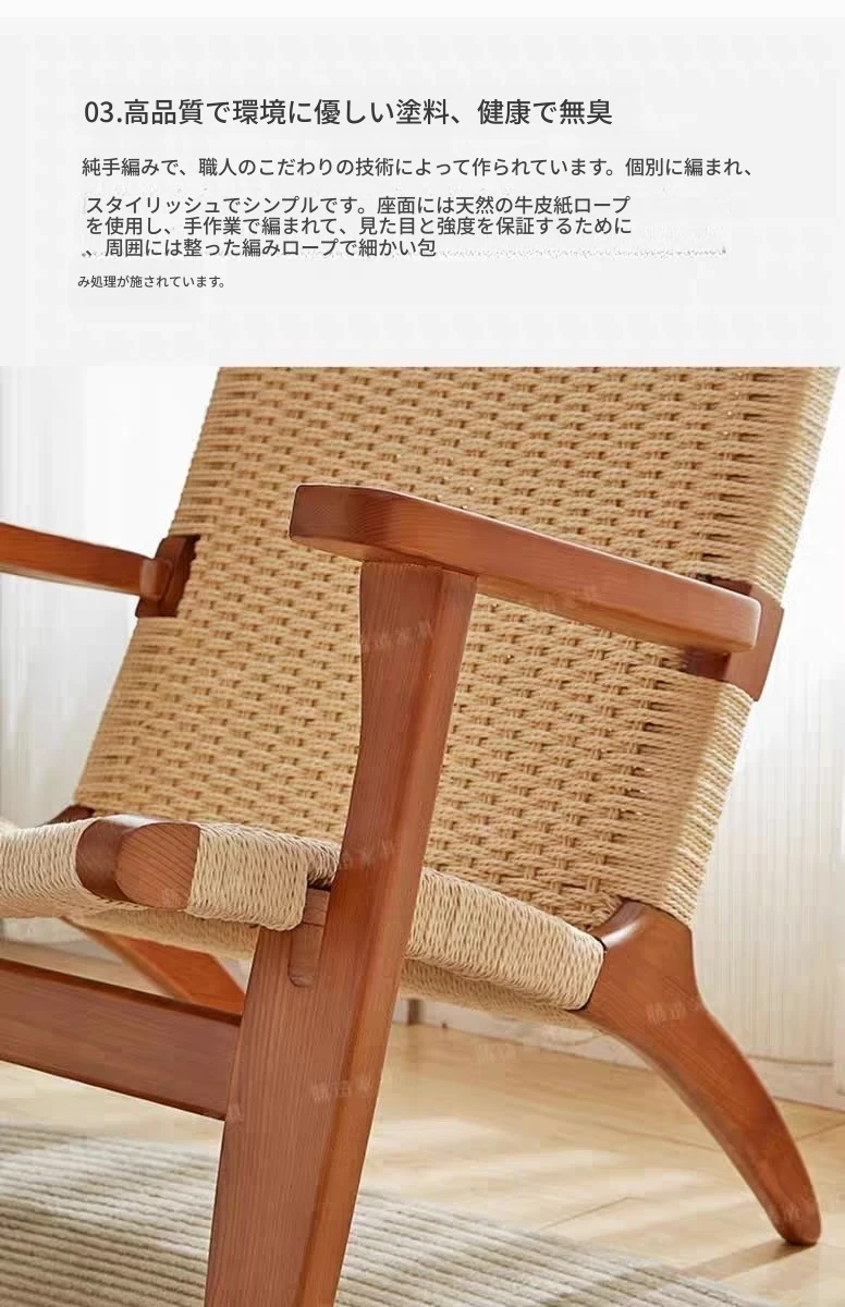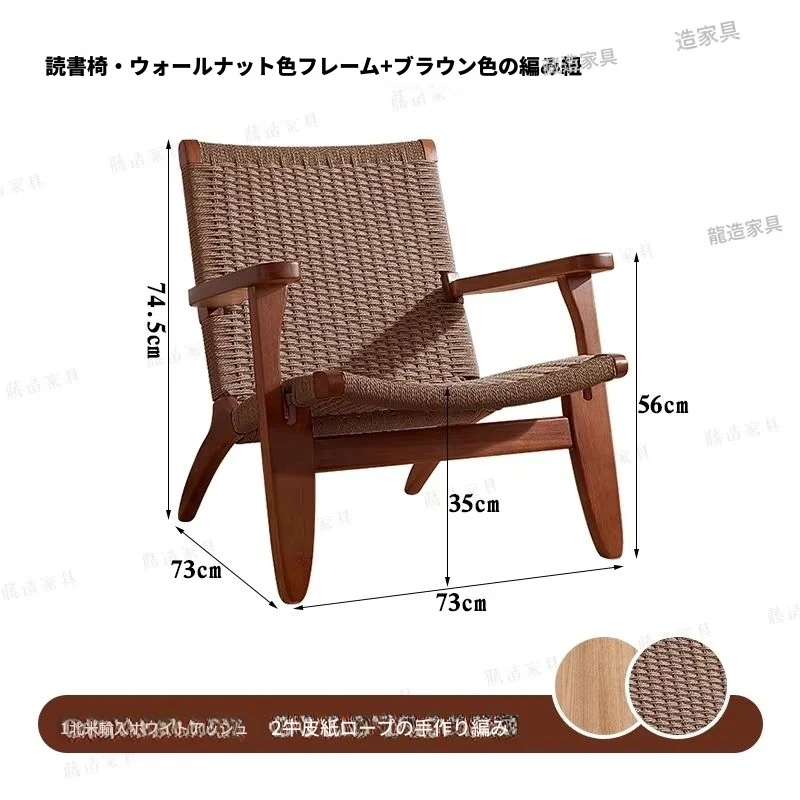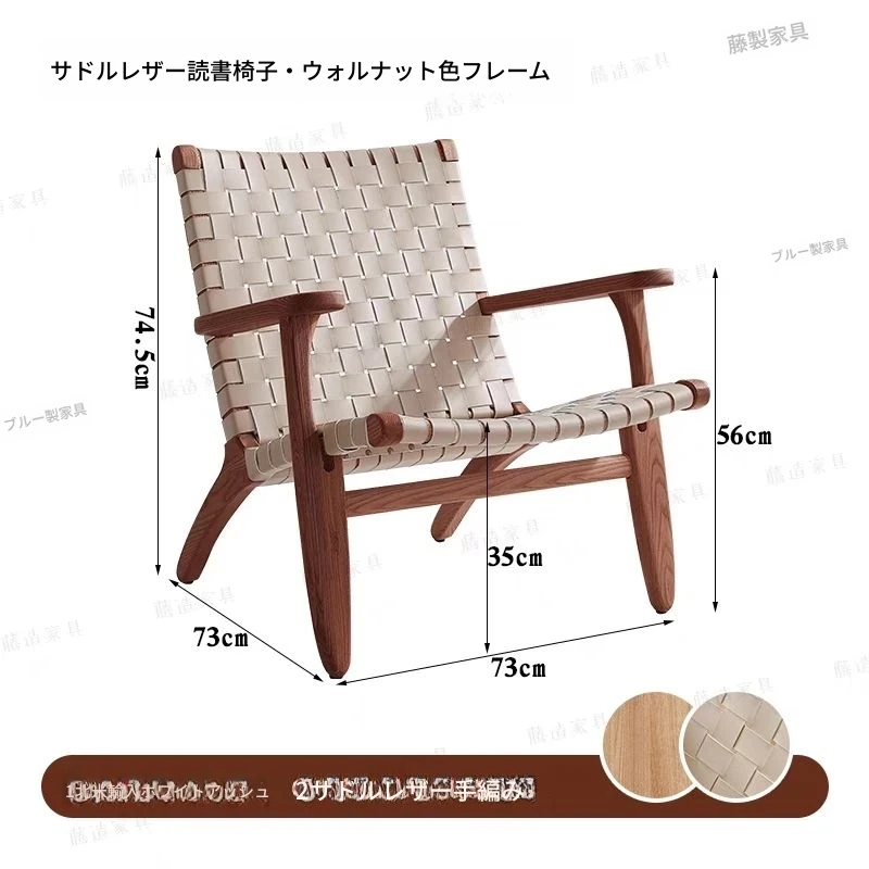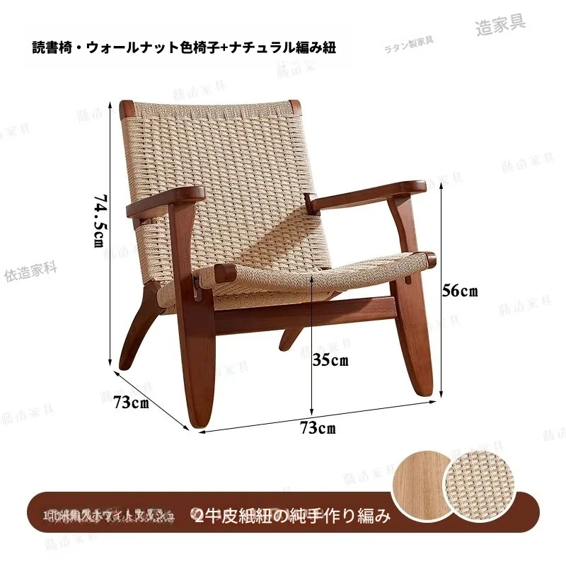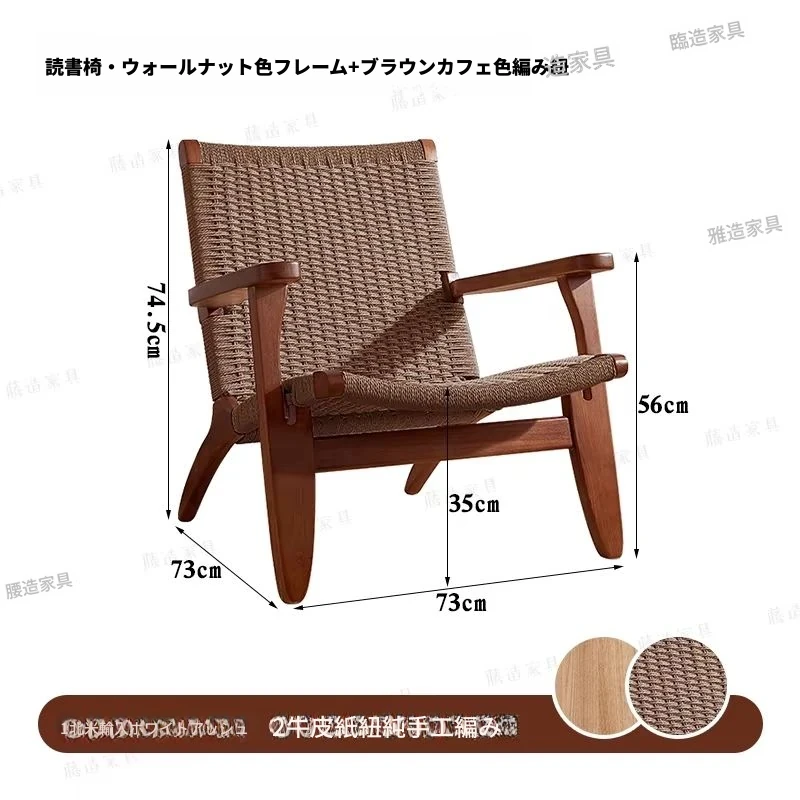 ホワイトアッシュ木製ソファチェア+(ダブル編み紐)+ウォールナット色