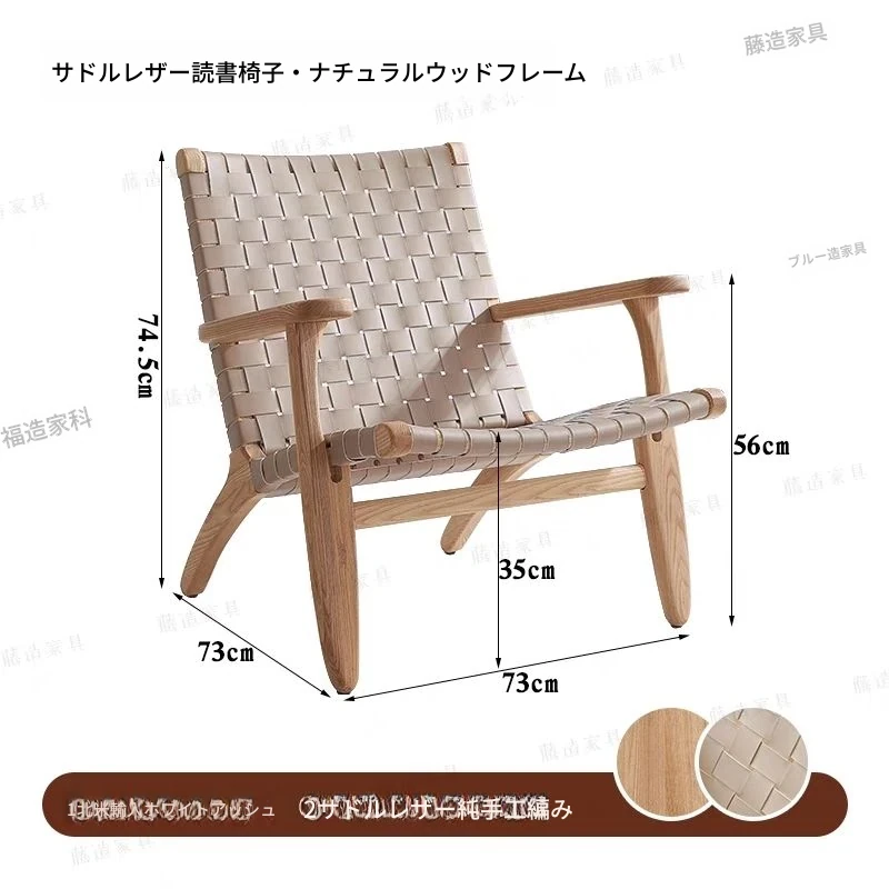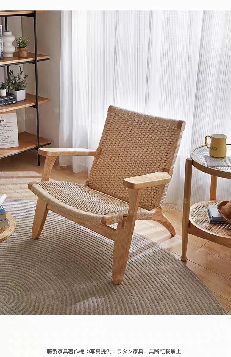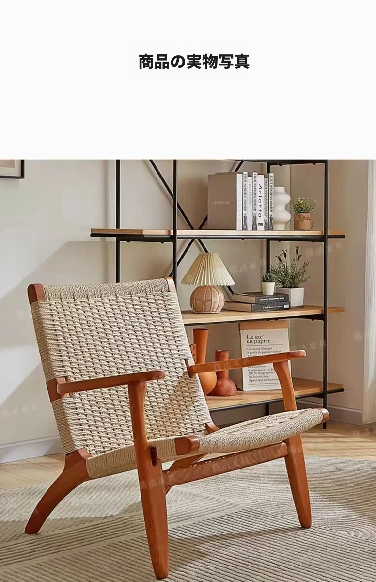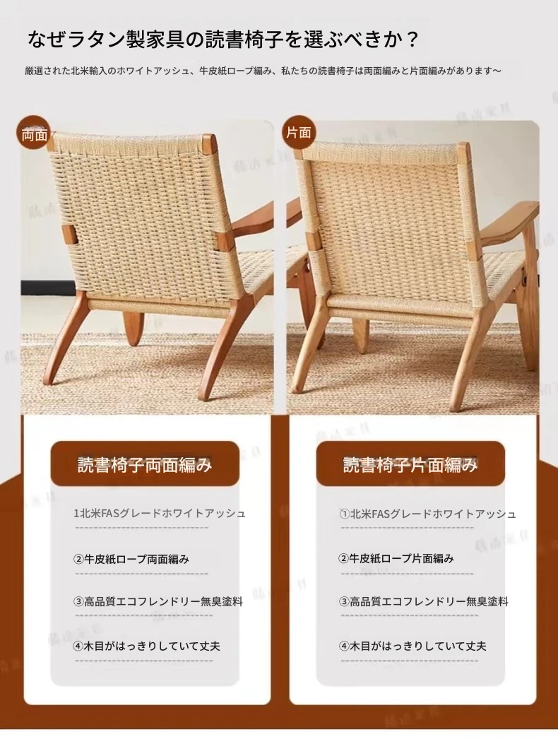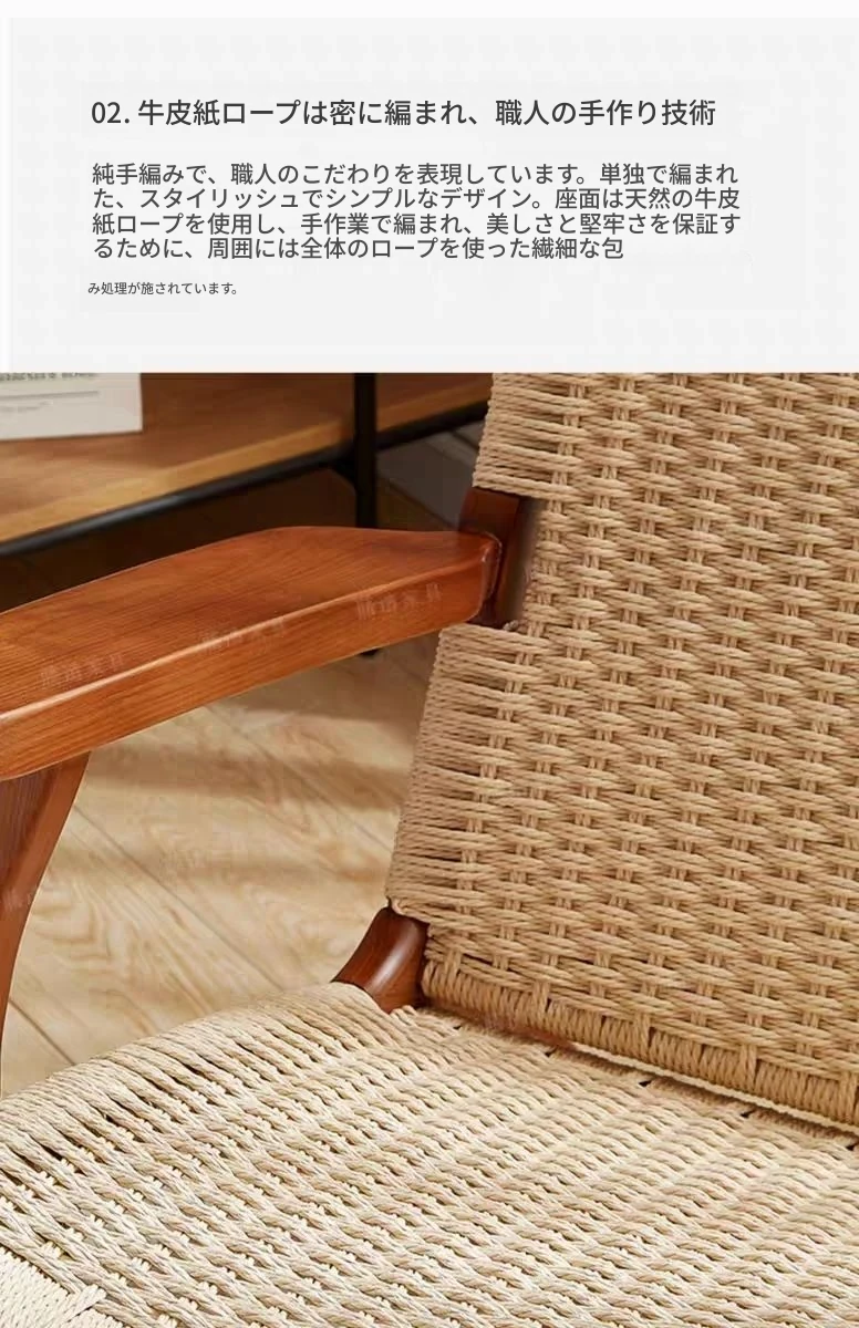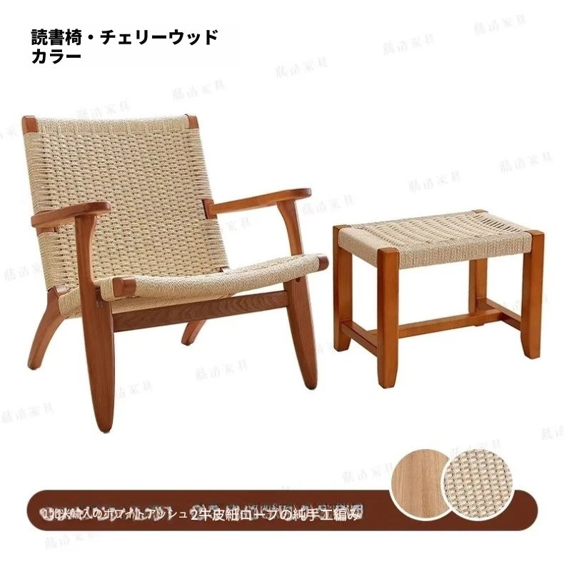 ホワイトアッシュ木製ソファチェア+(ダブル編み紐)+チェリー色