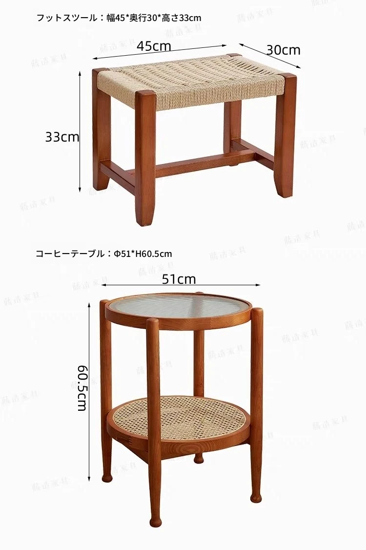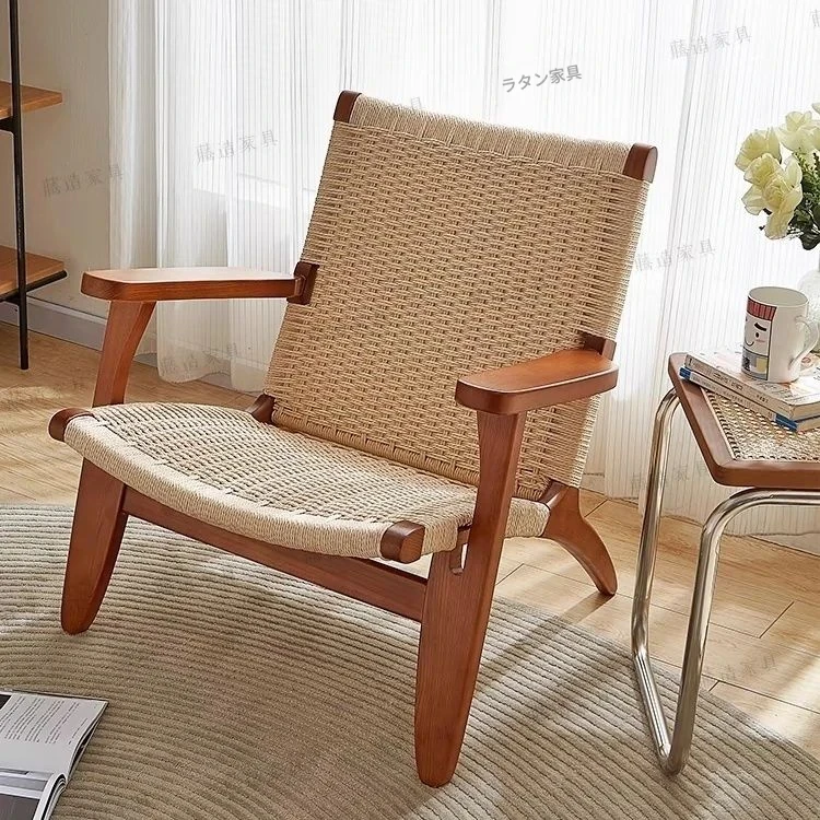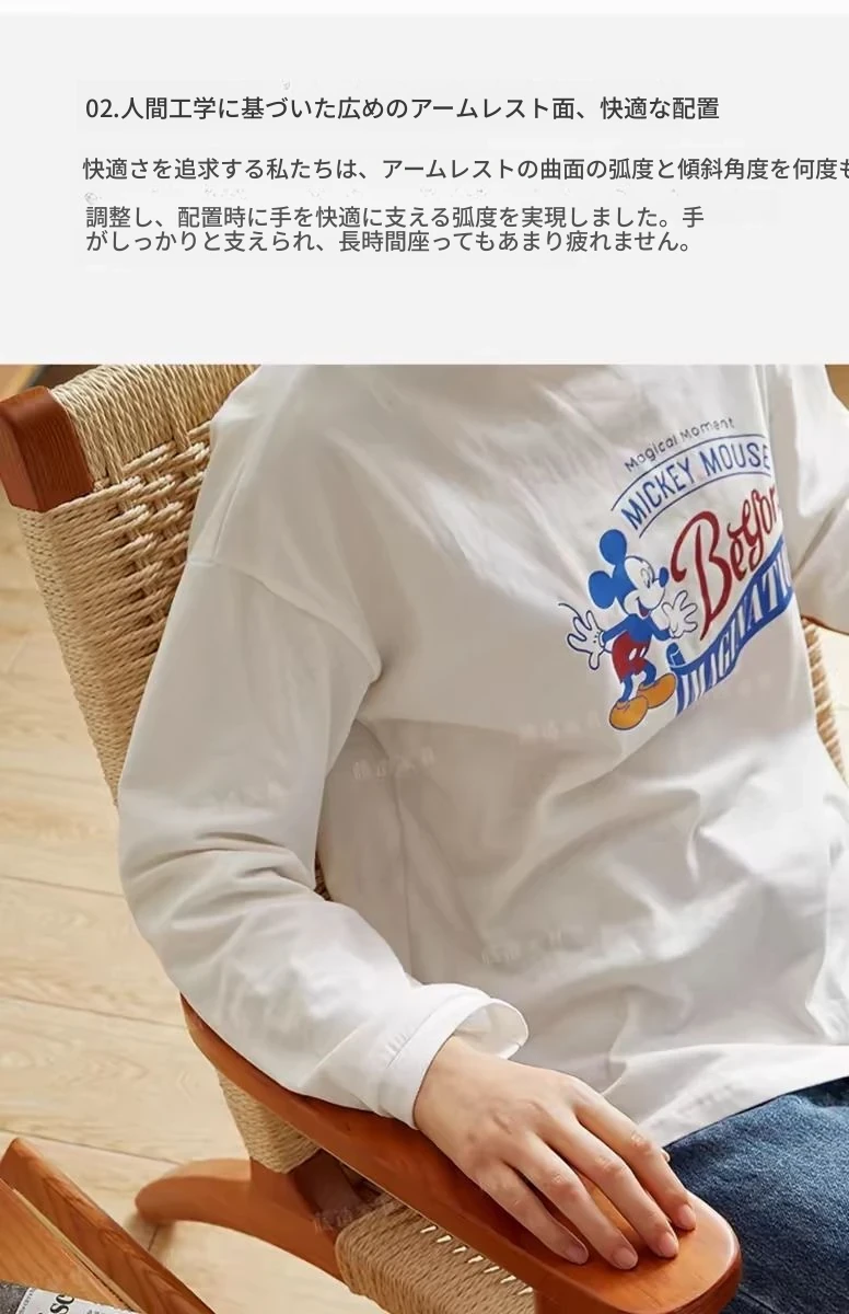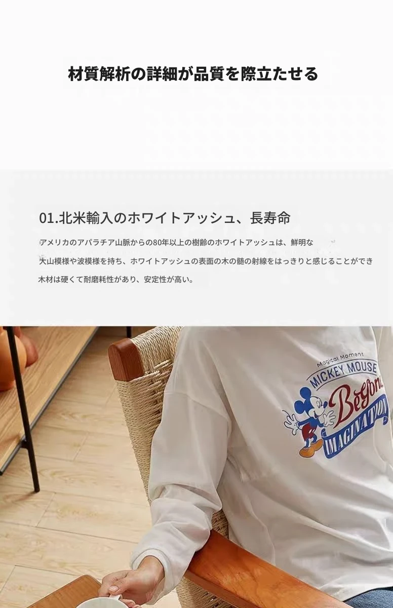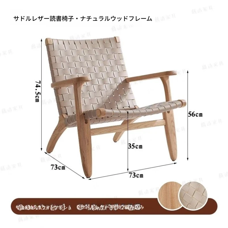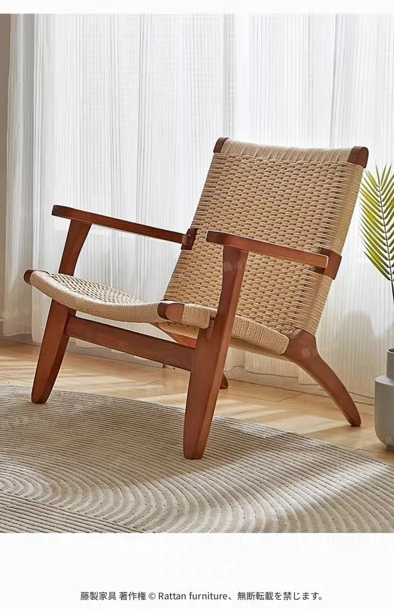 ホワイトアッシュ木製ソファチェア+(ダブル編み紐)+チェリー色