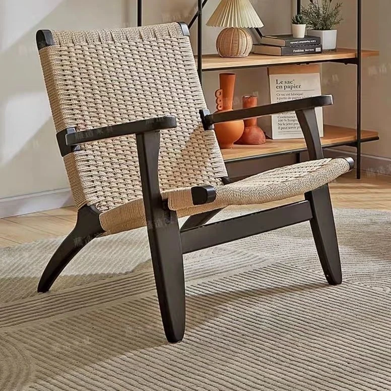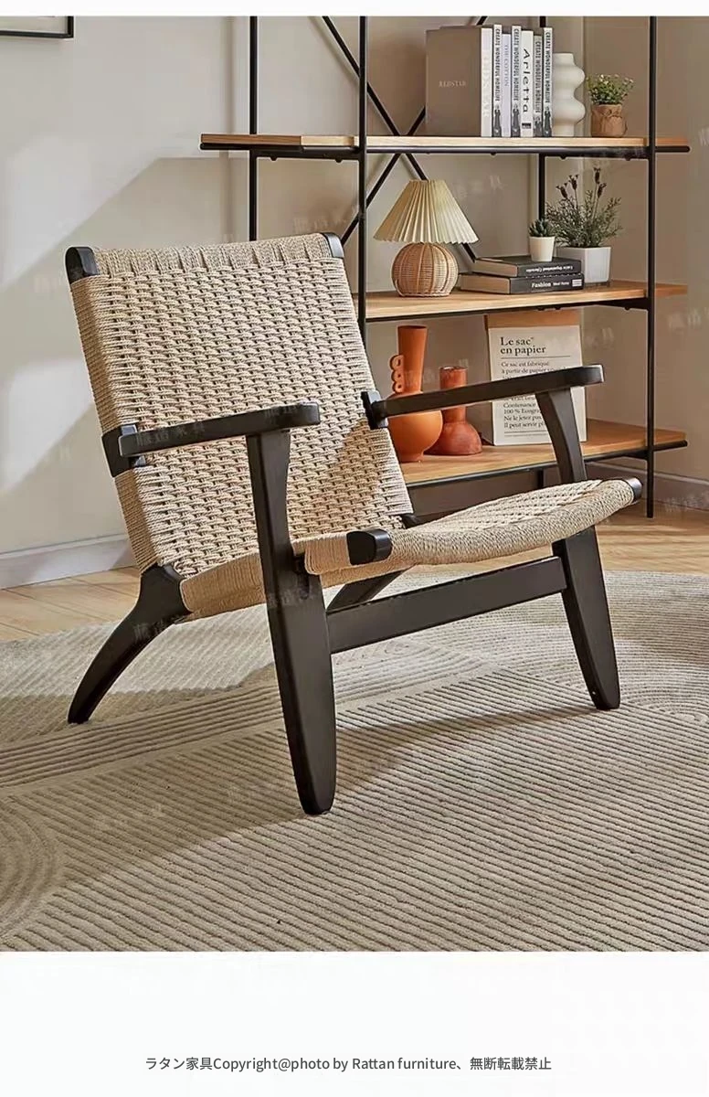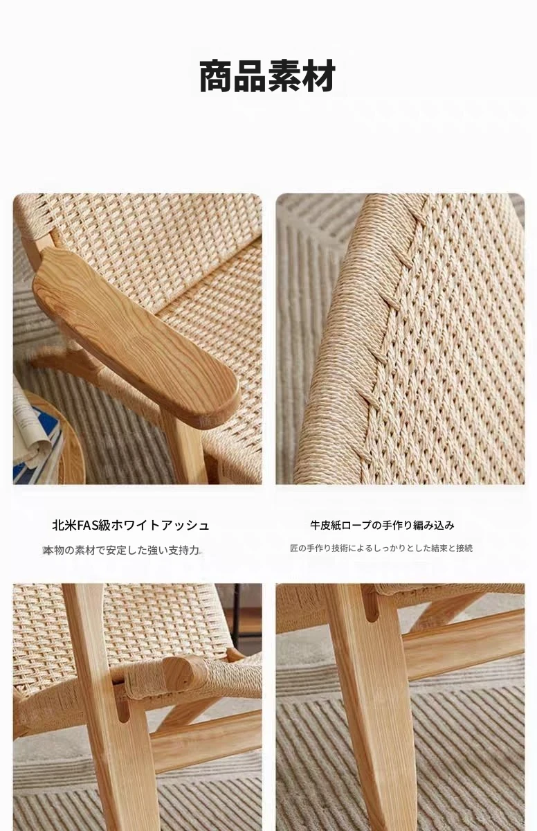 ホワイトアッシュ木製ソファチェア+(ダブル編み紐)+クラシックブラック色