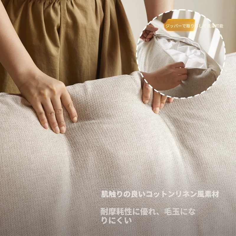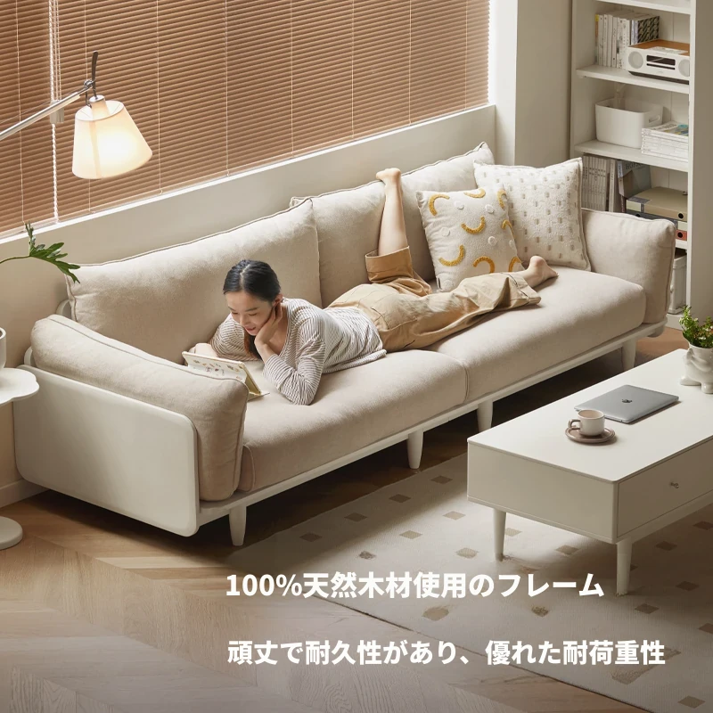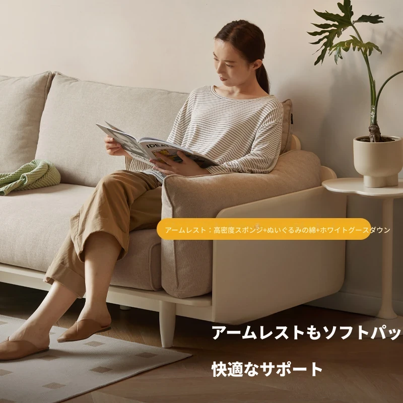 【魅力新品】源氏木语xウィサ全無垢材ソファー - クリーム風ホワイトファブリック♪ モダンな4人掛けの直線配置で、上品で快適な空間を演出!