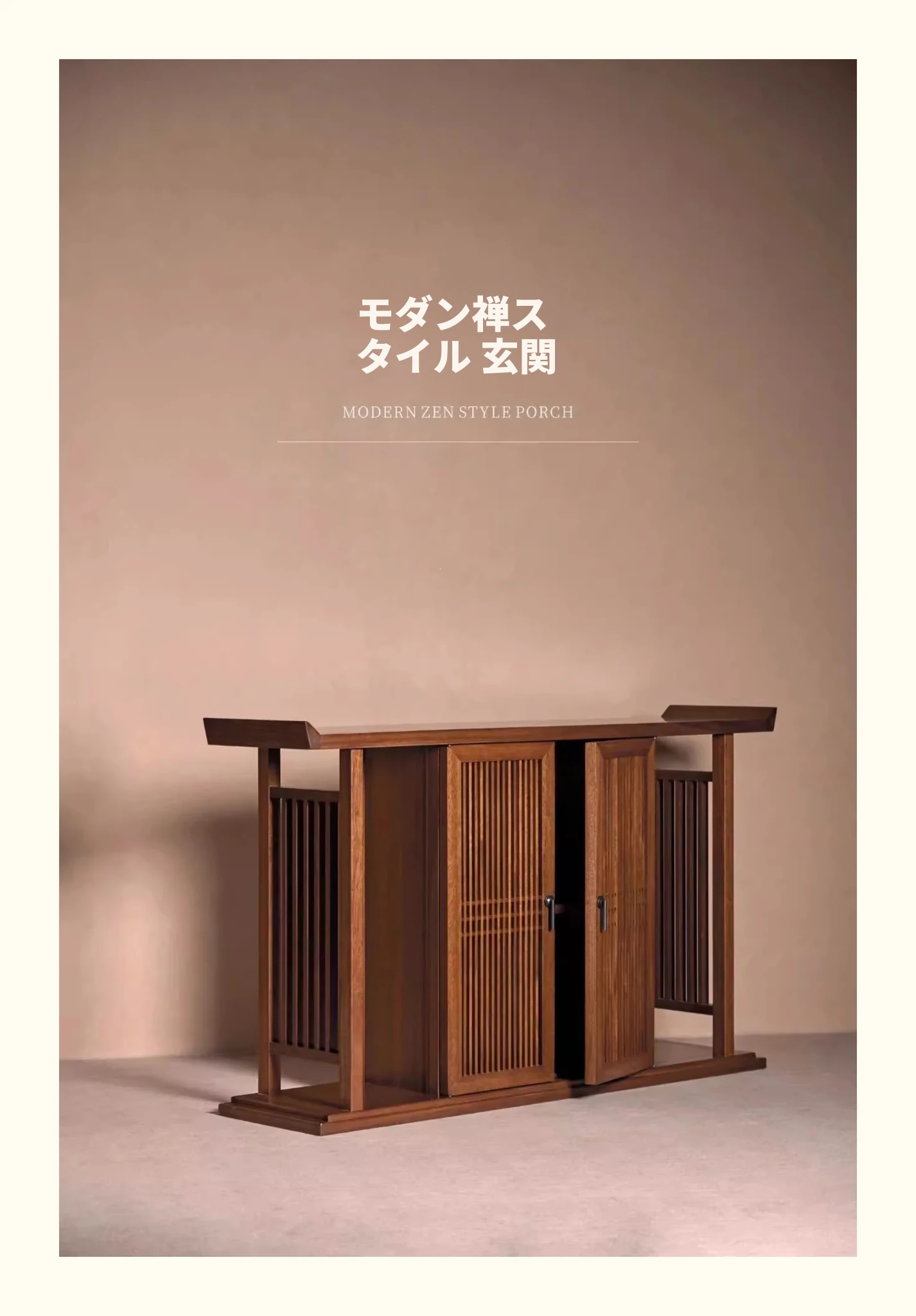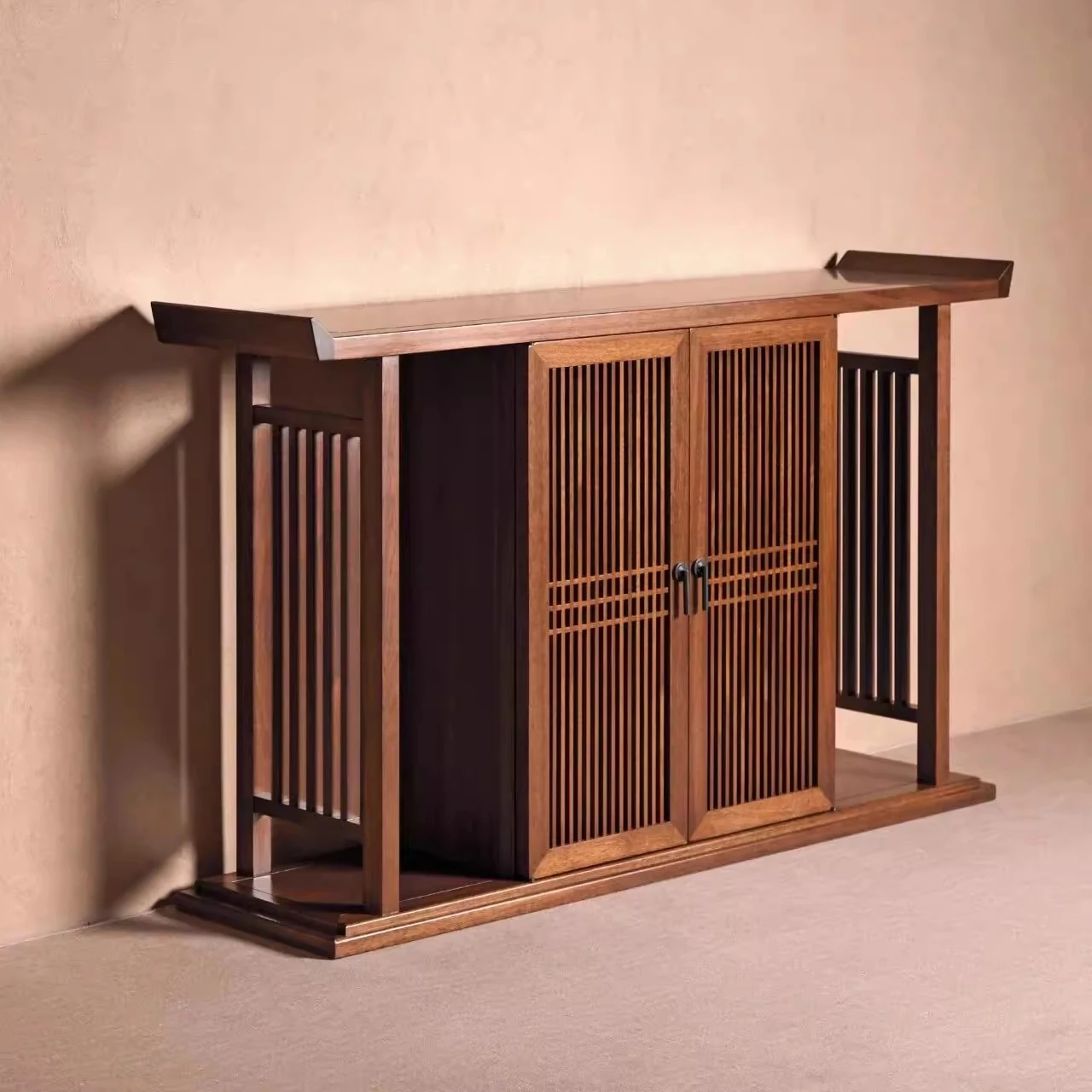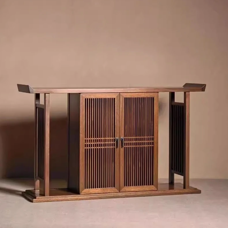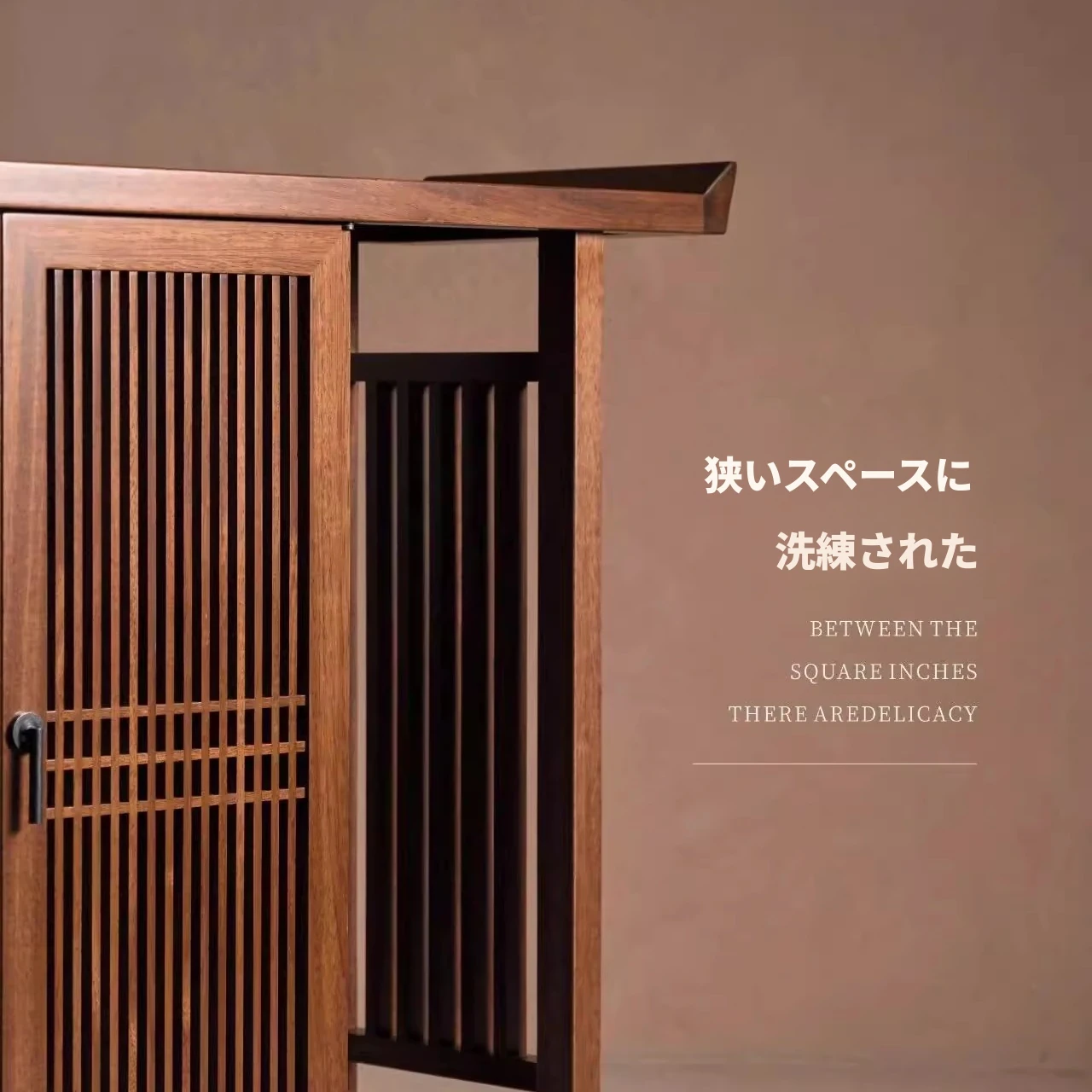 新中式デザインの無垢材ダイニングサイドキャビネット、ウォールナットの玄関キャビネット。禅の精神を感じる壁寄せ収納キャビネット。モダンでシンプルなリビング空間にぴったりの収納ソリューション!