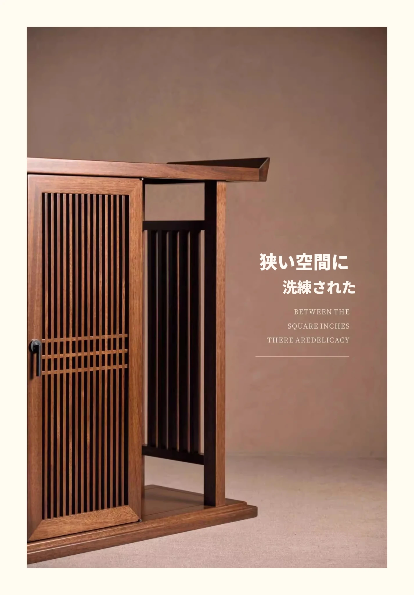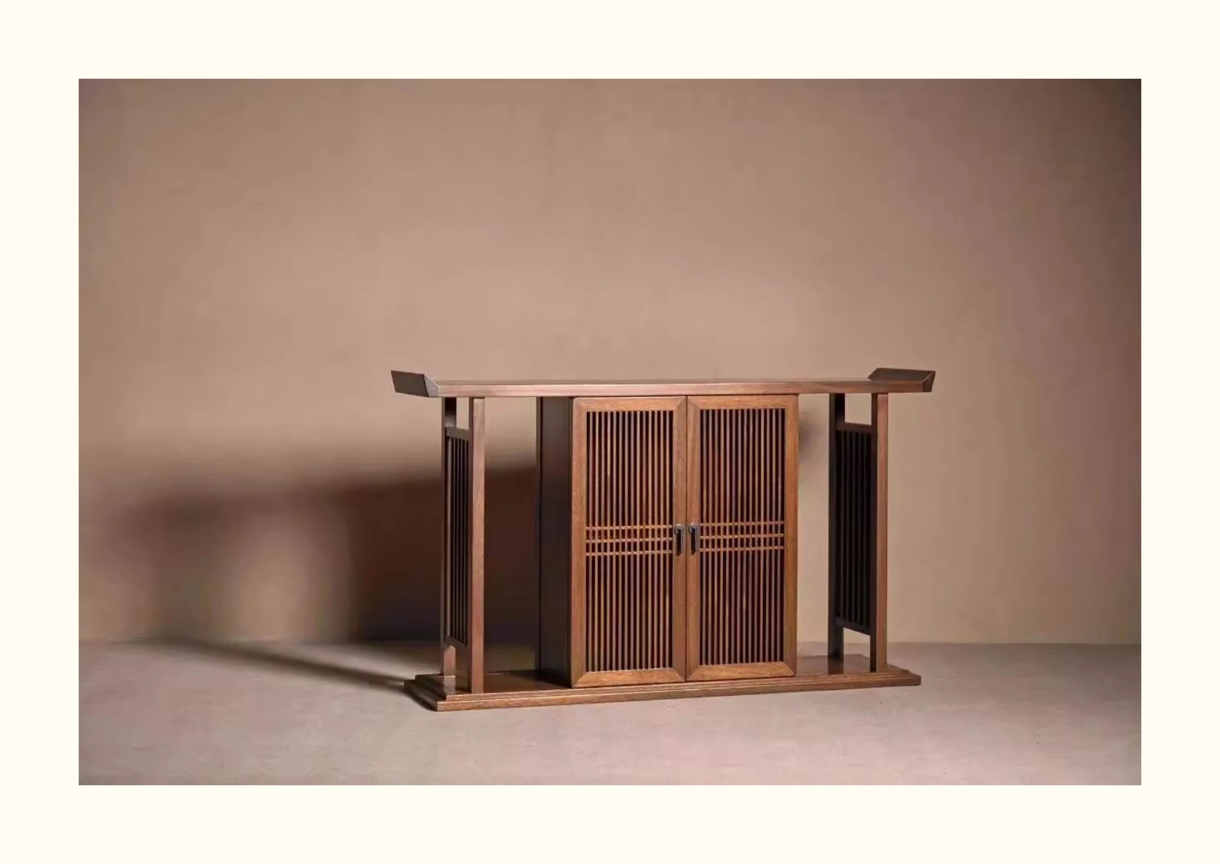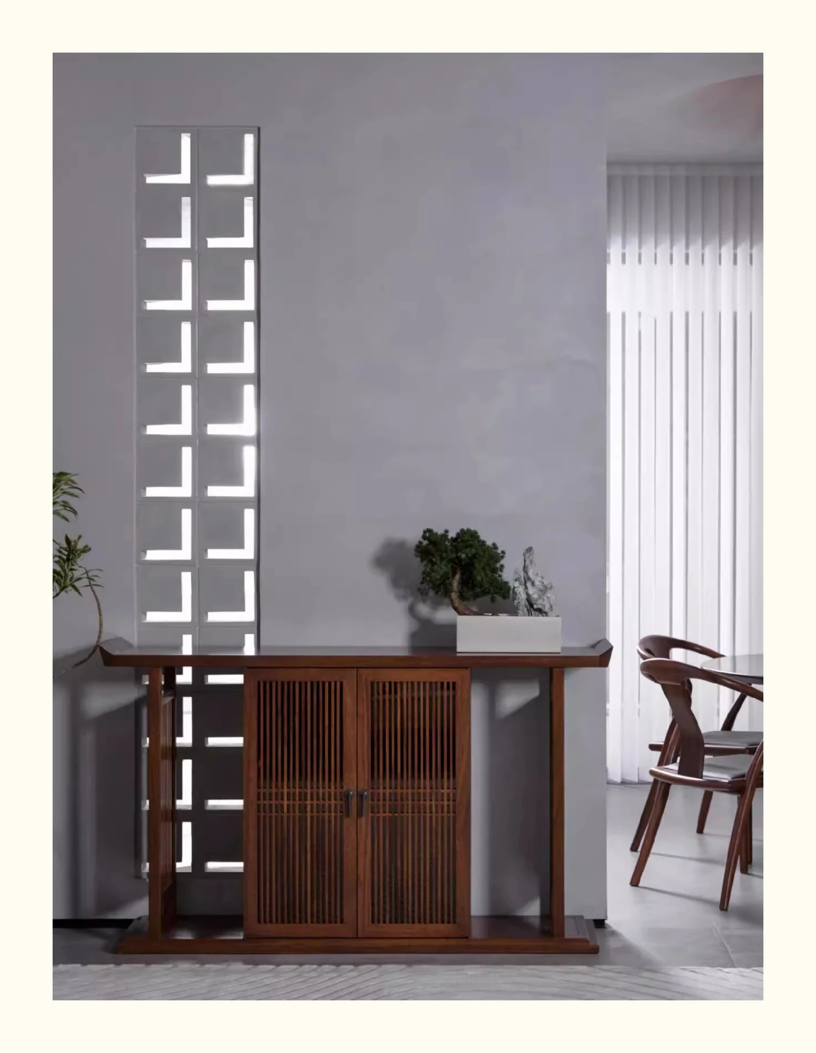 新中式デザインの無垢材ダイニングサイドキャビネット、ウォールナットの玄関キャビネット。禅の精神を感じる壁寄せ収納キャビネット。モダンでシンプルなリビング空間にぴったりの収納ソリューション!