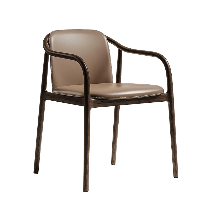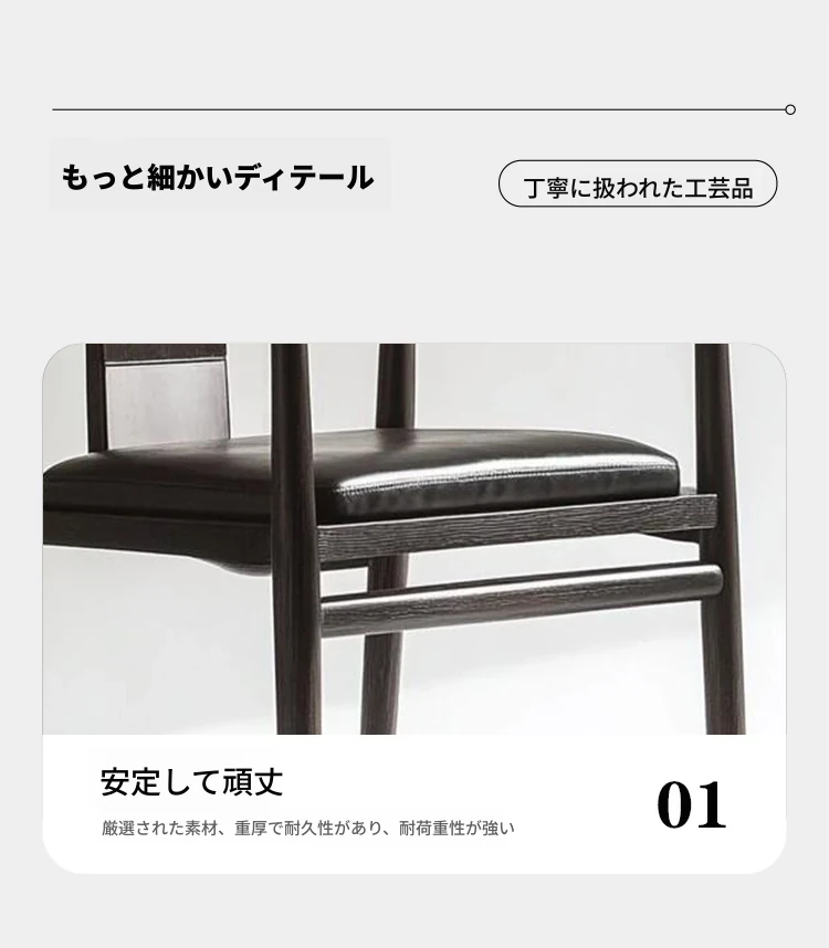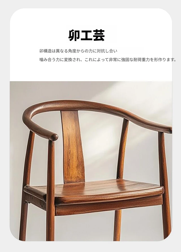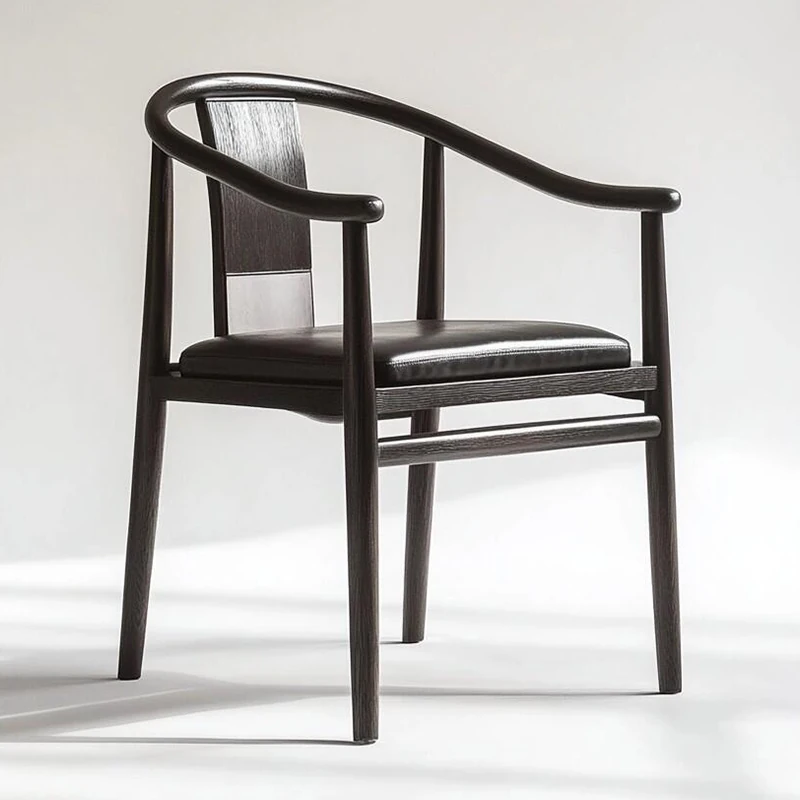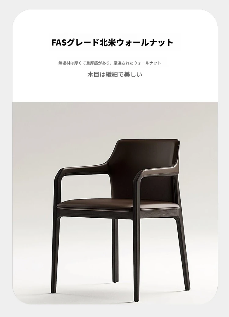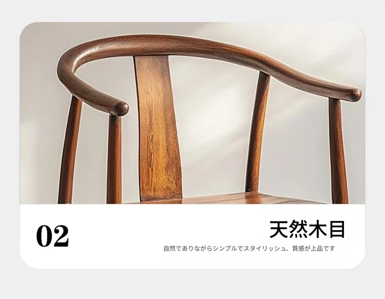 新中式ブラックウォールナット製の背もたれ椅子、モダンでシンプルなデザインの無垢材ダイニングチェア。軽やかなラグジュアリー感を演出し、上質な時間を提供する高級感あふれるティーチェア。