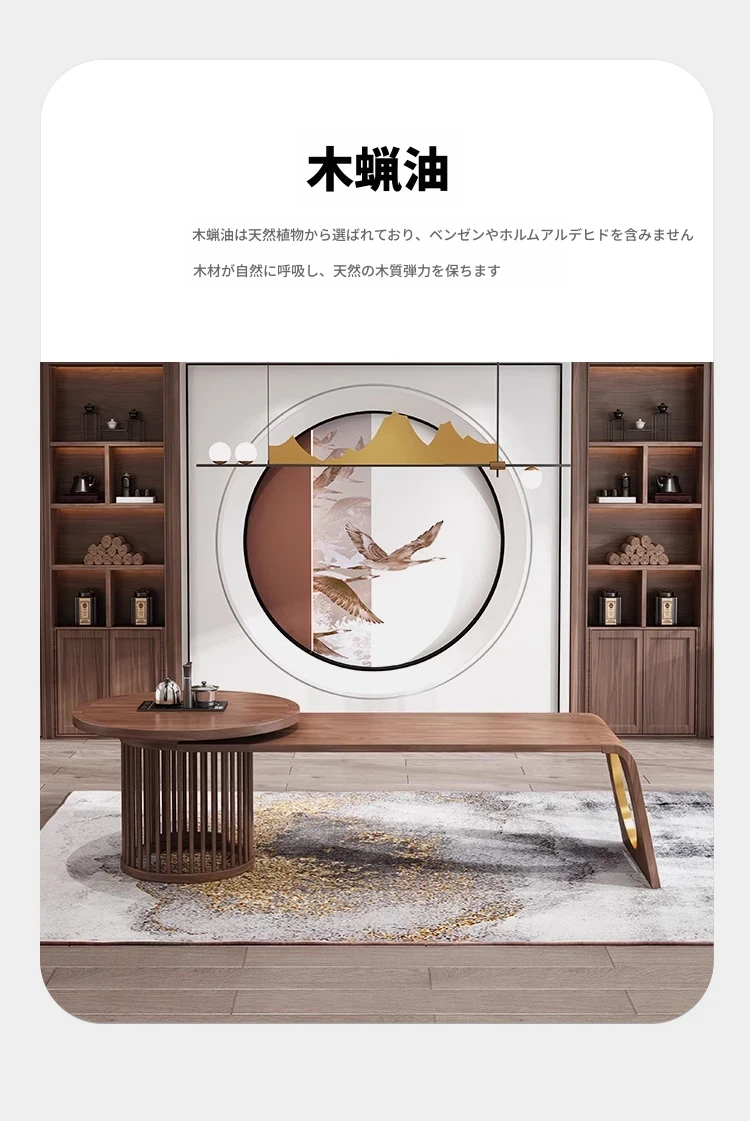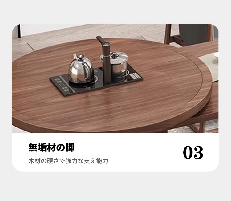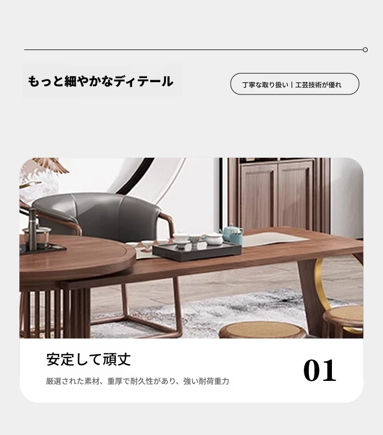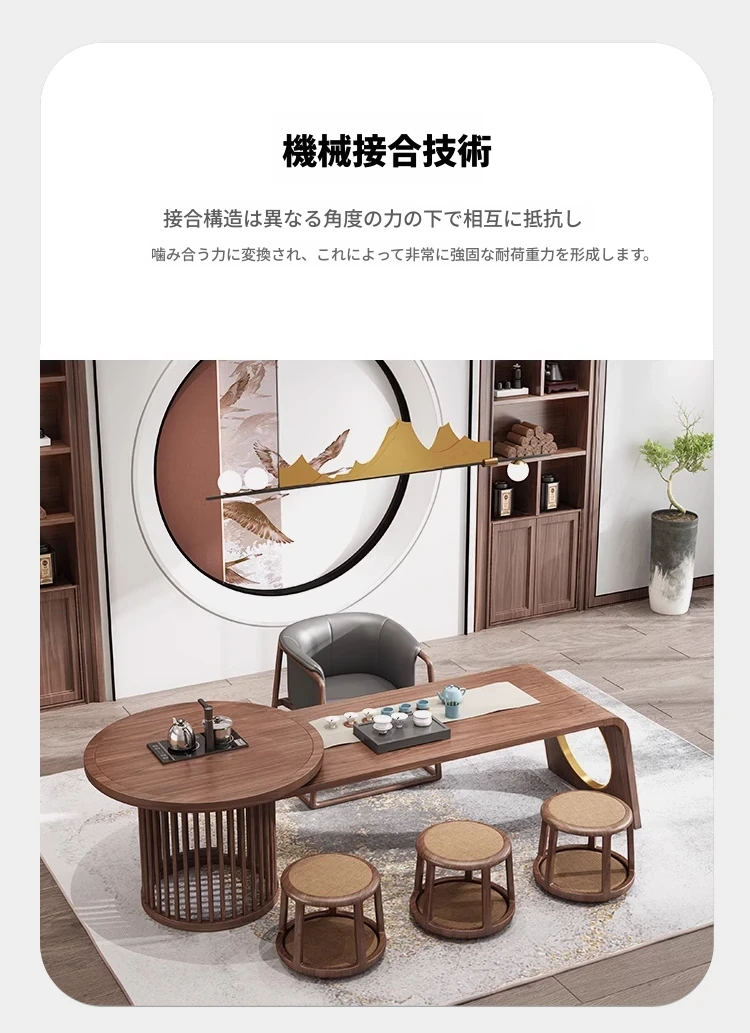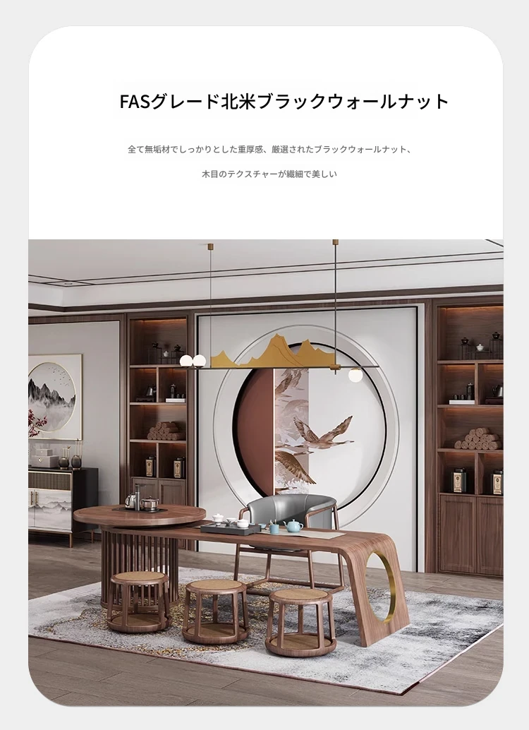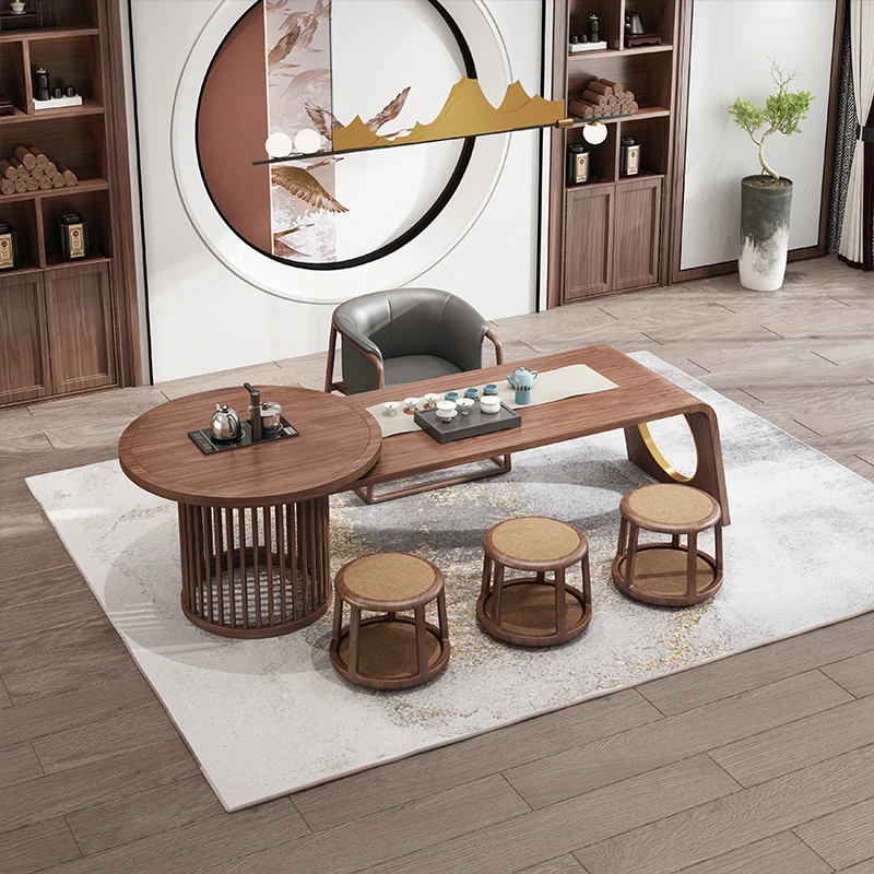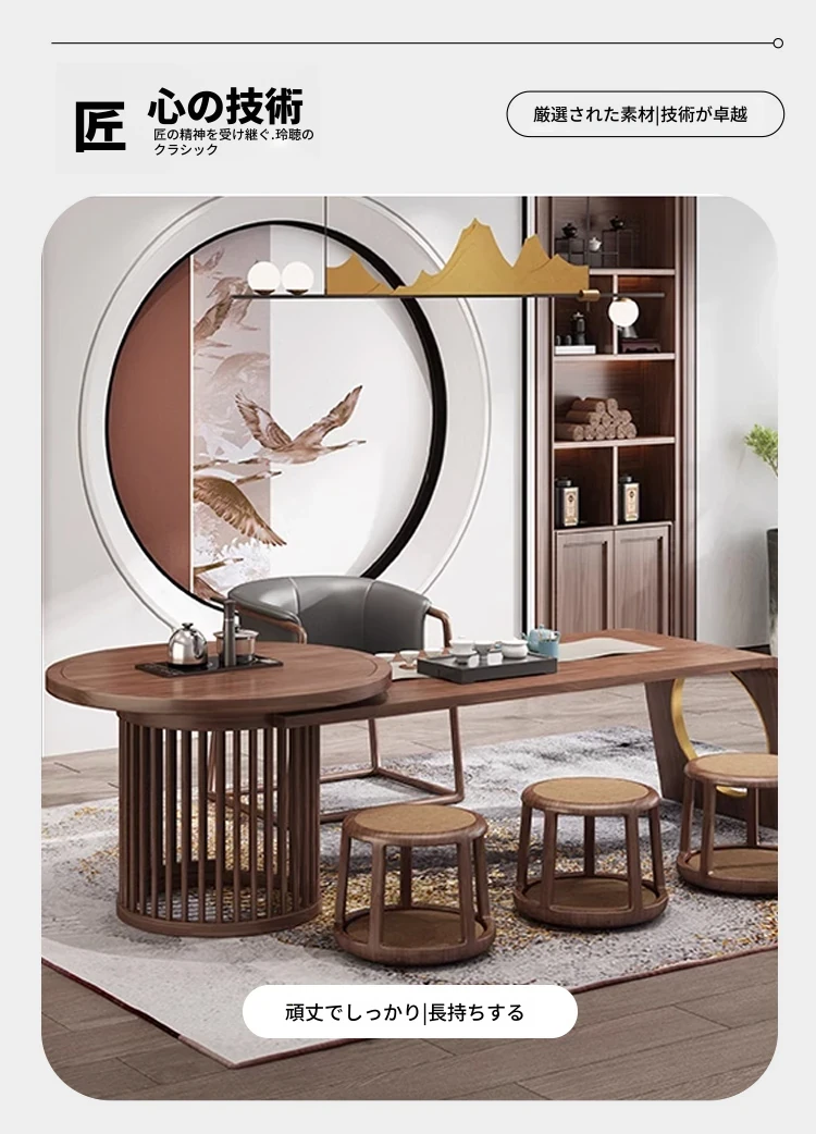 新中式デザイン!高級ブラックウォールナット製 茶テーブル&チェアセット - シンプルでモダンなオフィス用功夫茶台、心地よいティータイムを演出!