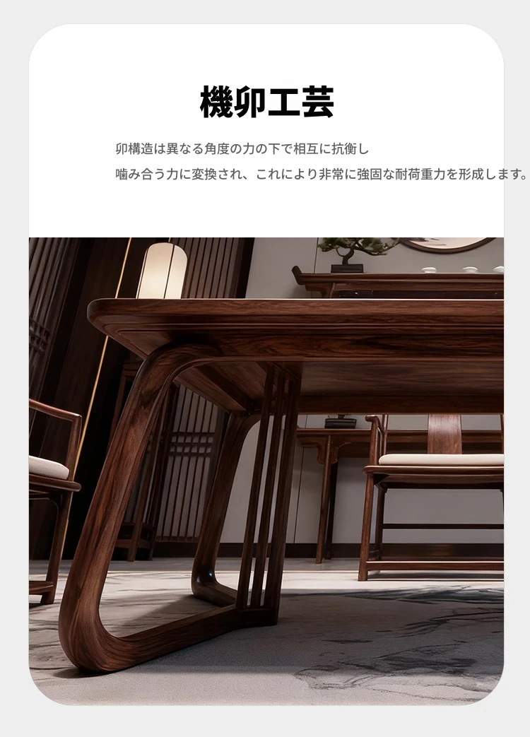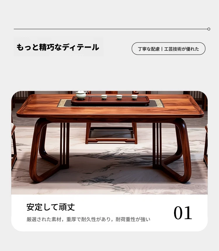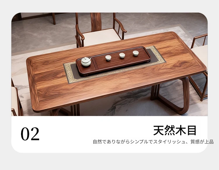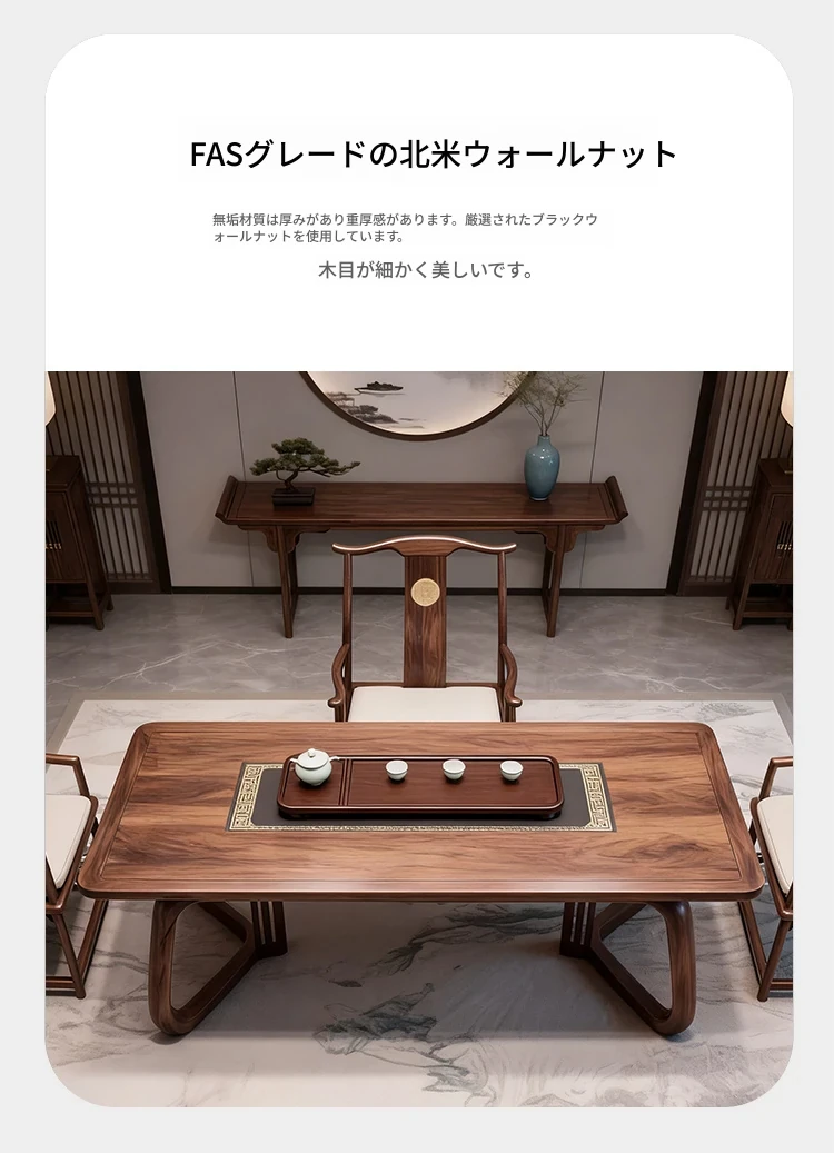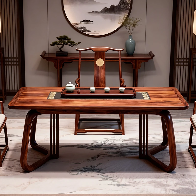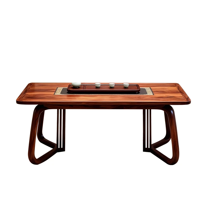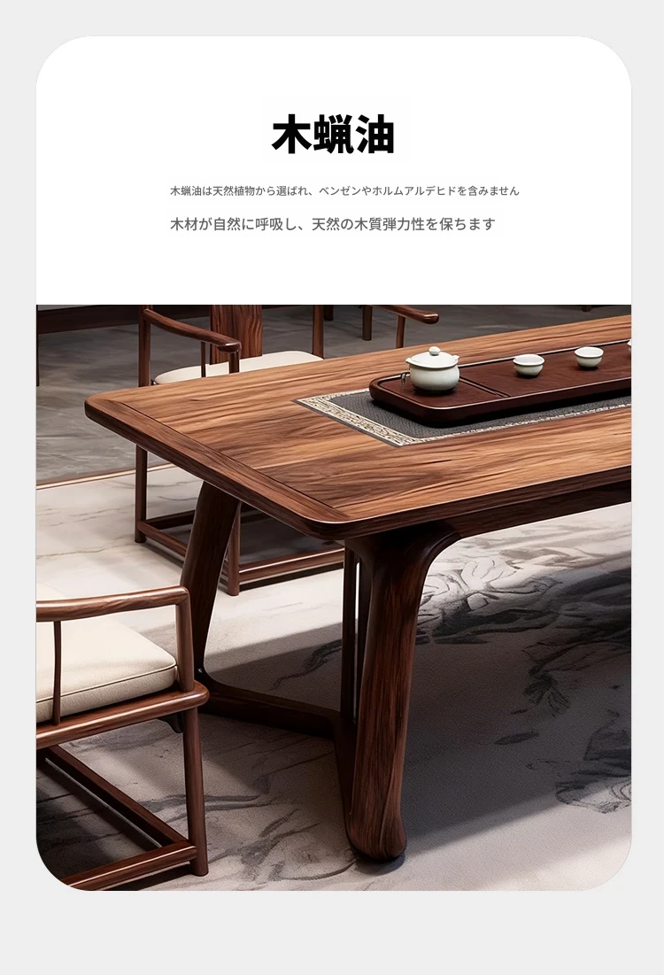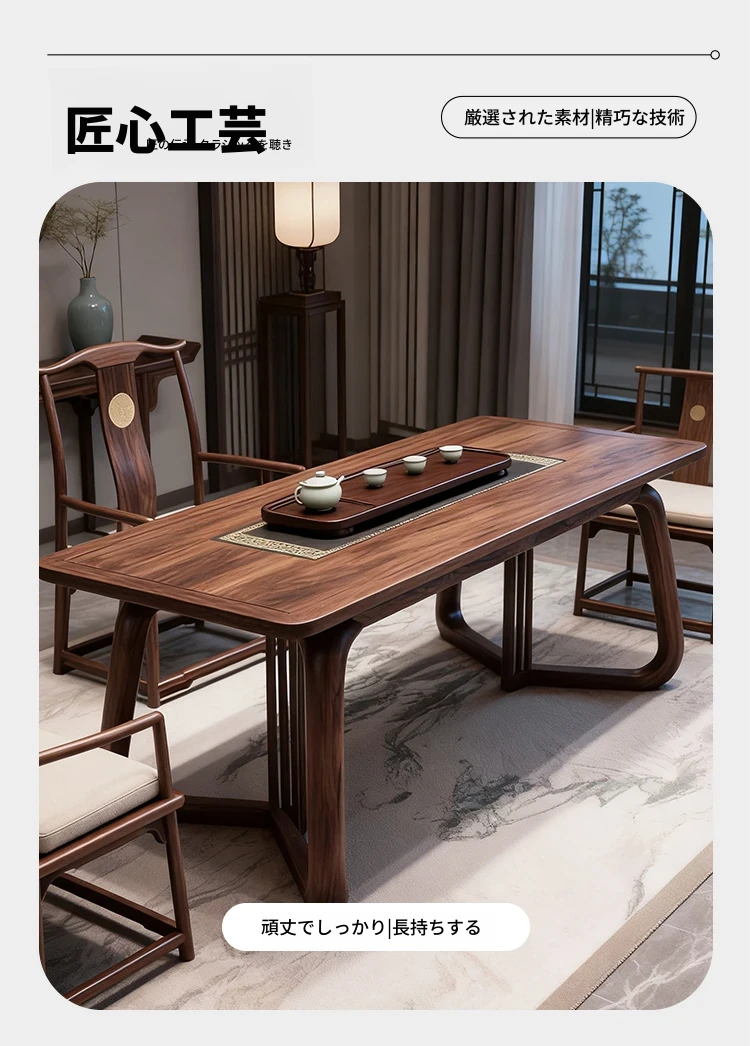 新中式デザインのブラックウォールナット製の茶卓 - モダンでシンプルな実木製、禅の雰囲気を醸し出す高級茶室用ティーテーブル。リラックスしたひとときをお届けします!