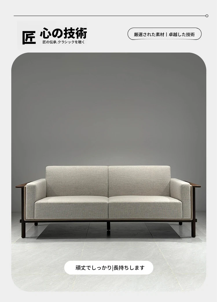 新中式スタイルの布製ソファー、3人掛け直列デザイン!別荘や家庭のリビング、会所、販売部門に最適なリラックスソファ!優雅なデザインで、あなたの空間を格上げします。