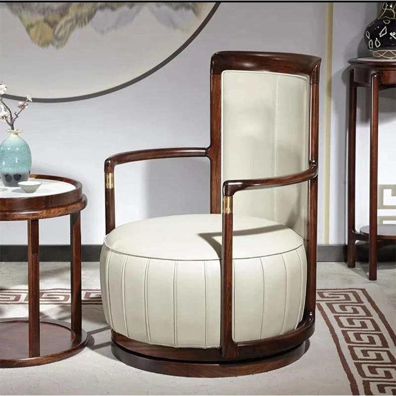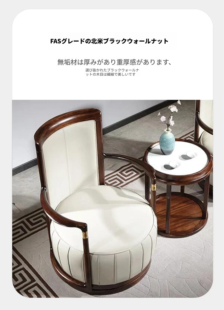 新中式スタイルの一人用ソファ椅子|無垢材使用|美容院や商談に最適|ウォールナット製|バルコニーやリビングにぴったりなリラックスチェア!