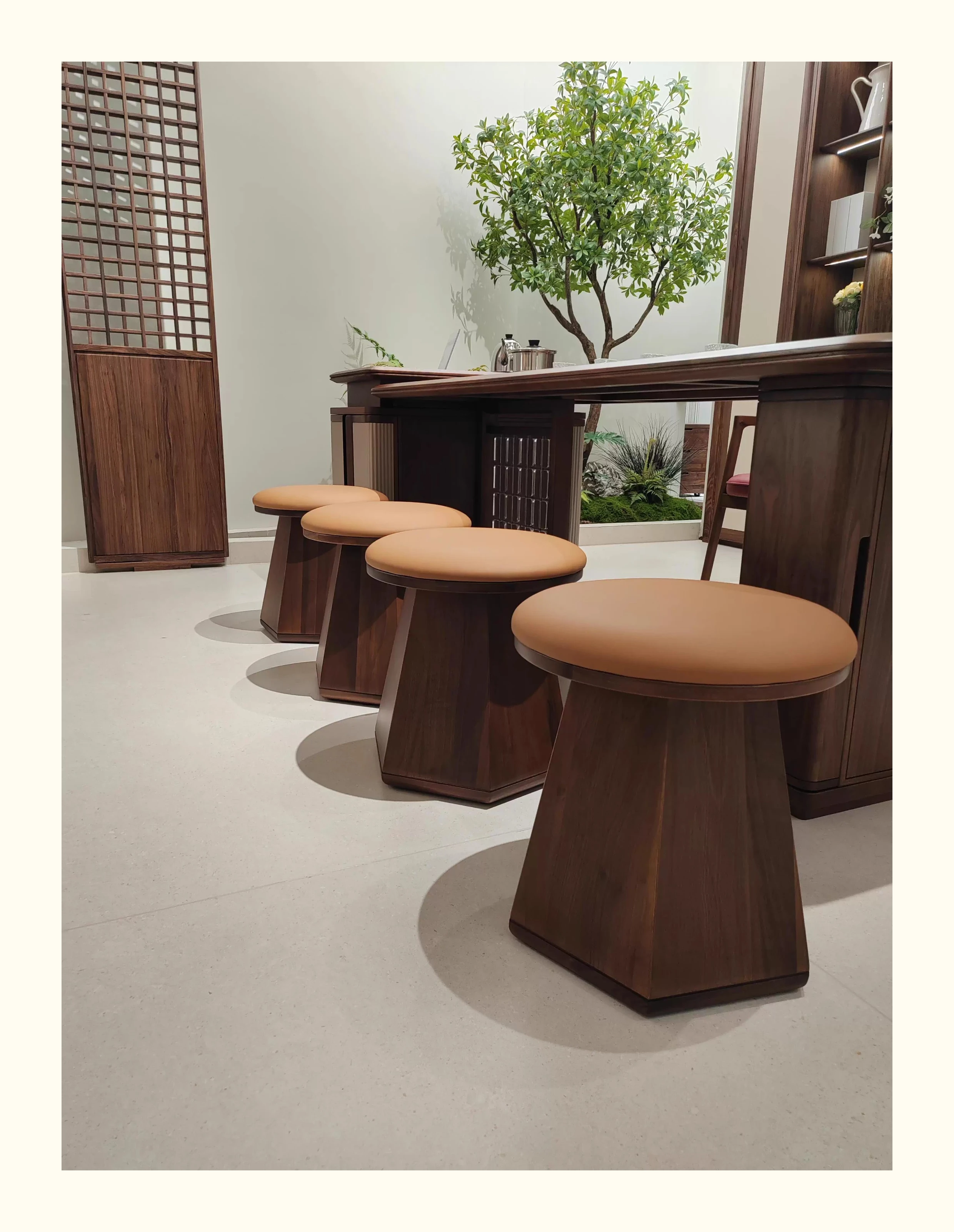 新中式の無垢材スツール 2025年新作!モダンでシンプルなデザインの家庭用リビング靴脱ぎスツール。ウォールナットのラウンドスツールで、スタイリッシュにお部屋を演出。