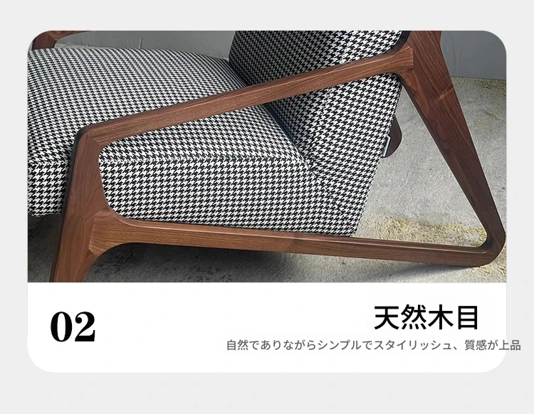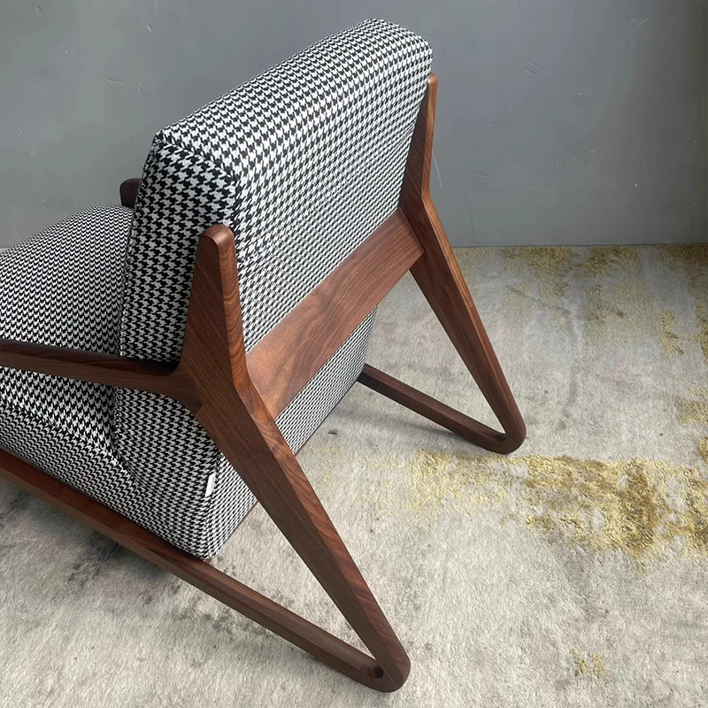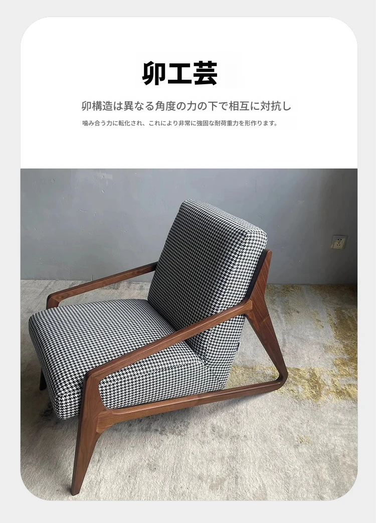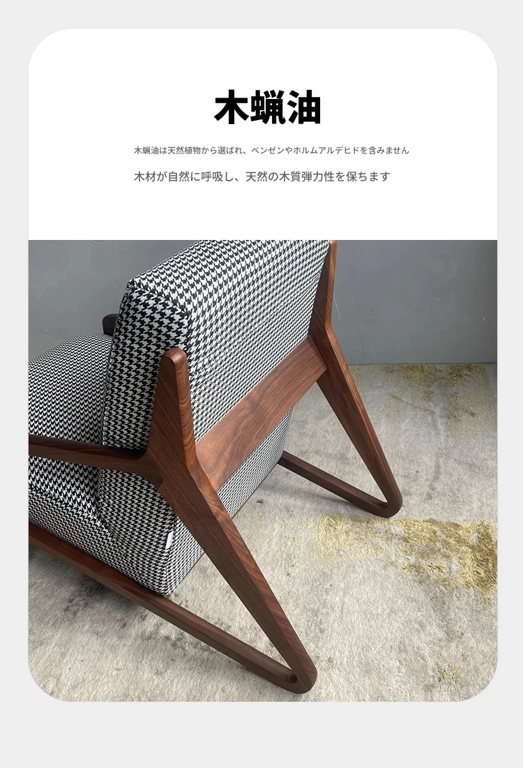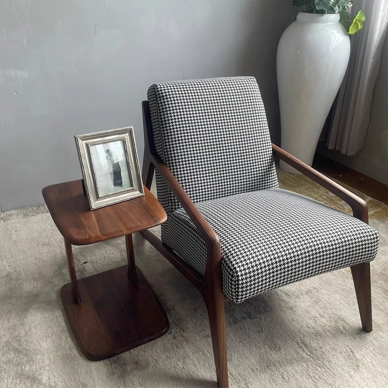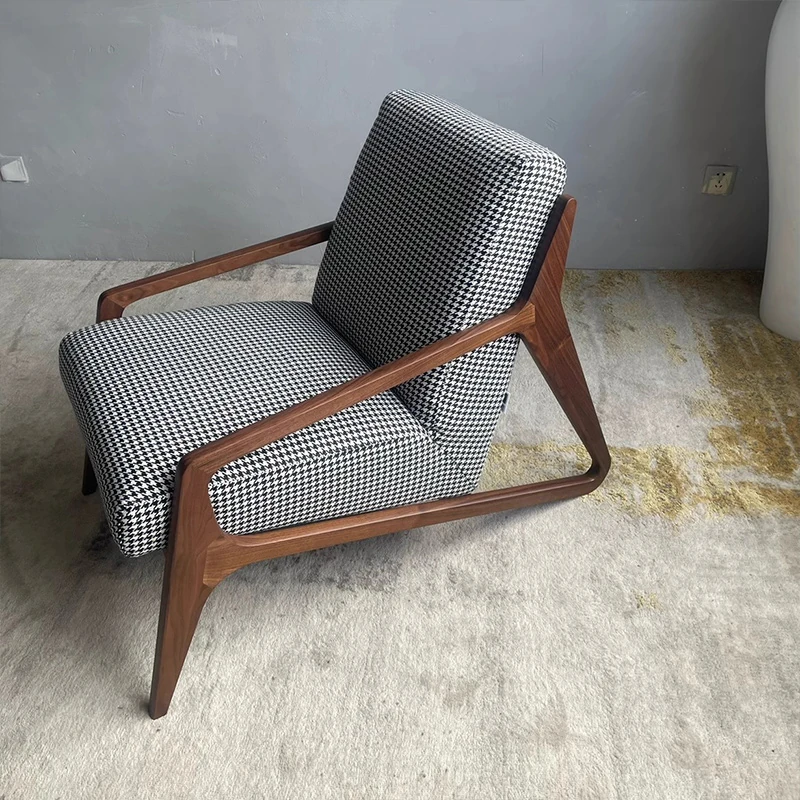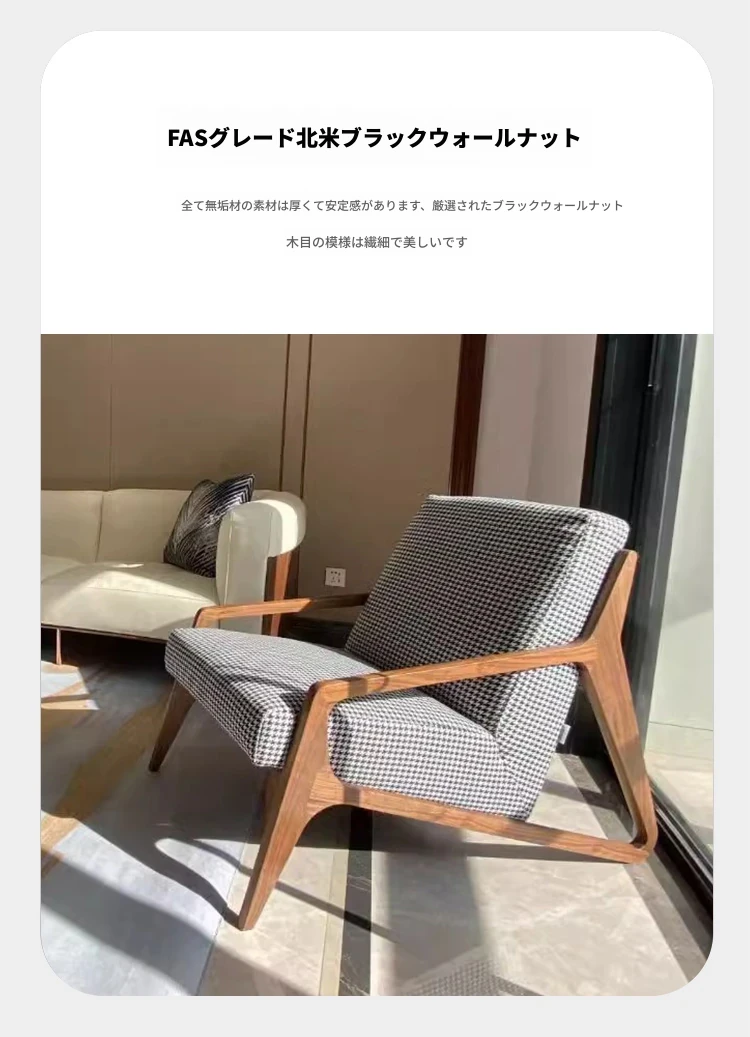新中式デザインのウォールナット製シンプルな一人掛けソファチェア - バルコニーやビジネス接待に最適なリラックスチェア、布張りの洽談椅子。洗練されたスタイルで居心地の良さを提供します。