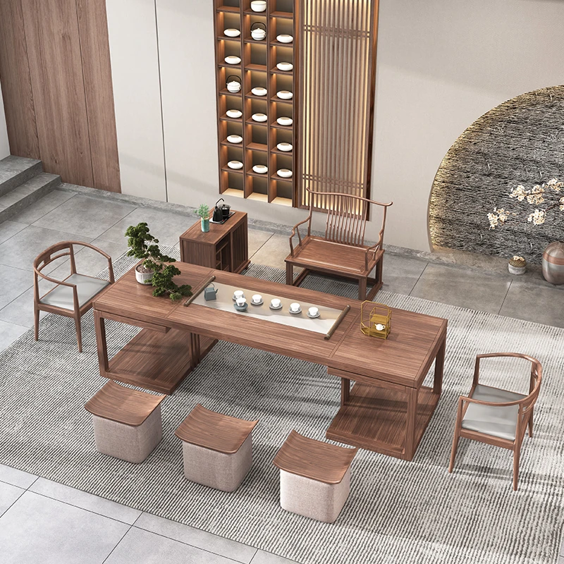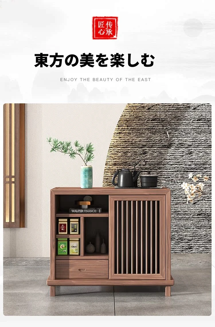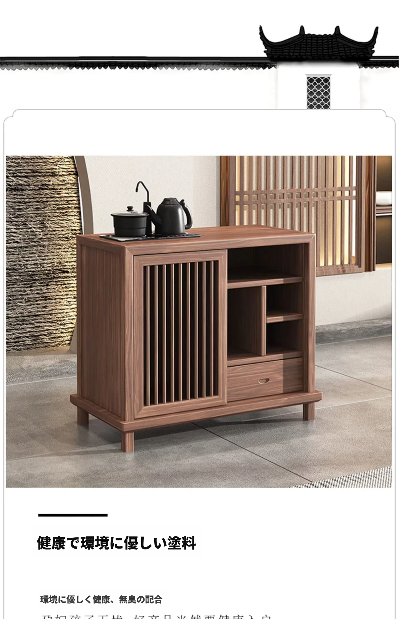 新中式茶水柜|現代的シンプルなデザイン|壁に寄せて使える実木製|自動湯沸かし機能付き|リビングにぴったりな収納ラック!