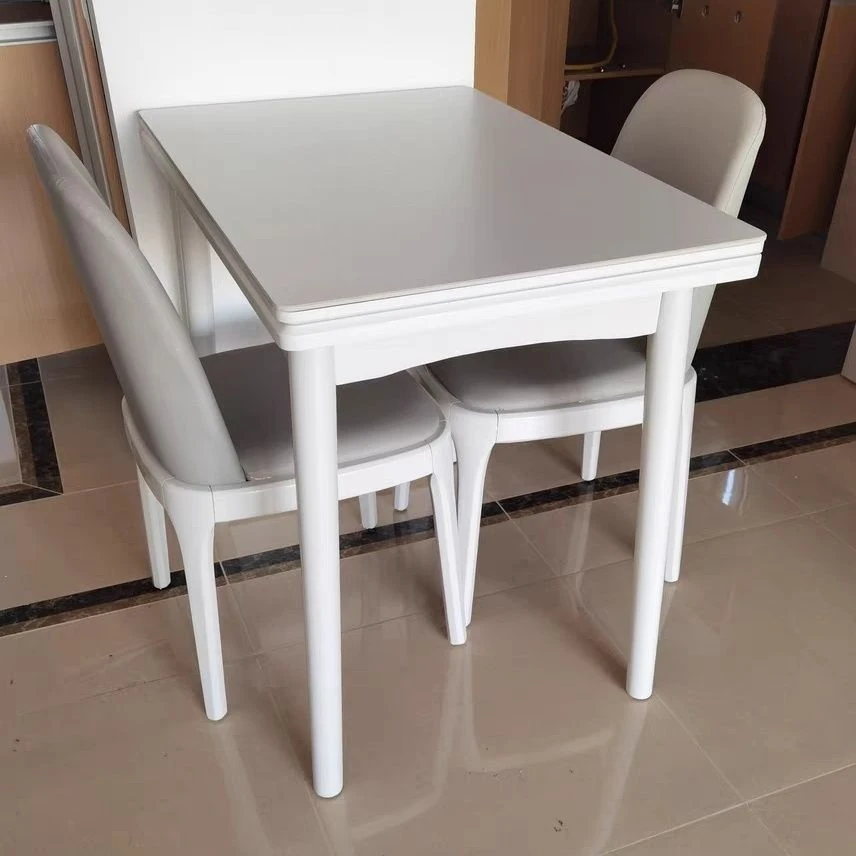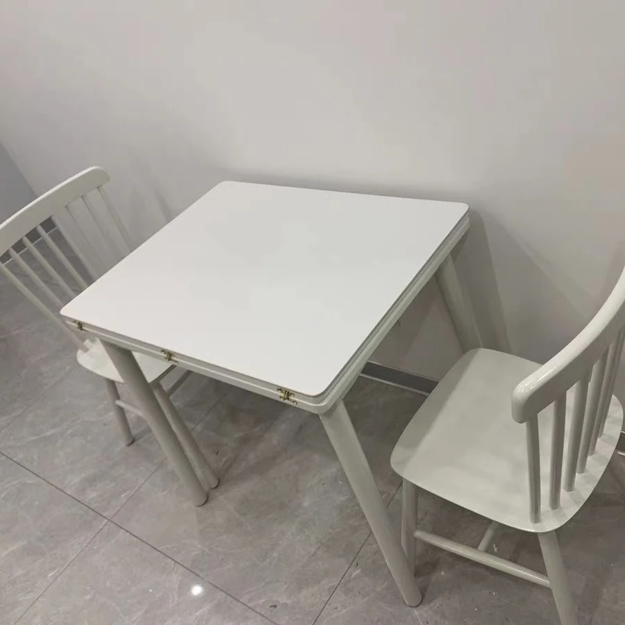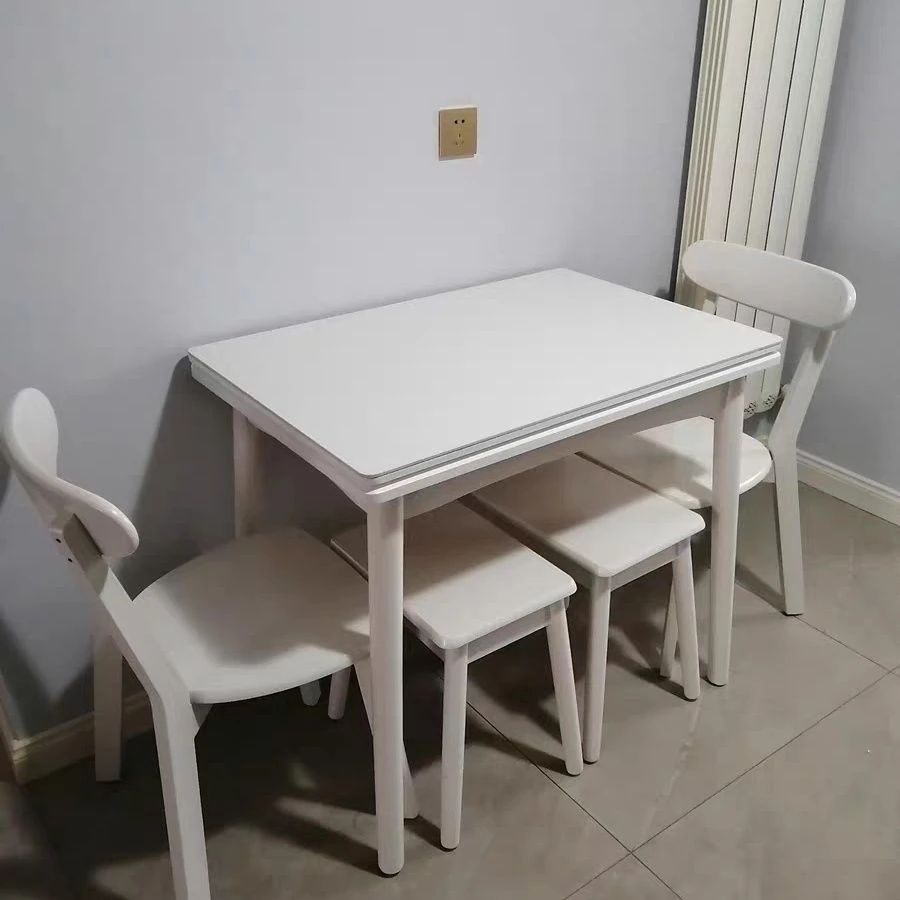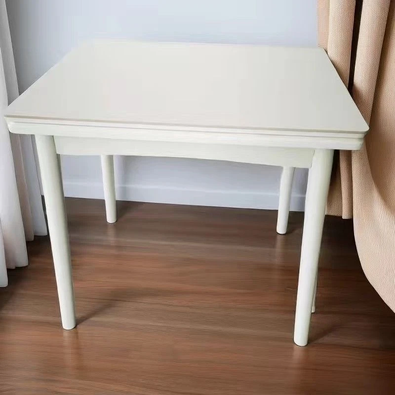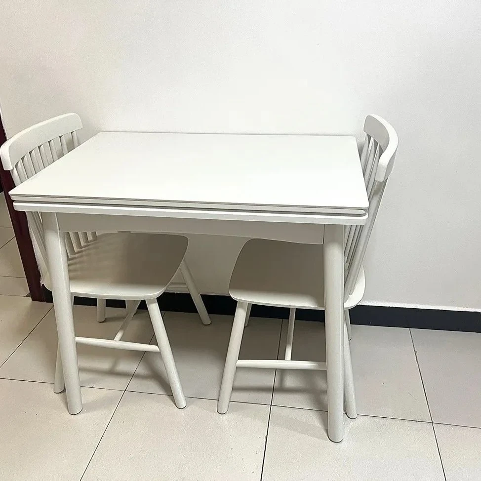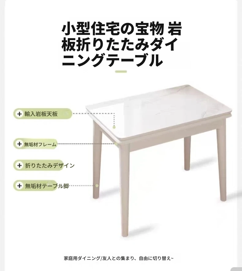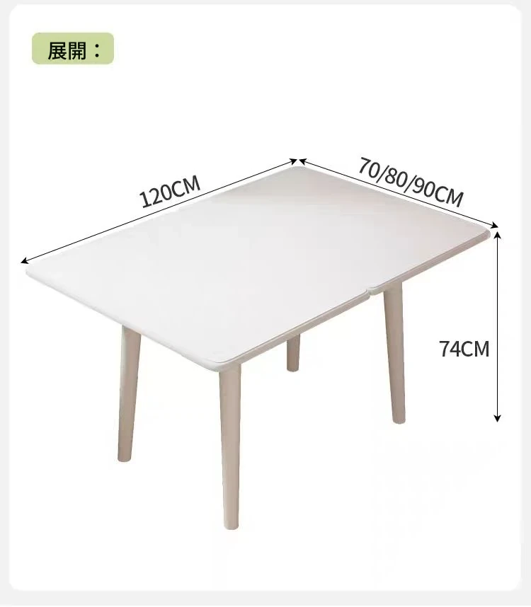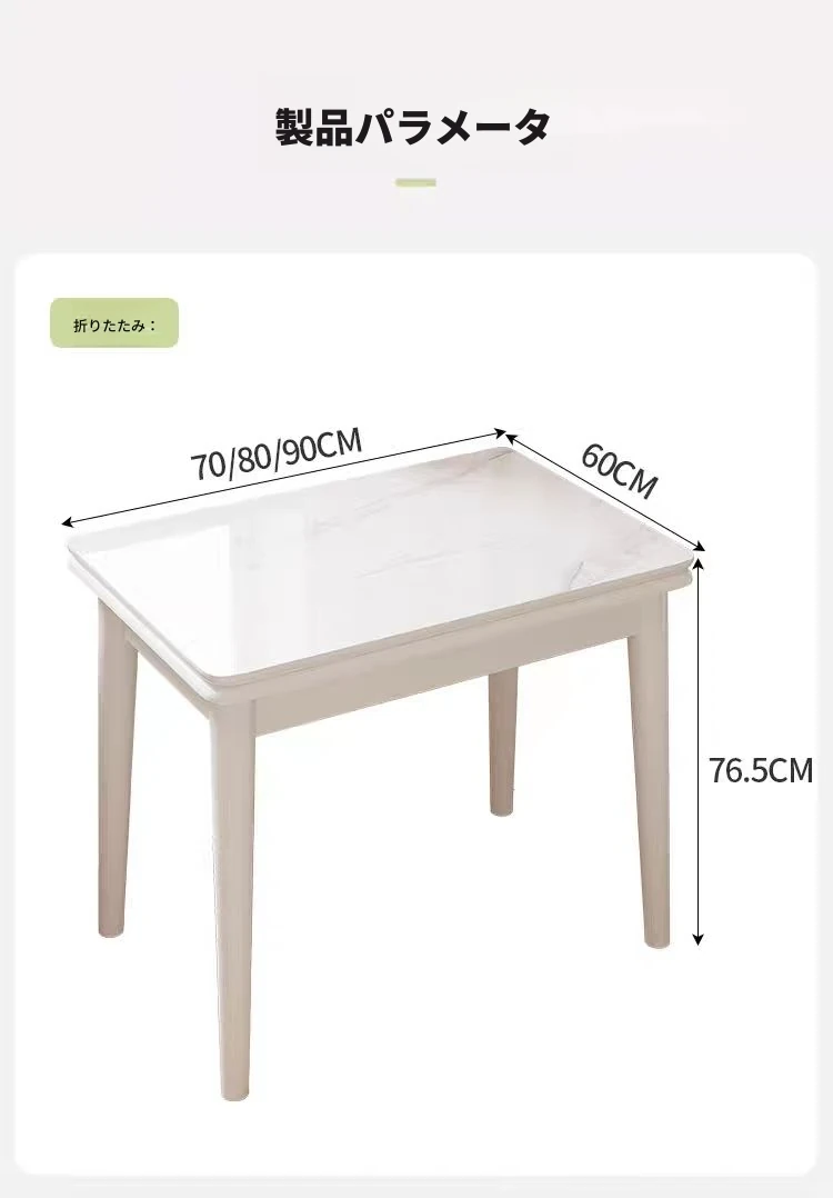 クリーム風の折りたたみダイニングテーブル|小さいお部屋にぴったりな伸縮式テーブル&椅子セット|モダンでシンプルなデザインの天然木製テーブル