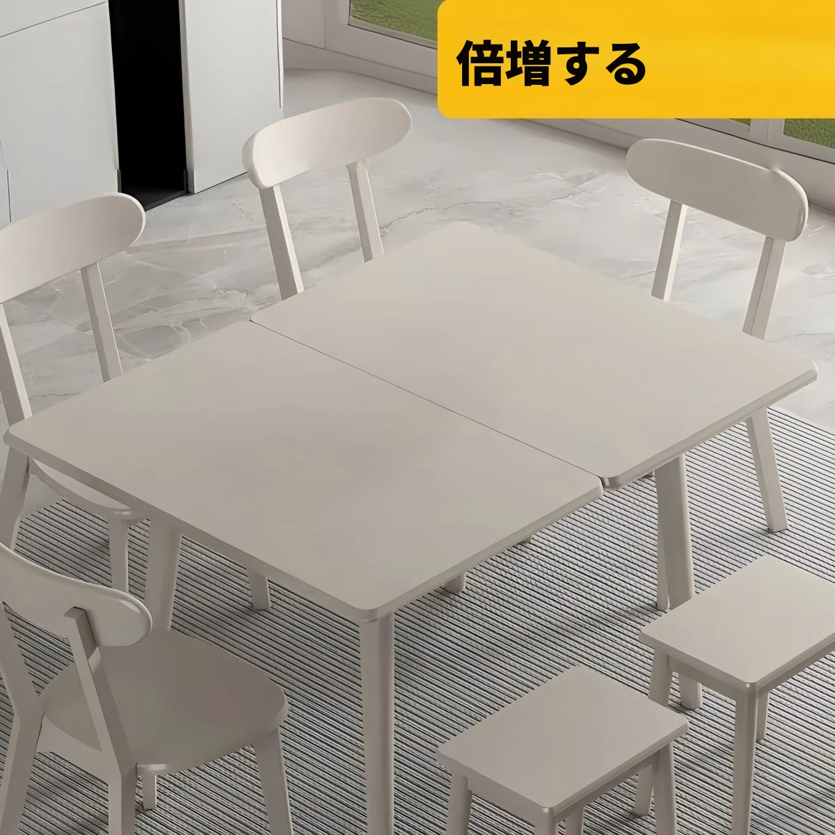 クリーム風【一卓二椅子二スツール】ルイーズ/60*90展開120*90