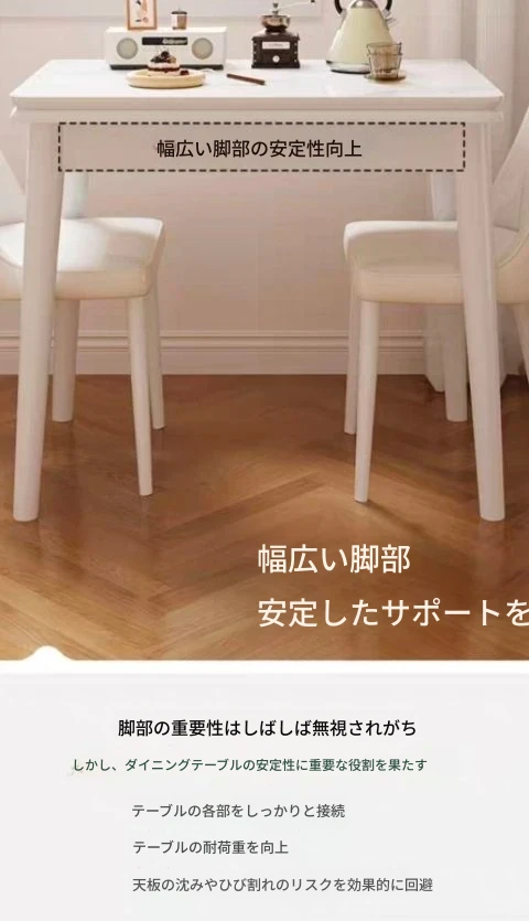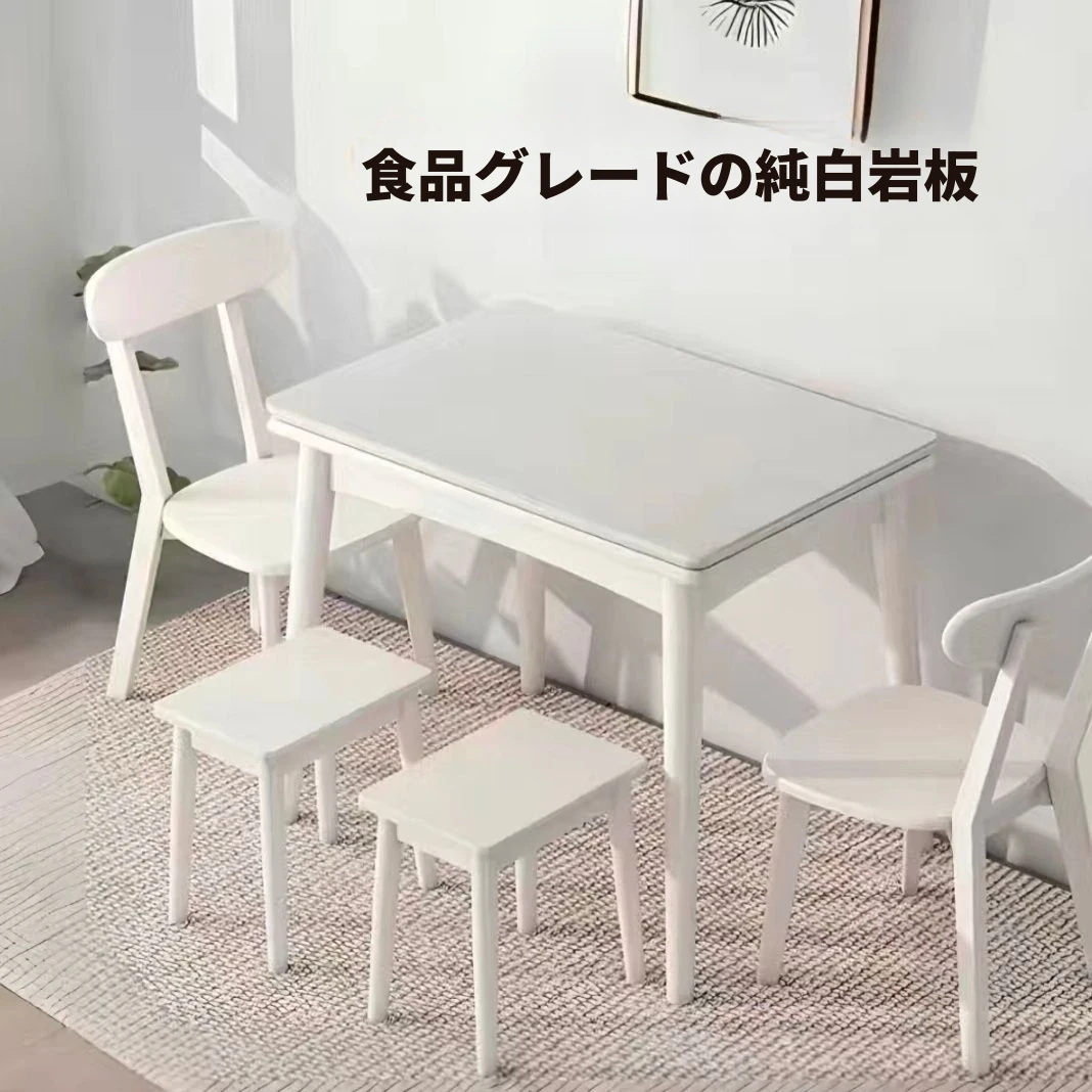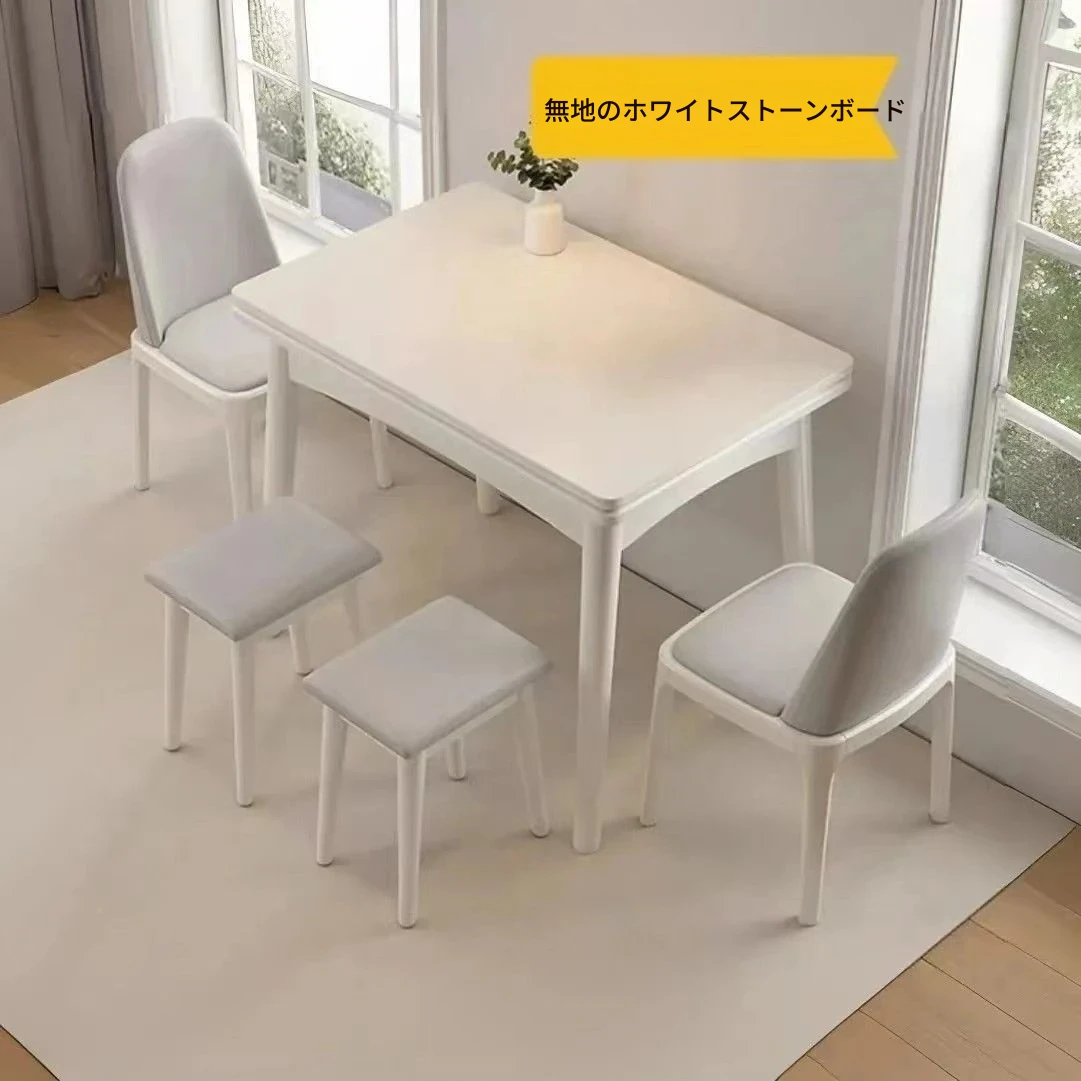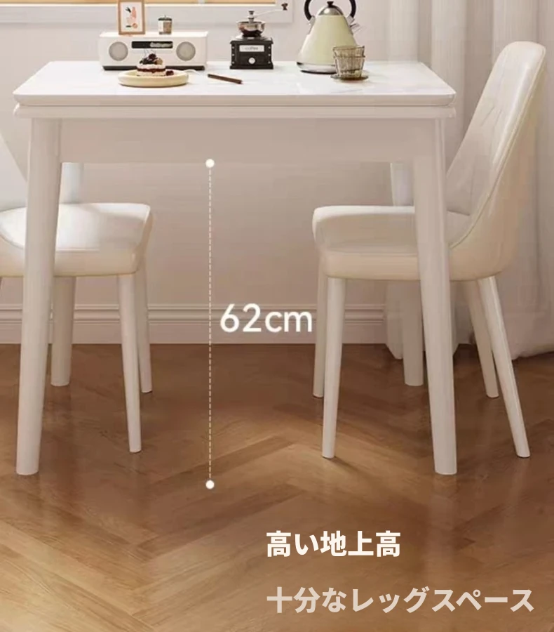 クリーム風【一卓四椅子】無垢材ソフトパッキング/60*80展開120*80