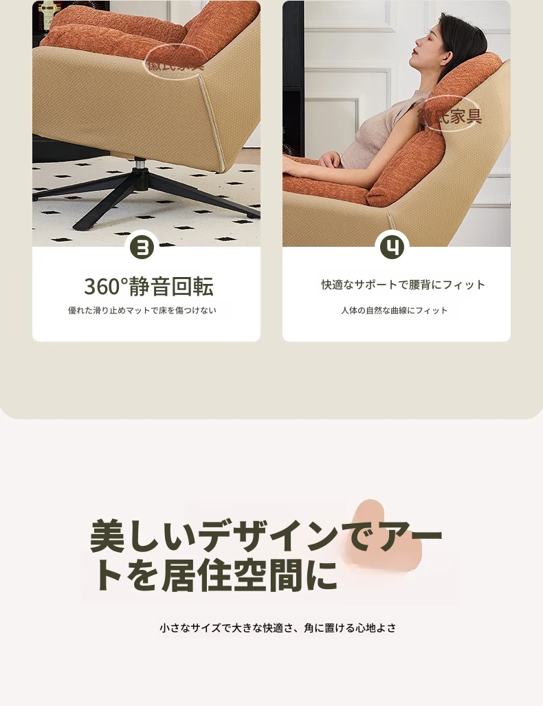 軽奢スタイルのモダン回転椅子 | リビング・寝室・ホテルに最適なシングルチェア | リラックスできるバルコニー用のレイジーチェア | 快適さとスタイルを兼ね備えた一脚!