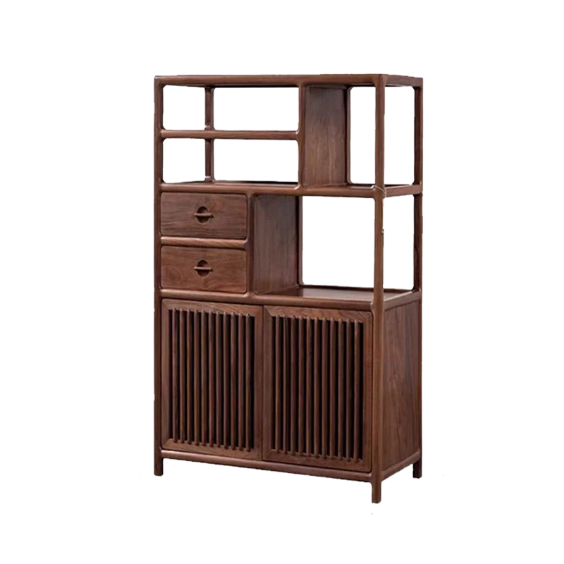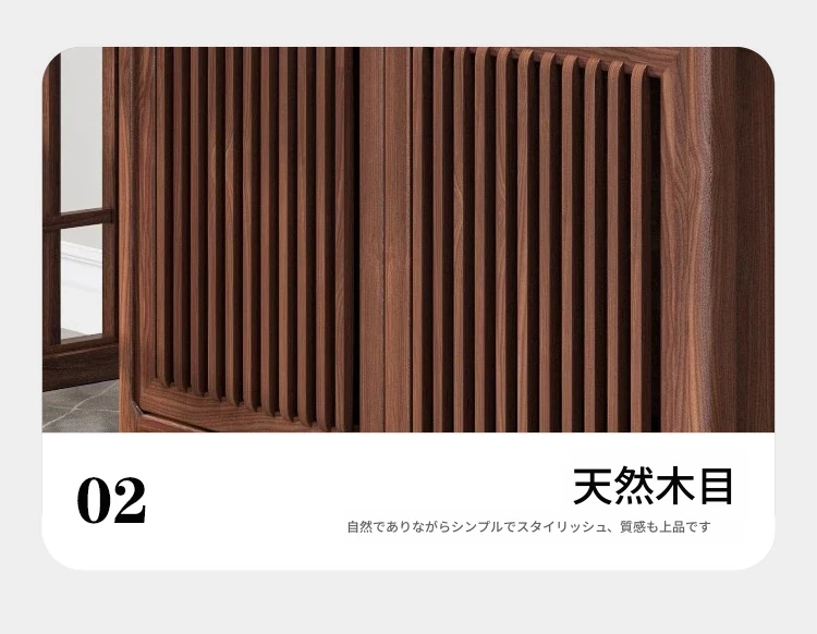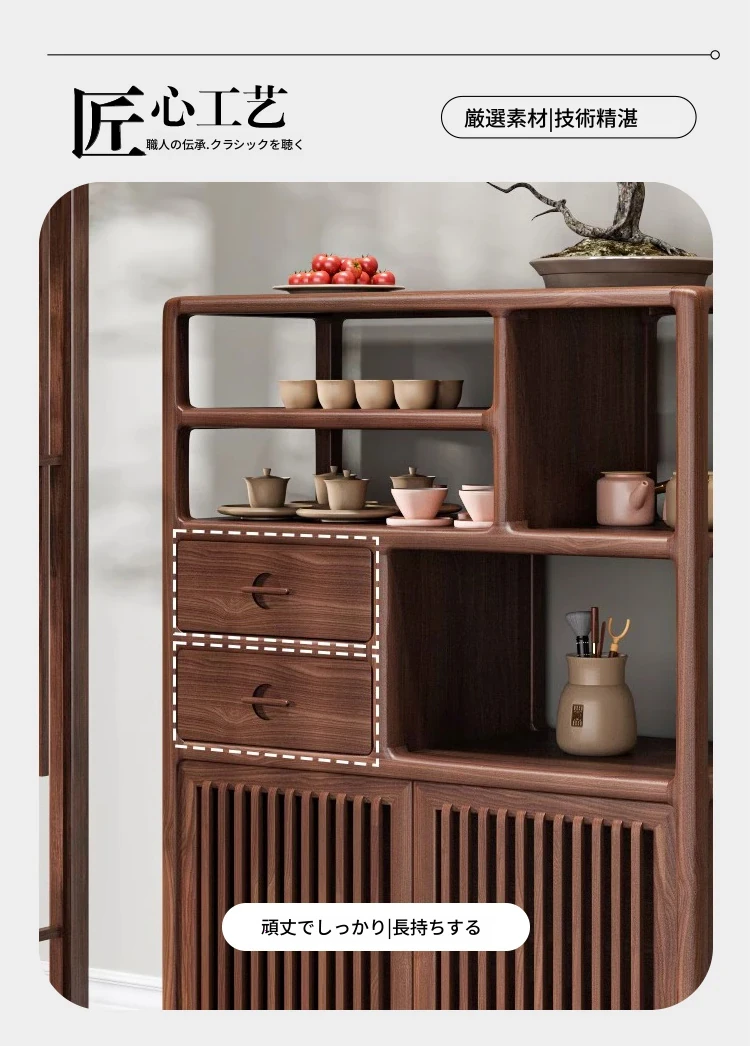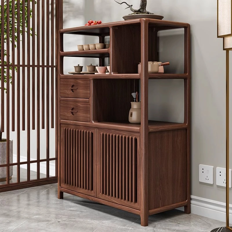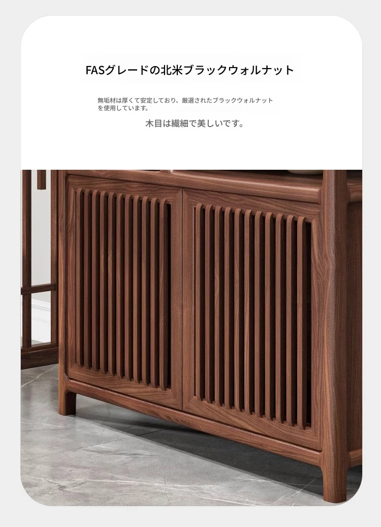 モダンで高級感溢れる入門玄関キャビネット - 本格的なウォールナット材を使用した収納力抜群の食器棚!新しい中式デザインで、あなたのインテリアを引き立てます。