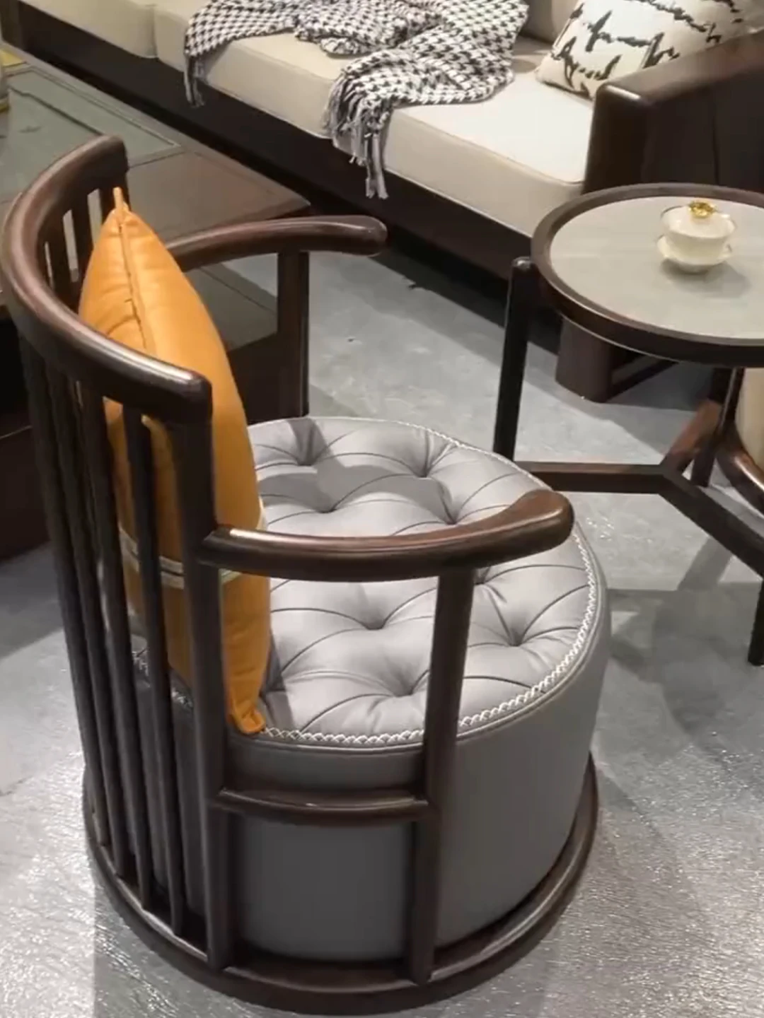 新中式ウッディウッドソファチェア|モダンでシンプルな一人掛け椅子|軽やかなラグジュアリー|書斎や商談に最適な無垢材のリラックスチェア|客室にもぴったり