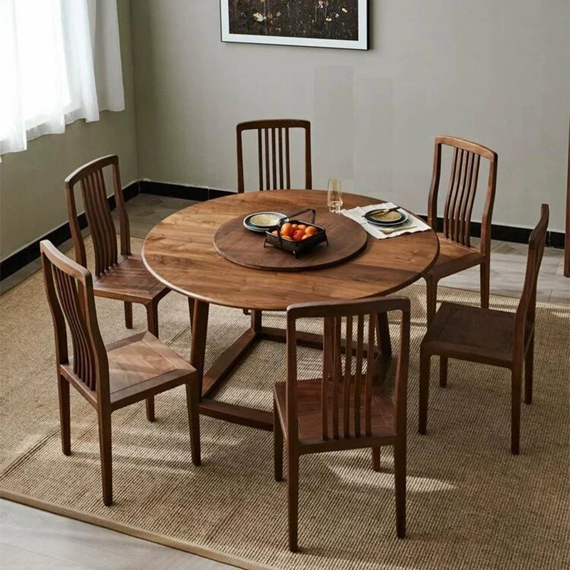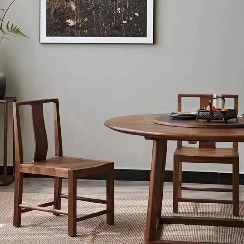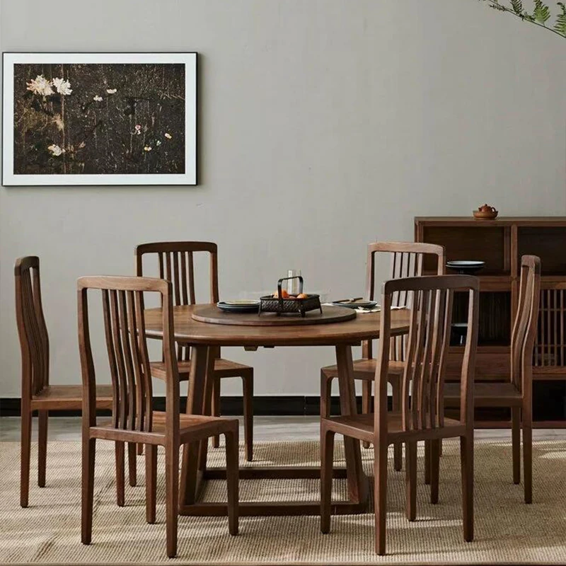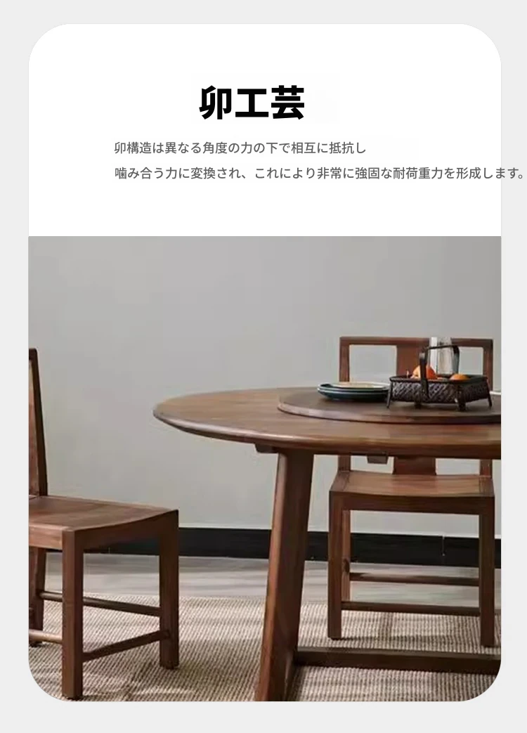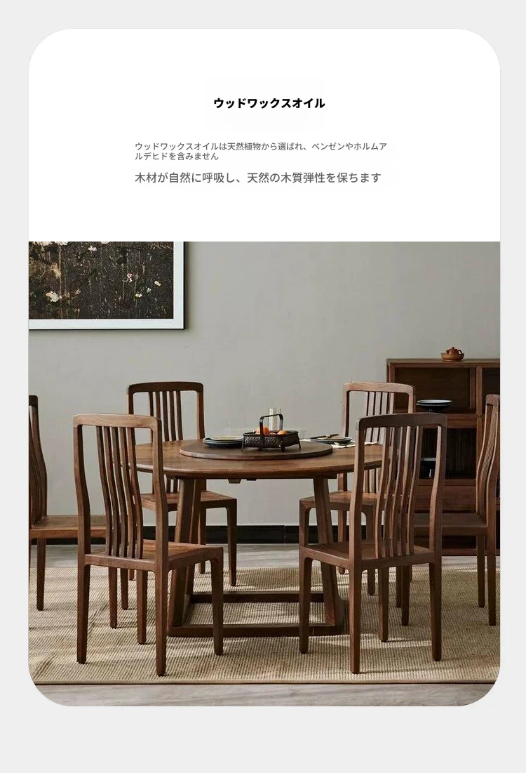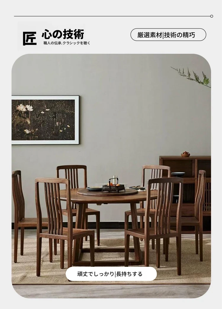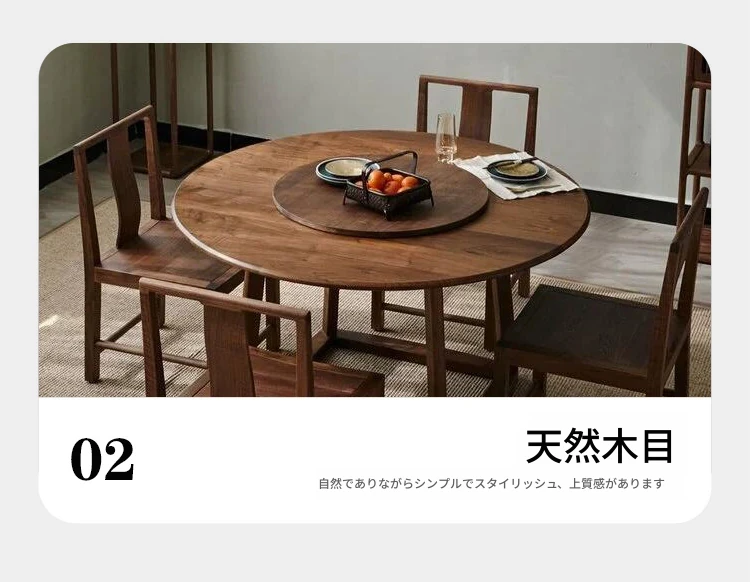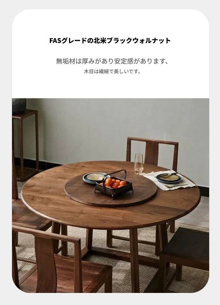 モダンでシンプルな軽奢の新中式ウォールナット材の丸テーブル - おしゃれなダイニングとリビングにぴったりの実木製サークルテーブル、便利な回転プレート付き!家族や友人との特別な食事に最適です。
