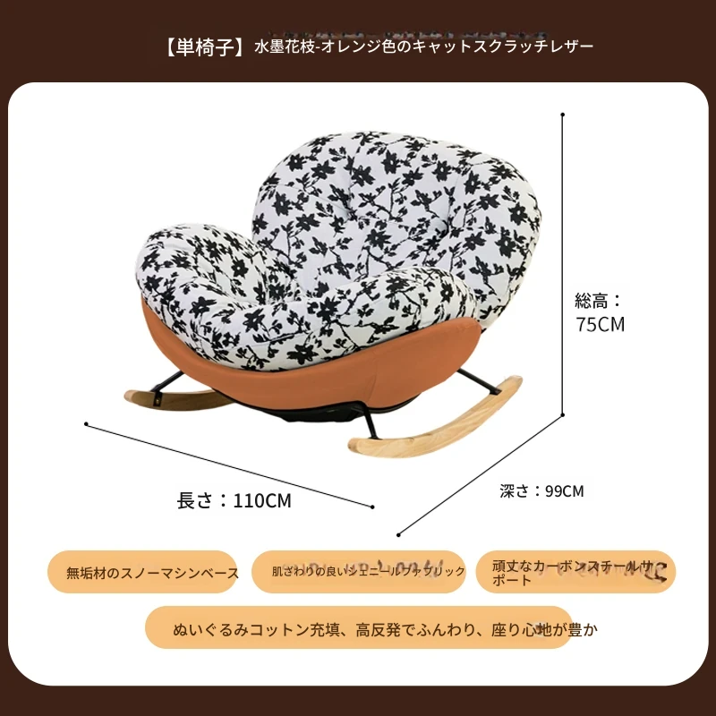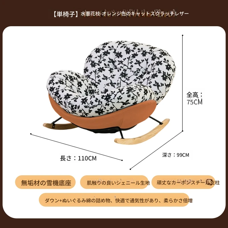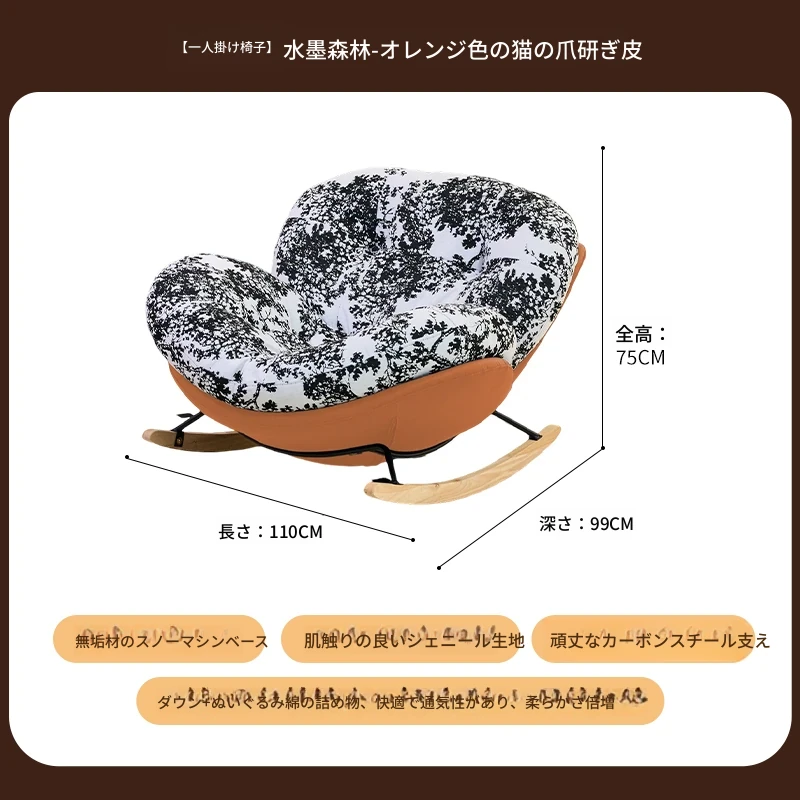 【一人掛け椅子】水墨花枝シェニール-オレンジキャットスクラッチレザー(ぬいぐるみ綿+ダウン)