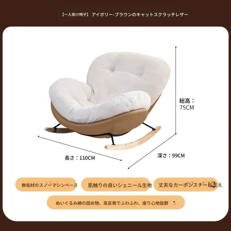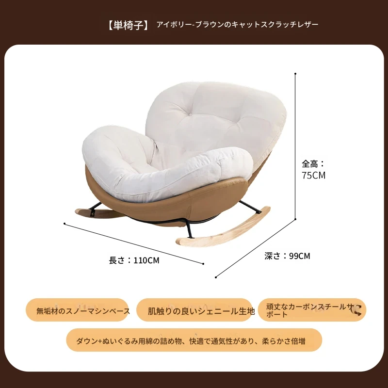 【一人掛け椅子】アイボリースエード-ブラウンキャットスクラッチレザー(ぬいぐるみ綿+ダウン)