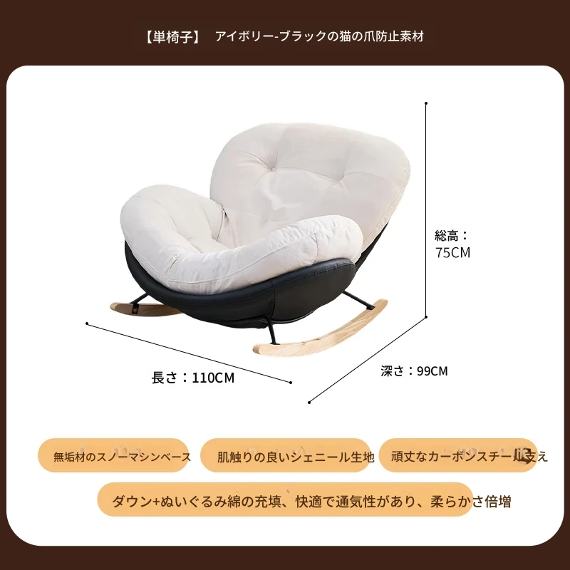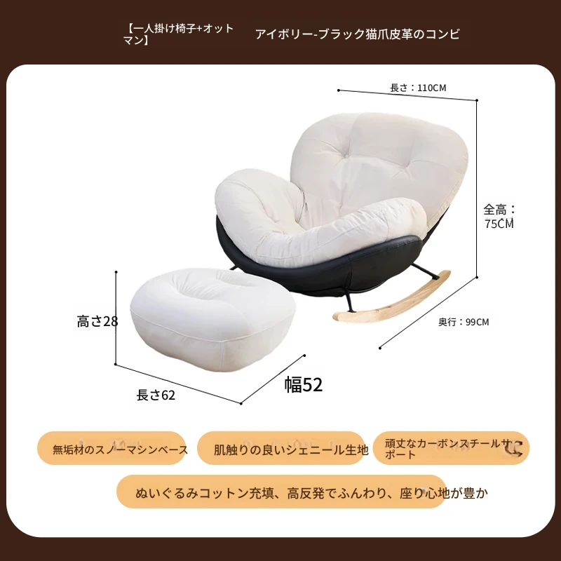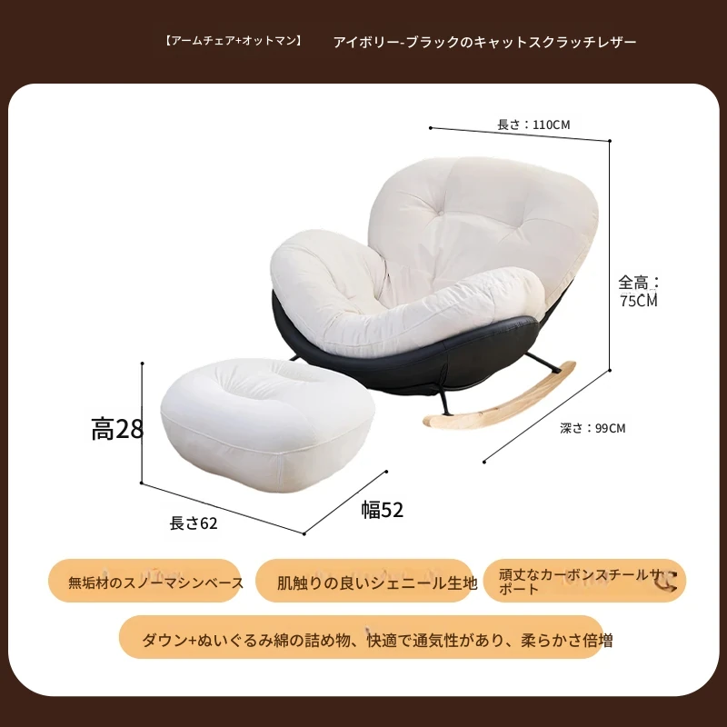 【一人掛け椅子+オットマン】アイボリースエード-ブラックキャットスクラッチレザー(ぬいぐるみ綿+ダウン)