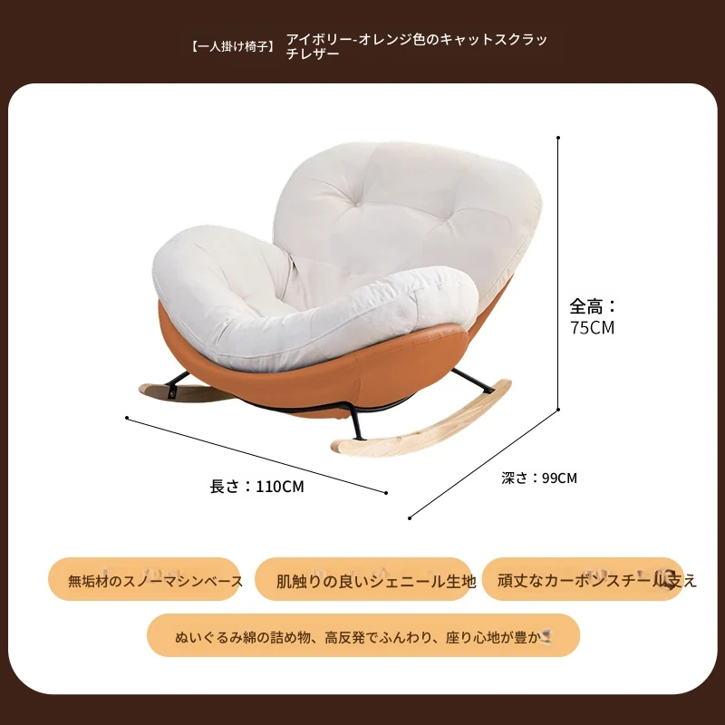 【一人掛け椅子】アイボリースエード-オレンジキャットスクラッチレザー(ぬいぐるみ綿+ダウン)