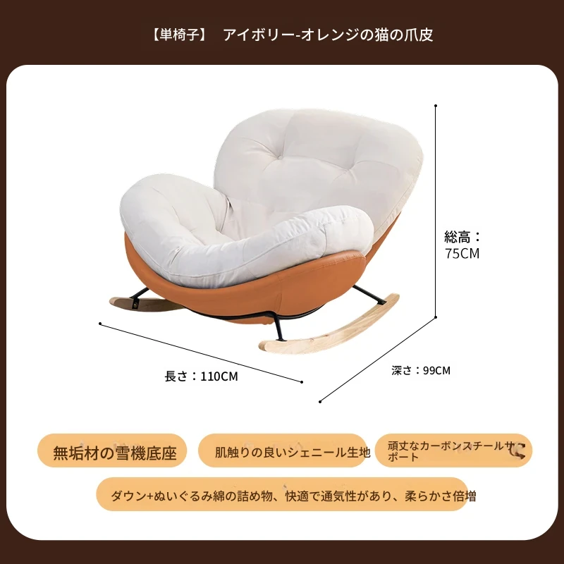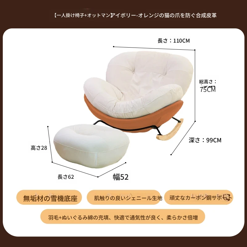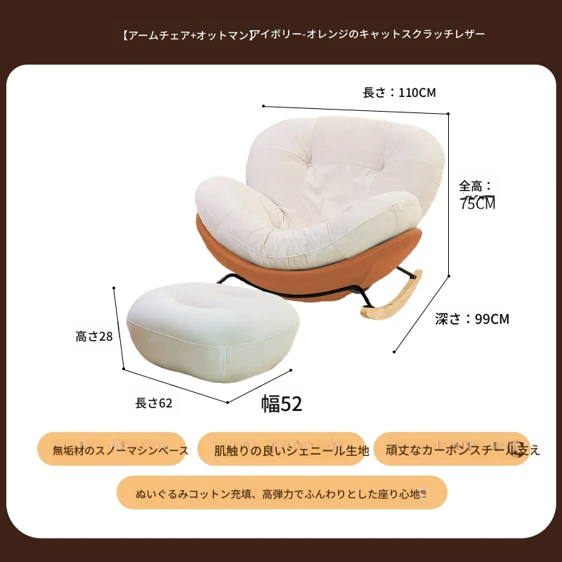 【一人掛け椅子+オットマン】アイボリースエード-オレンジキャットスクラッチレザー(ぬいぐるみ綿+ダウン)