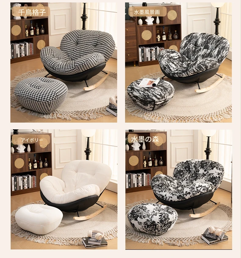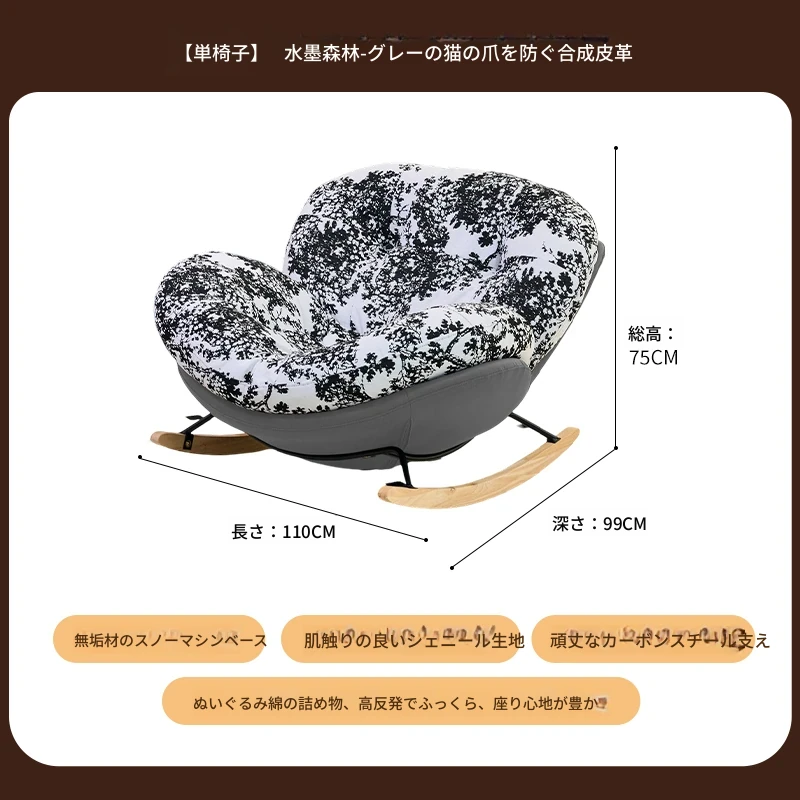 【一人掛け椅子】水墨森林シェニール-ブラックキャットスクラッチレザー(ぬいぐるみ綿+ダウン)