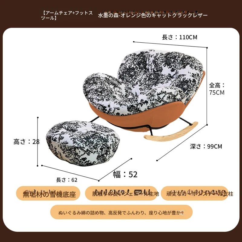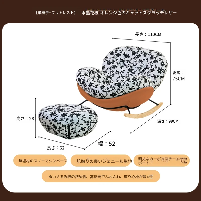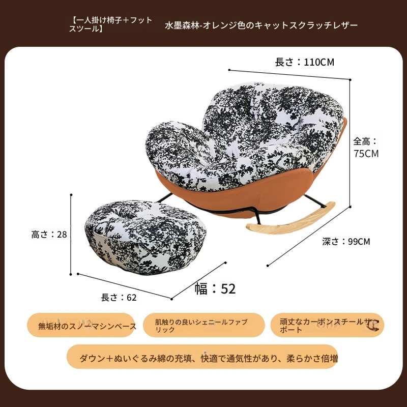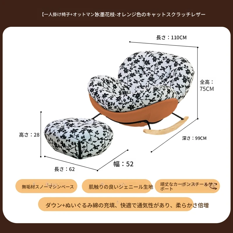 【一人掛け椅子+オットマン】水墨花枝シェニール-オレンジキャットスクラッチレザー(ぬいぐるみ綿+ダウン)
