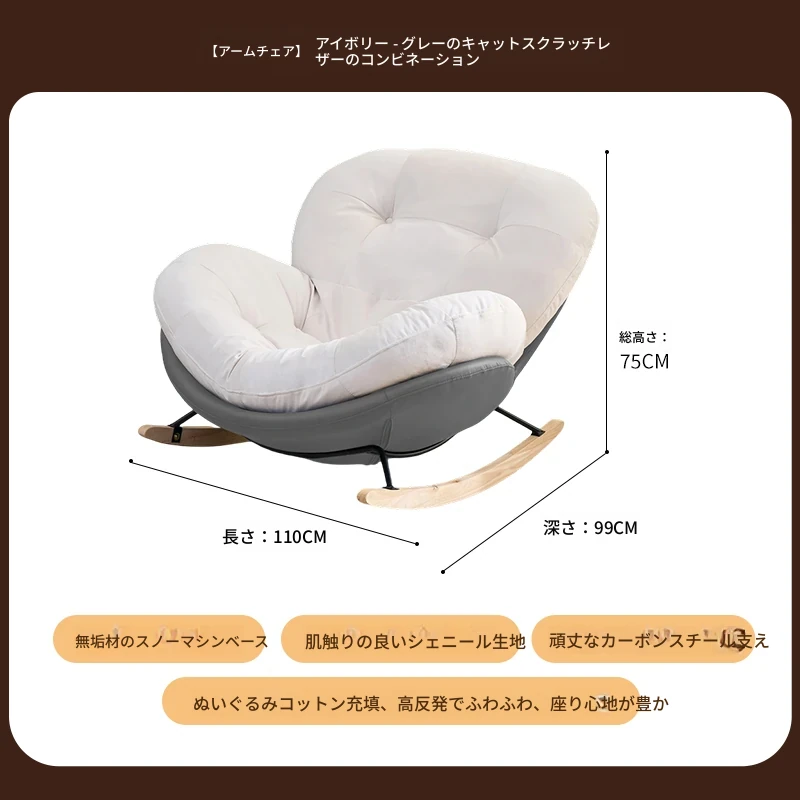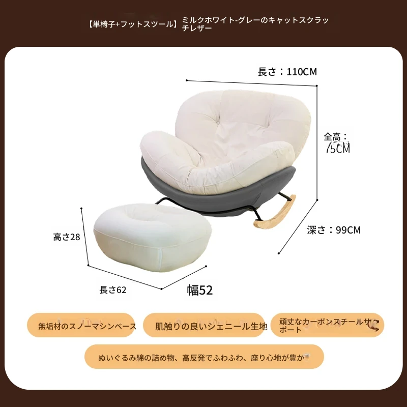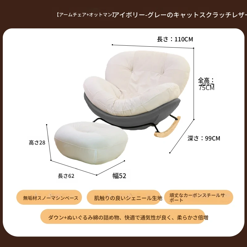 【一人掛け椅子+オットマン】アイボリースエード-グレーキャットスクラッチレザー(ぬいぐるみ綿+ダウン)