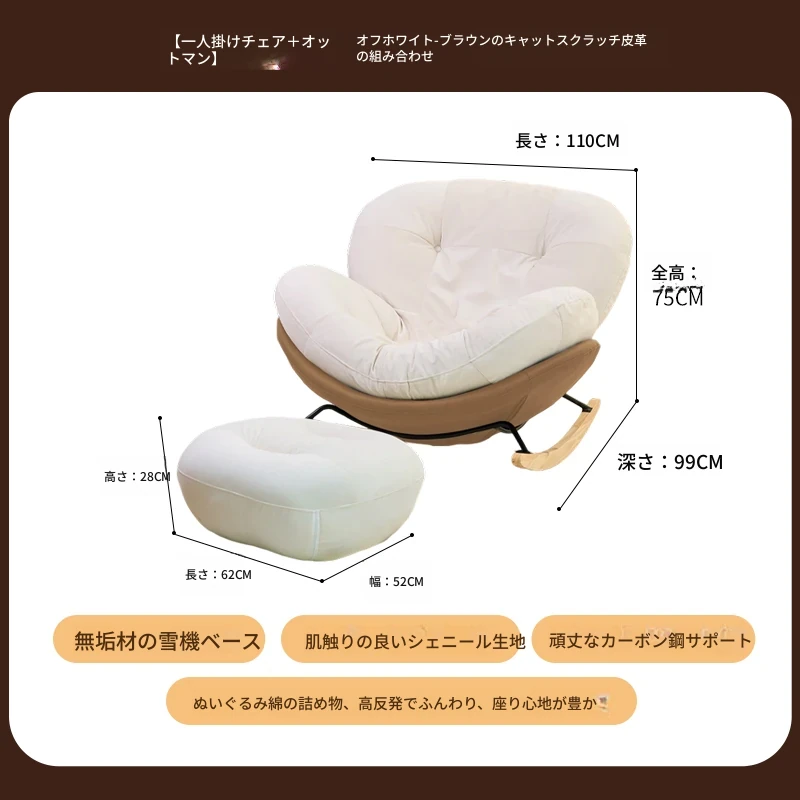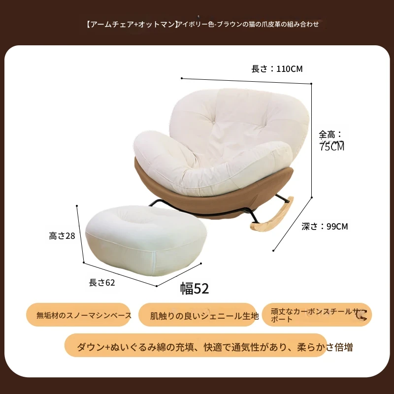 【一人掛け椅子+オットマン】アイボリースエード-ブラウンキャットスクラッチレザー(ぬいぐるみ綿+ダウン)